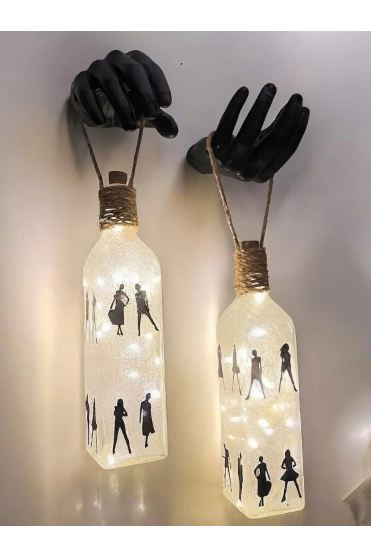 El Figürlü Duvar Lambası – PİLLİ LED Işıklı Dekoratif Şişe Aydınlatma | El Yapımı Dekor