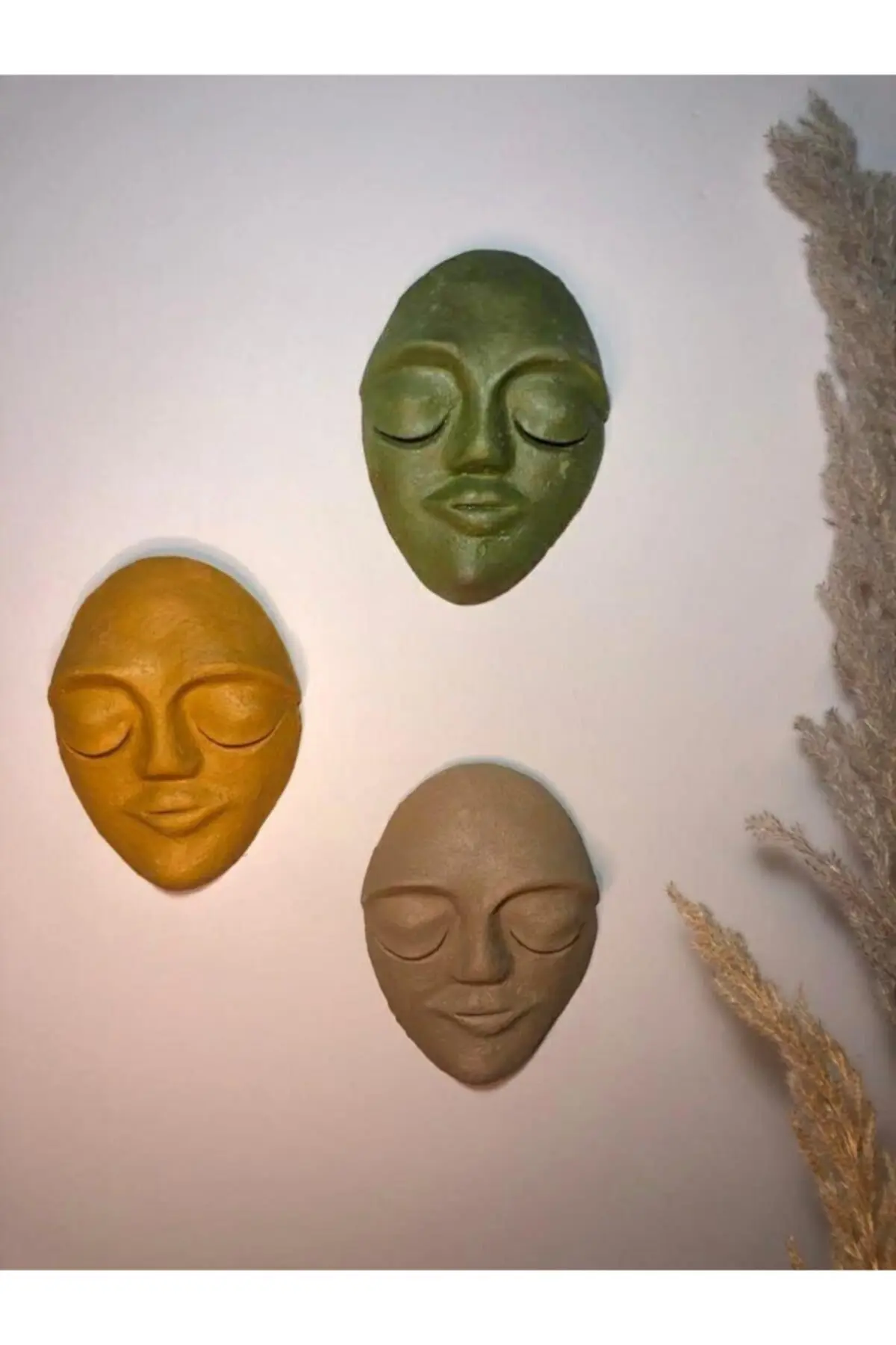 El Yapımı Duvar Dekor Heykelleri 5’li Set, Tasarım Duvar Maskları, Duvar Dekorasyonu