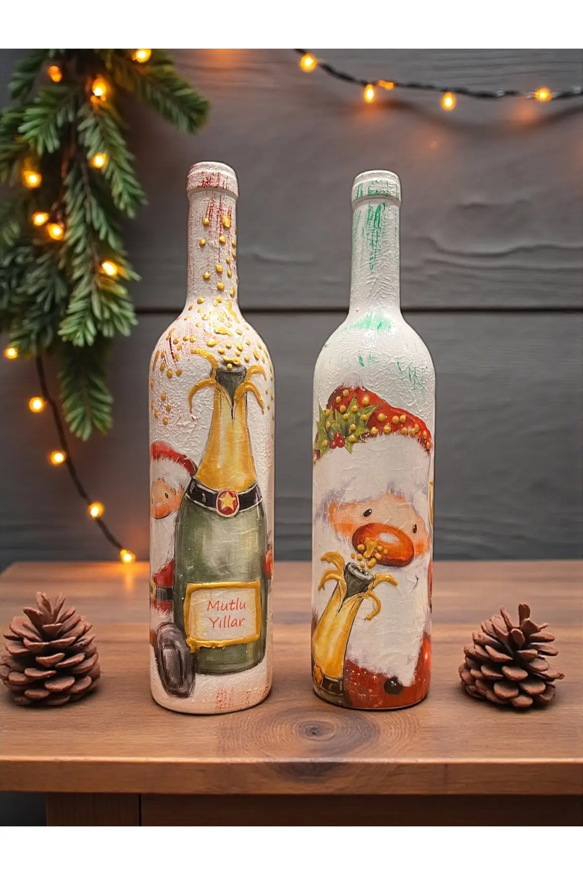 Yeni Yıl Özel El Boyaması Şişe: Dekoratif ve Şarap Sunumuna Uygun Mutlu Yıllar Temalı Tasarım