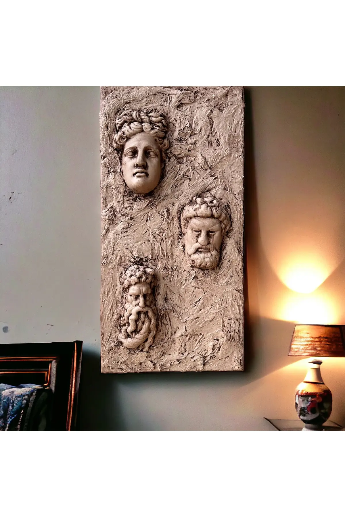 Antik Yunan Tanrıları 3D Minyatür Heykelli Kahverengi Rengi Dokulu Duvar Dekorasyonu Tablosu