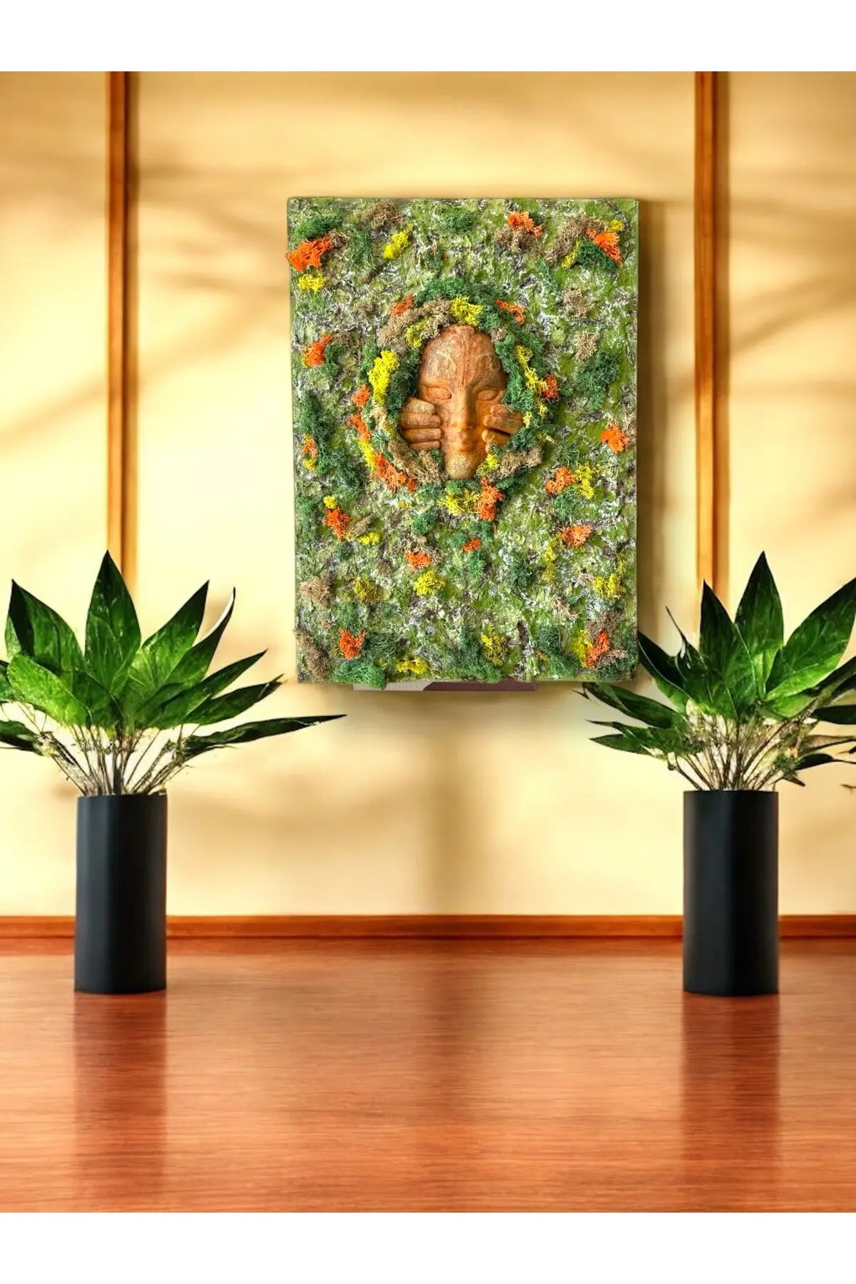 Doğal Malzemelerle Özgün Sanat: Beton Efekti ve Yosunlarla Kaplı İnsan Yüzlü Tablo, Duvar dekoru