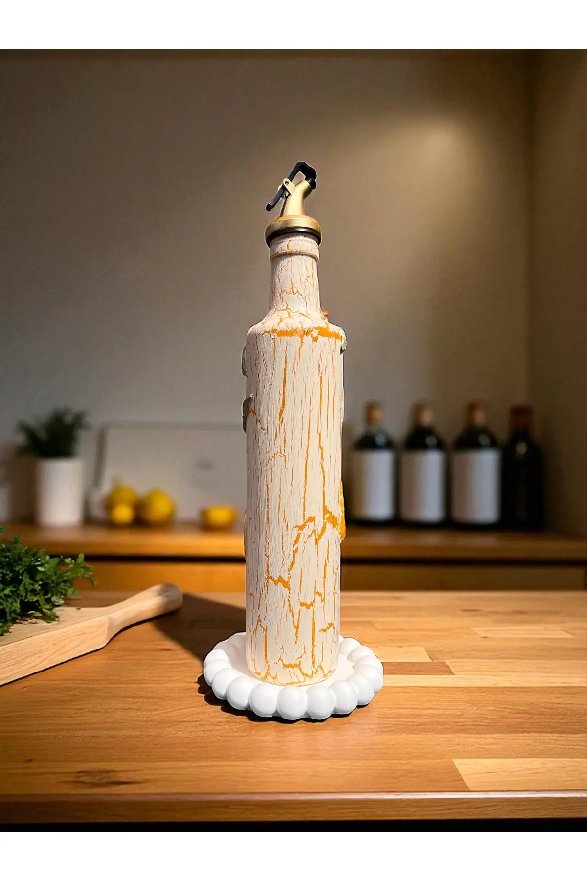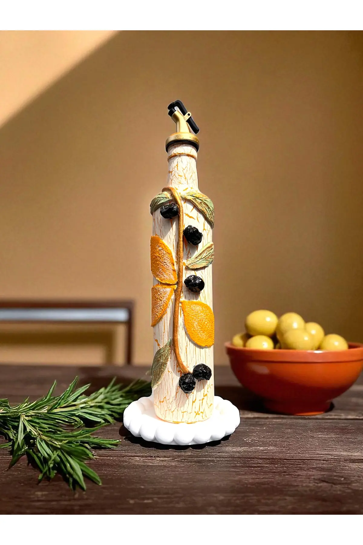 500 ML Kil Kabartma Uygulama Limon Desenli El Yapımı Zeytinyağı & Üzüm Sirke Şişeleri