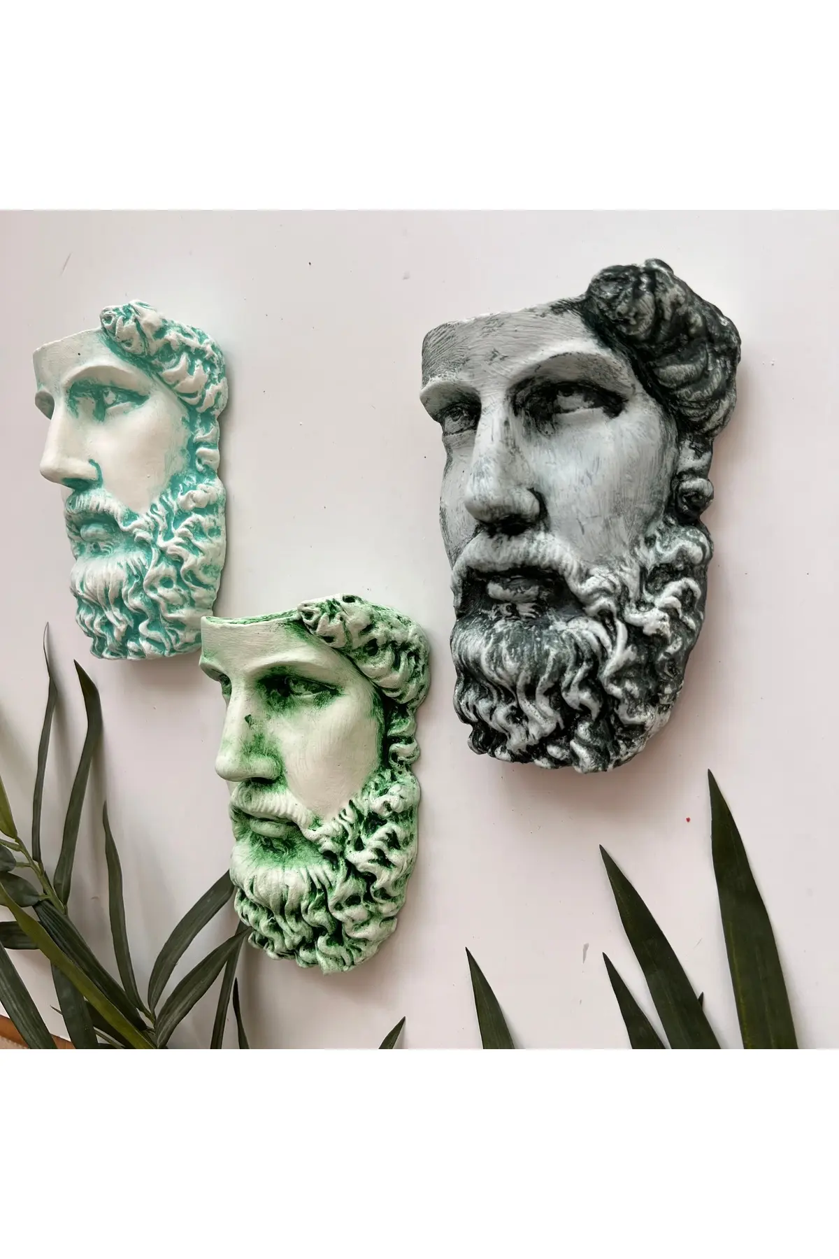 Antik Eskitme Dekoratif Poseidon Beton Biblo Heykel 3’lü Set Ev Dekor Duvar Dekoru
