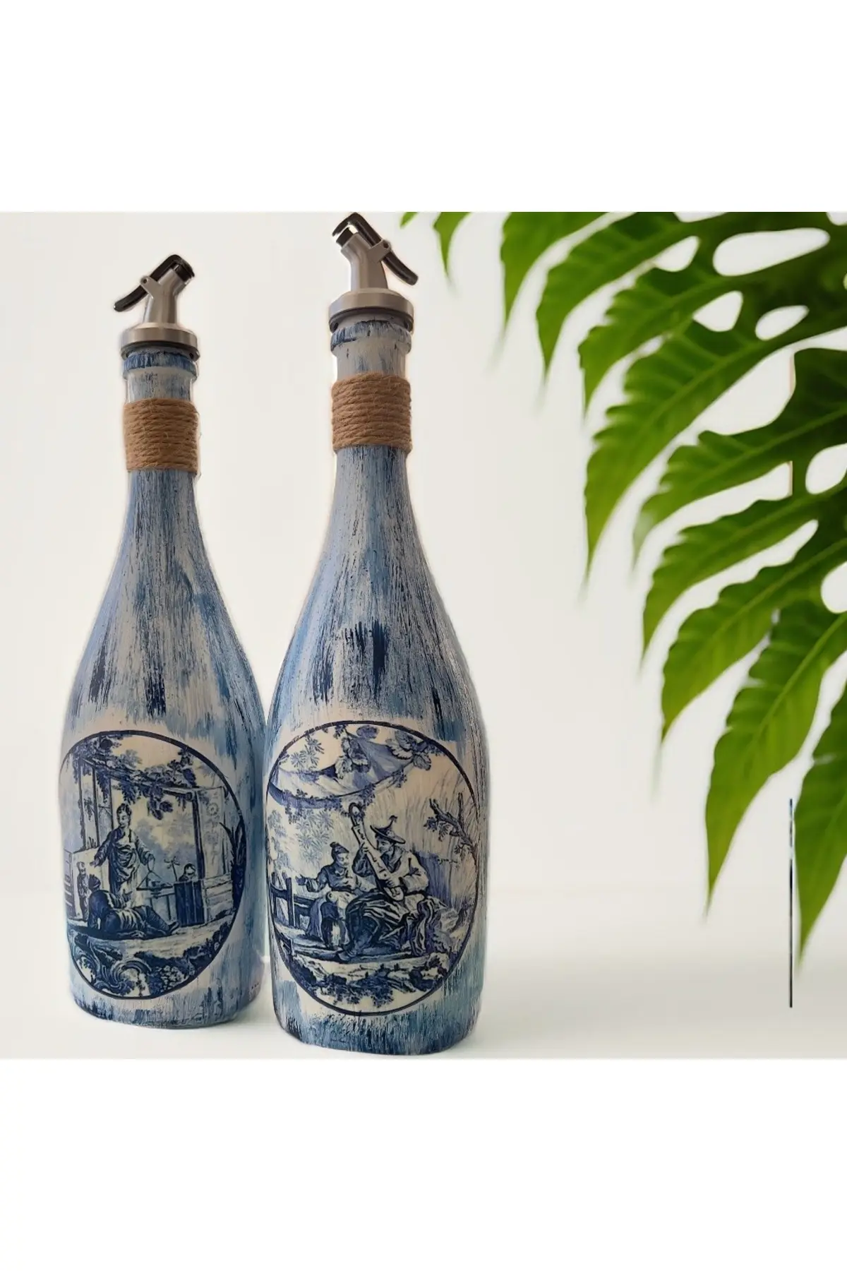 Beyaz Sunum Stantlı Çini Desenli Mavi Japon İzleri Şarap Şişesi Yağdanlık ve Sirke Şişesi Seti – Mutfak Dekoru Mutfak estetiği ile pratikliği bir araya getiren bu özel tasarım sosluk seti, beyaz sunum stantıyla beraber çini desenleriyle süslenmiş, zarif mavi tonlardaki Japon izleriyle ön plana çıkıyor. ; Özenle seçilmiş ve el yapımı olan her parça, mutfaklarınıza zarafet ve işlevsellik katmak için tasarlanmıştır. ; Bu özel yağdanlık/sosluk seti, sıvılarınızı muhafaza etmek için idealdir. ; Şarap şişesi formundaki yağdanlık ve sirke şişesi, mutfak tezgahınızda göz alıcı bir dekoratif parça olarak yer alırken aynı zamanda günlük kullanımınızı kolaylaştırır. ; Beyaz sunum stantıyla birlikte sunulan bu özel sosluk seti, sofralarınıza benzersiz bir estetik kazandırır. ; Mavi tonlardaki Japon izleriyle ve çini görünümüyle bezeli bu el yapımı özel set, size mutfak araçlarından çok daha fazlasını sunar. ; Hem estetik bir dekoratif parça hem de işlevsel bir araç olarak öne çıkar. ; Şık tasarımı ve detaylı işçiliğiyle evinize zarafet katarken yemek hazırlığı sırasında da pratik bir çözüm sunar. ; Fonksiyonel ve Şık Tasarım: Bu set, sadece mutfakta değil aynı zamanda sofrada da harika bir izlenim bırakır. ; Zeytinyağı, sıvıyağı, sirkelik ve sosluk sunumunda kullanabileceğiniz bu şişeler, işlevselliği zarafetle birleştirir. ; Paket İçeriği: 2 adet 750 ml kapasiteli özel tasarım zeytinyağı/sıvıyağ şişesi, 1 adet sunum stantı ve 2 adet damlatmayan yağdanlık ağızları Bu set, sadece kendiniz için değil aynı zamanda sevdikleriniz için de özel bir hediye seçeneği olabilir. ; Mutfak deneyiminizi sanatsal bir ritüele dönüştürmek isteyenler için ideal bir tercih olan bu ürün, estetik duruşu ve işlevselliğiyle beğeni topluyor. ; Her el yapımı üründe olduğu gibi bu yağdanlık/sosluk seti el yapımı olması sebebiyle makina yıkaması önerilmez.;