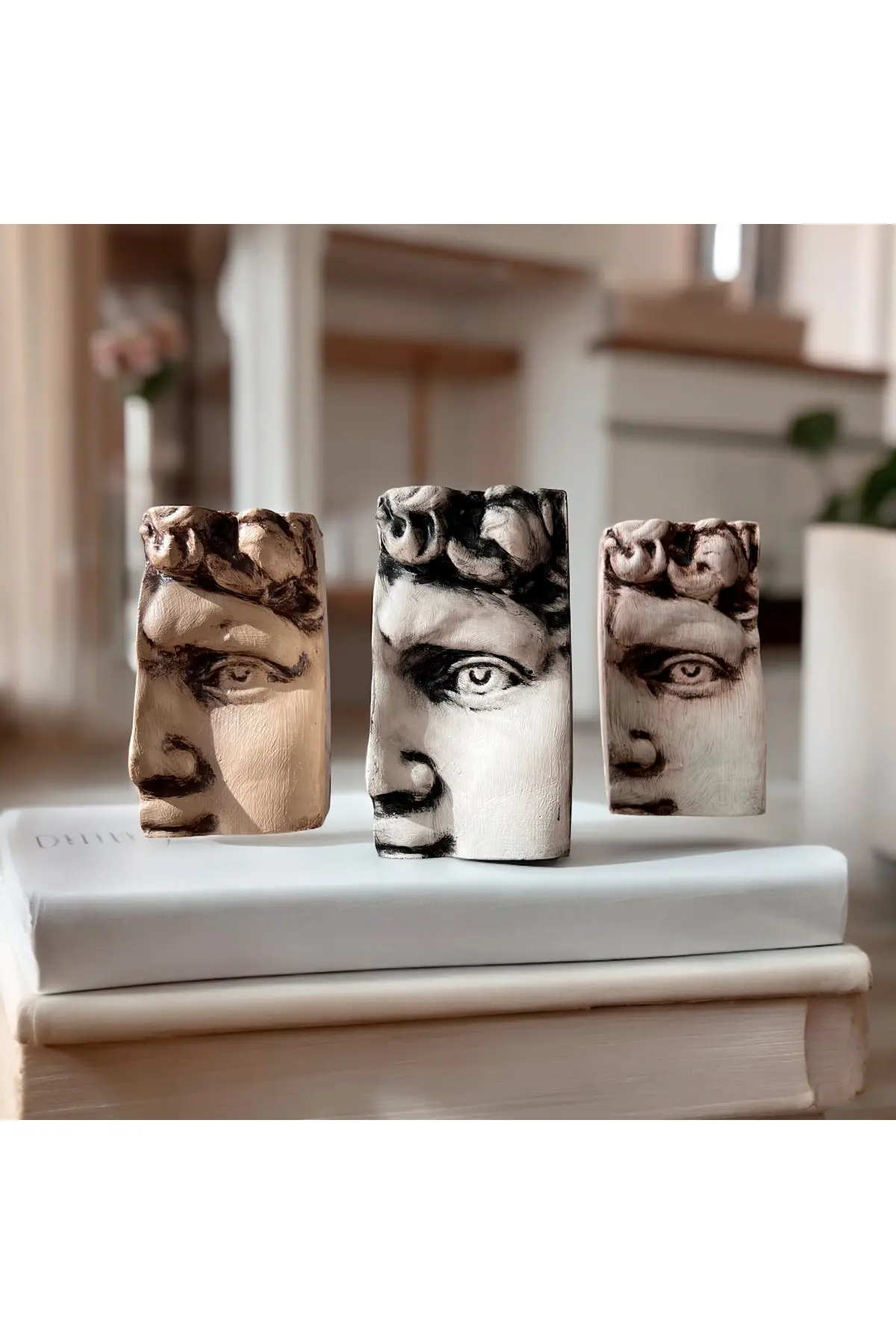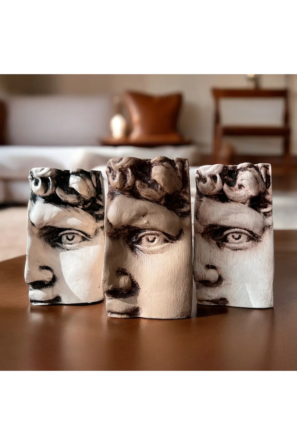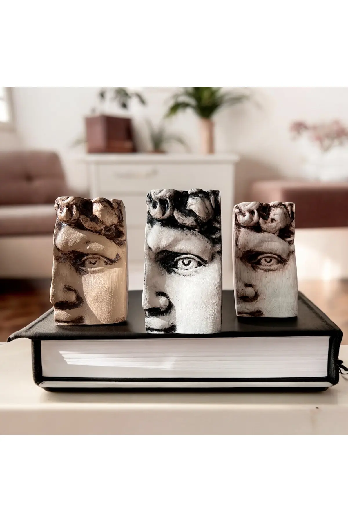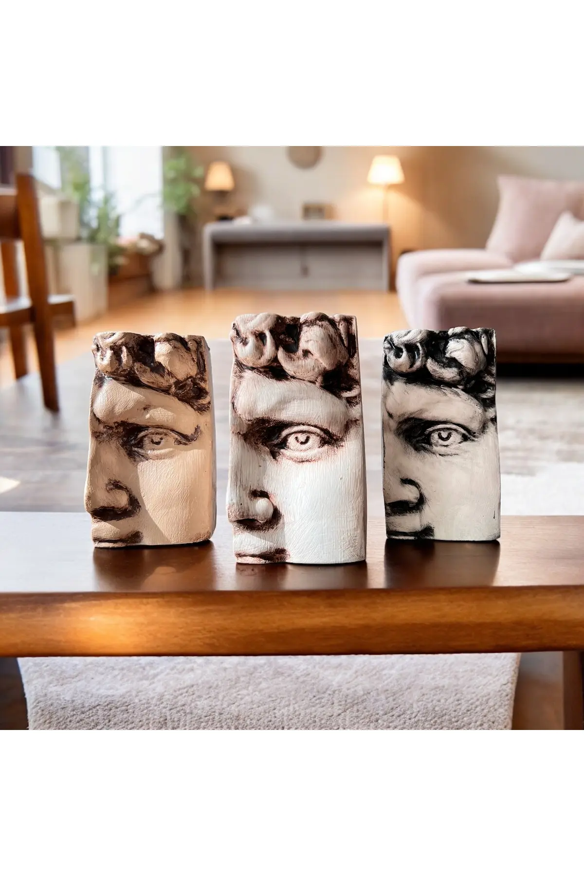 Bu dekoratif beton antik yüz heykelleri, yaşam alanlarınıza karakter ve estetik katmak için mükemmel bir seçenektir. ; Gri, siyah ve bej renklerinde tasarlanmış olan bu heykeller, ev veya ofis dekorasyonunuza modern ve şık bir dokunuş sağlar. ; Heykellerin antik görünümü, ona benzersiz bir cazibe katar ve ortama derinlik kazandırır. ; Bu biblolar, kitaplıklar, masalar, sehpa veya diğer dekoratif alanlar için harika bir aksesuardır. ; 3 lü Set olarak tasarlanan bu biblolar ev dekoru olarak masa üstü biblo, dekoratif aksesuar ve ofislerde kağıt ağırlığı ve aynı zamanda kitaplıklarınızda Kitap Tutucu olarak kullanılabilir. ; Ürün ölçüleri 7,8 x 15 cmdir. ; Heykelin sağlam beton yapısı, dayanıklı ve uzun ömürlü bir kullanım sunar. ; Ayrıca, çeşitli renk seçenekleriyle dekorunuza uyum sağlamak için mükemmel bir seçenek sunar. ; Bu heykel, evinizin veya işyerinizin, ofisinizin herhangi bir odasında dikkat çekici bir odak noktası olabilir ve kişisel tarzınızı yansıtan bir dekoratif öğe olarak hizmet edebilir. ; Hem modern hem de rustik tarzda dekore edilmiş mekânlara uyum sağlayabilen bu heykel, ev dekorasyonunuza sofistike bir dokunuş katmak için mükemmel bir seçenektir.;