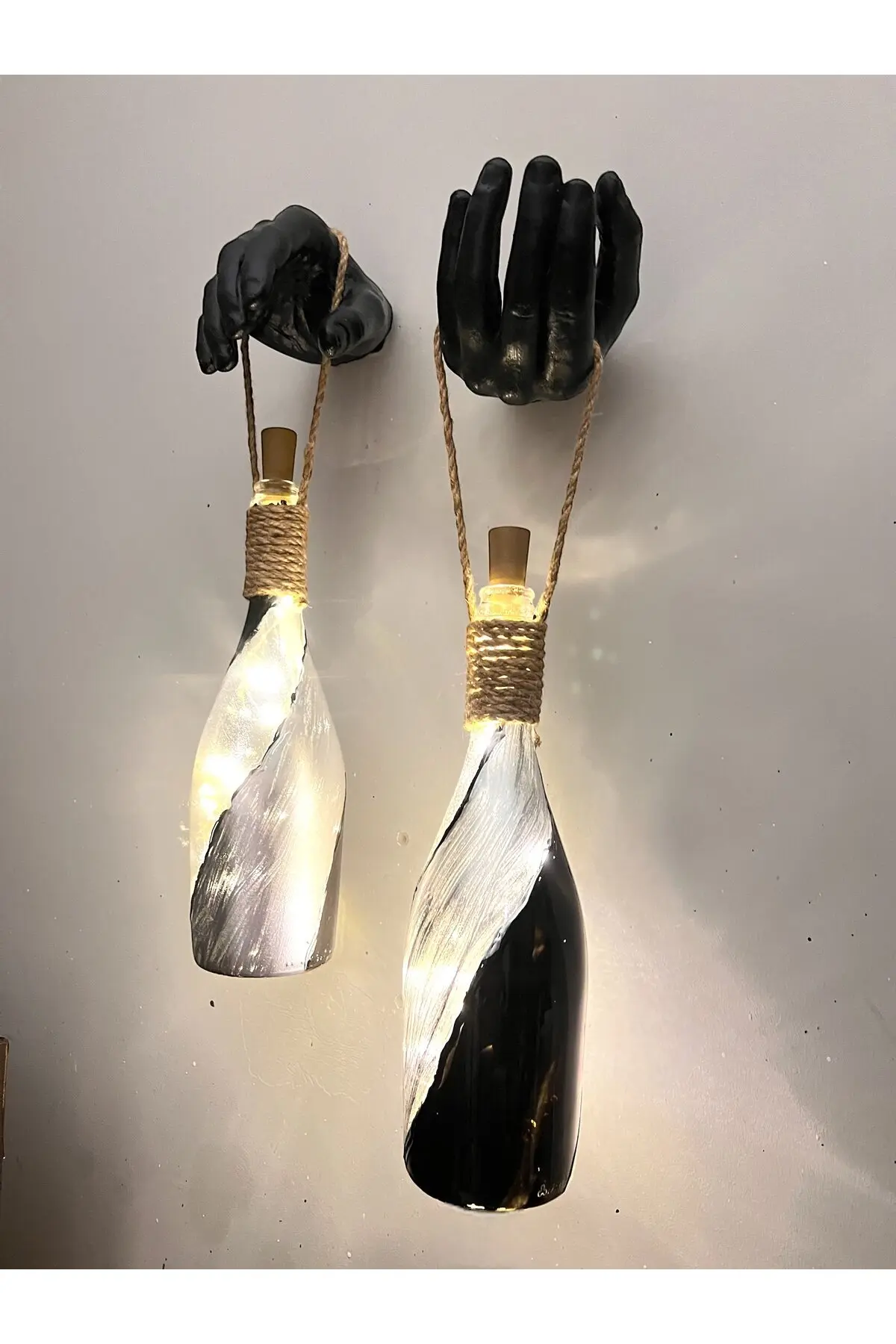 El Figürlü Duvar Lambası – PİLLİ LED Işıklı Dekoratif Şişe Aydınlatma | El Yapımı Dekor