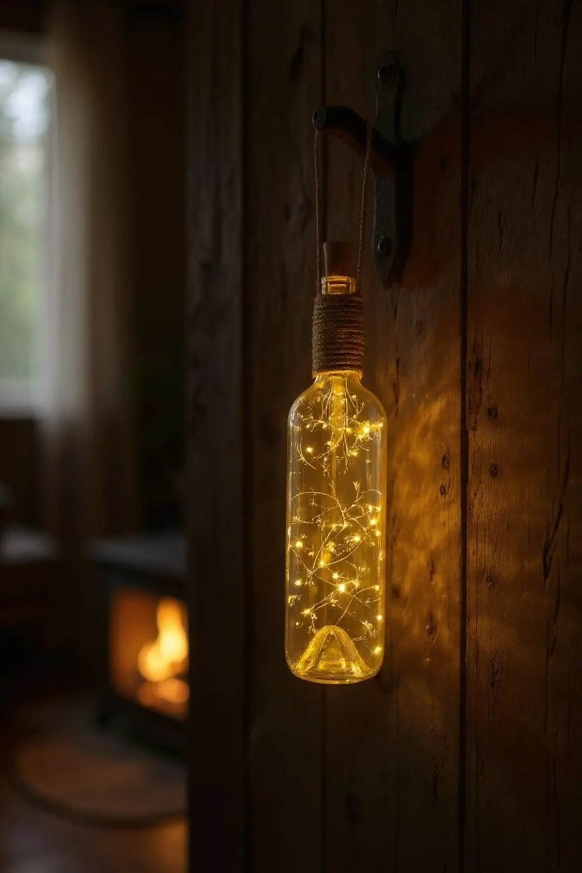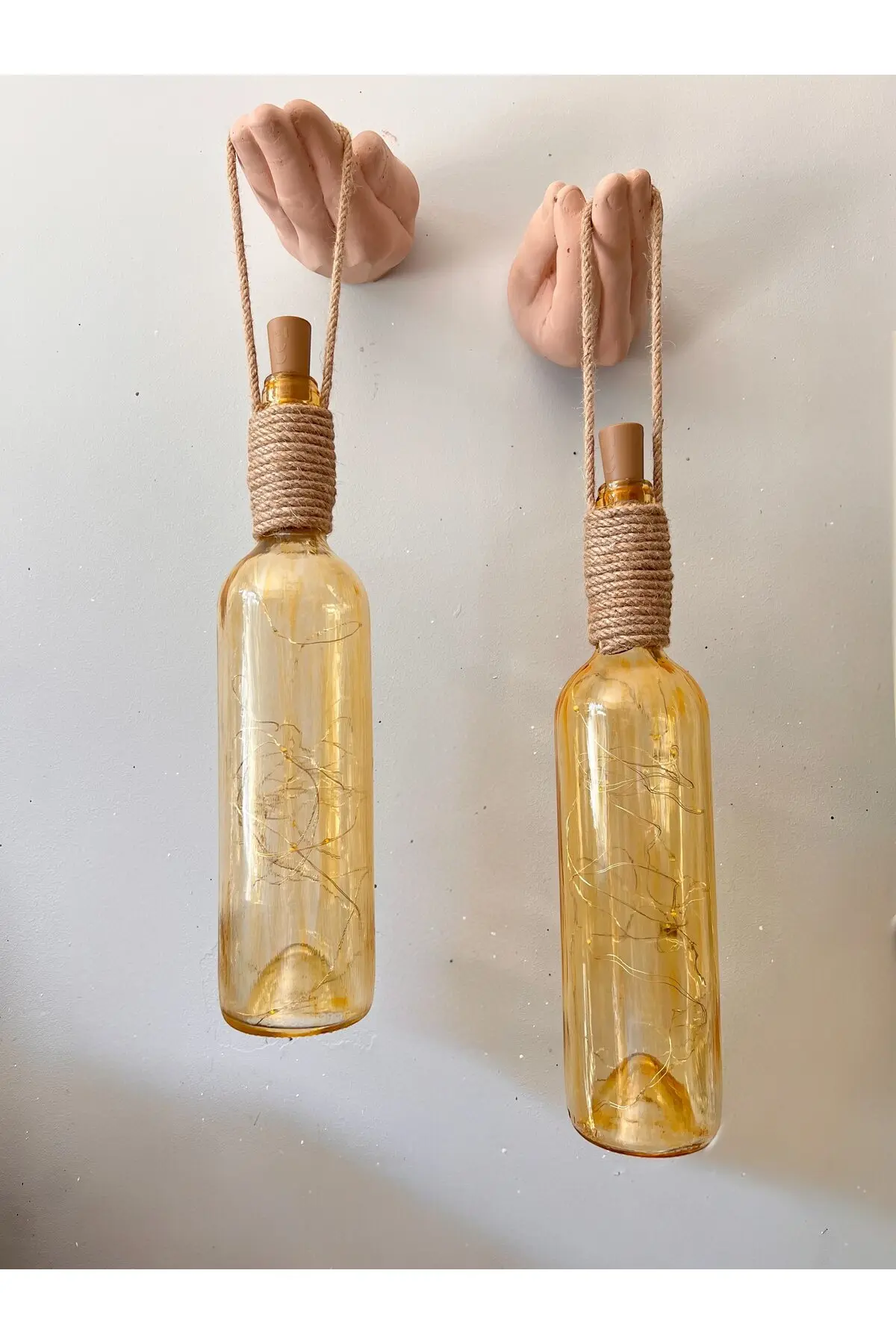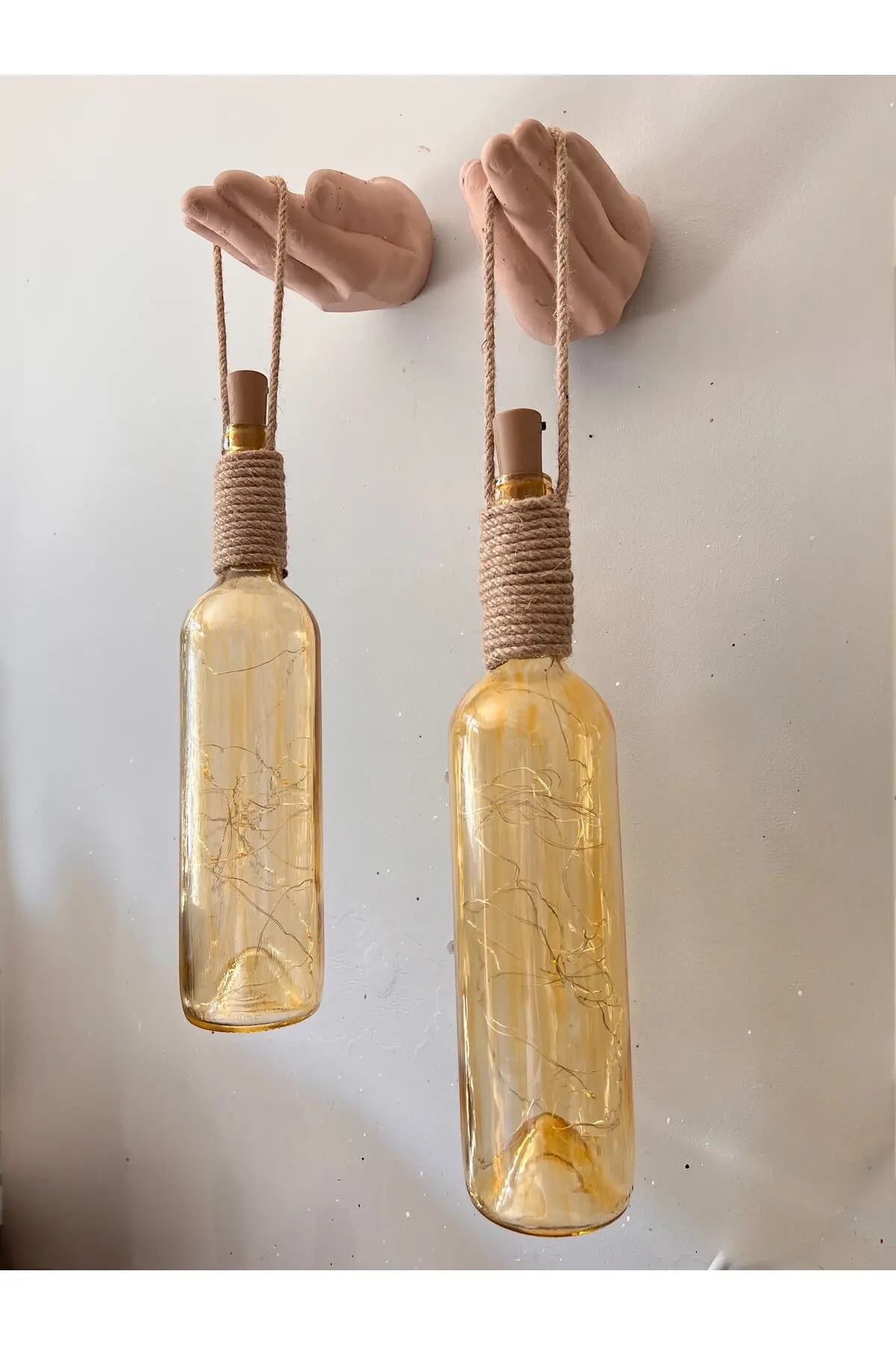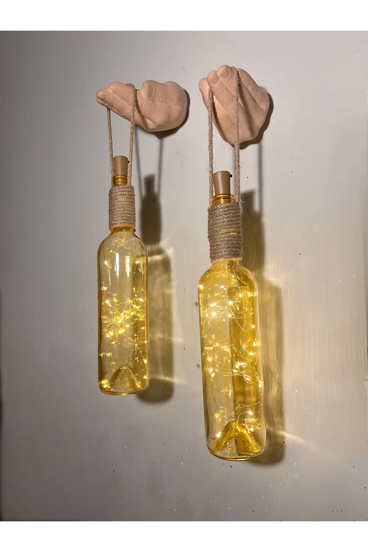 El Figürlü Duvar Lambası – PİLLİ LED Işıklı Dekoratif Vitray Boyalı Cam Şişe Aydınlatma | Vintage E