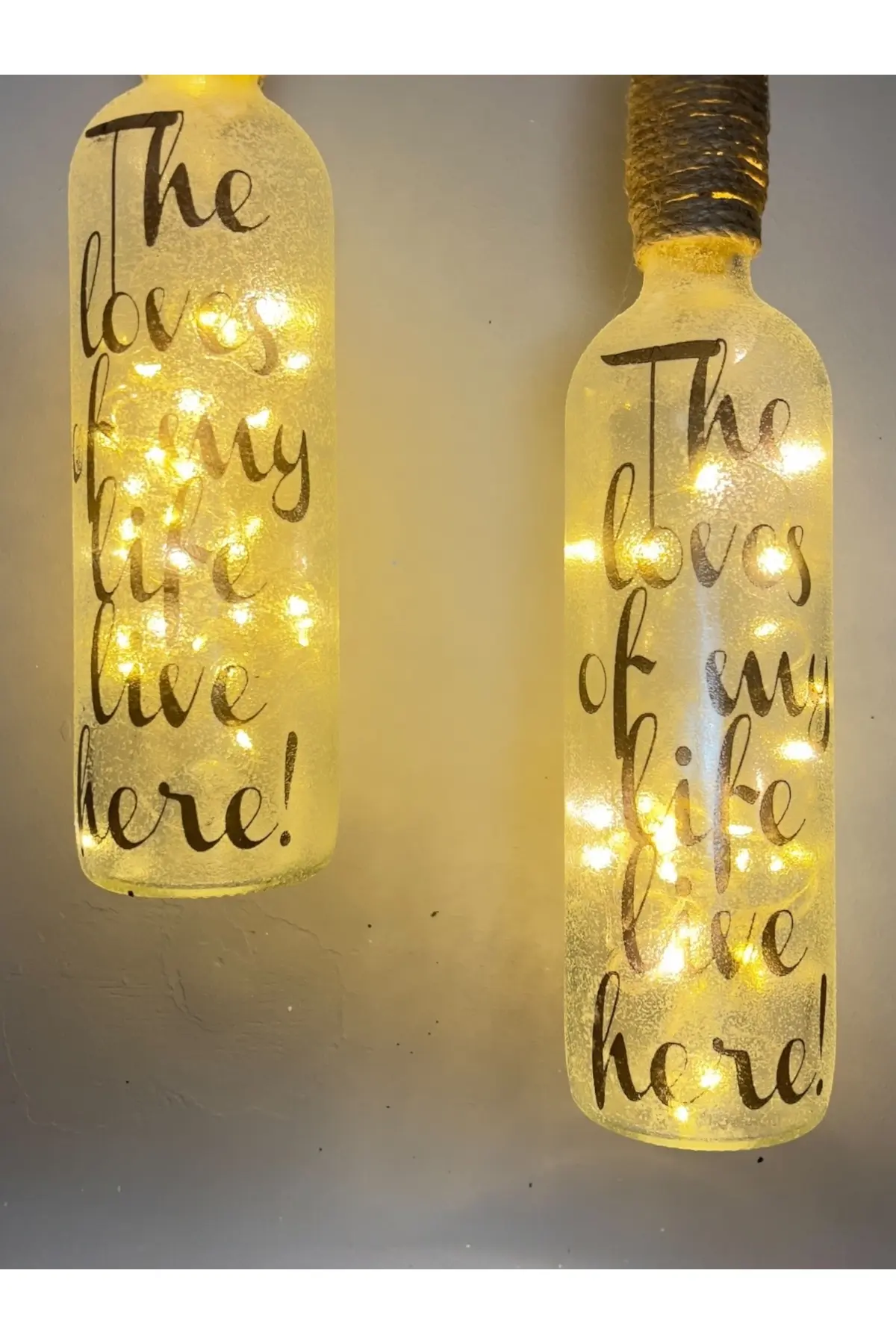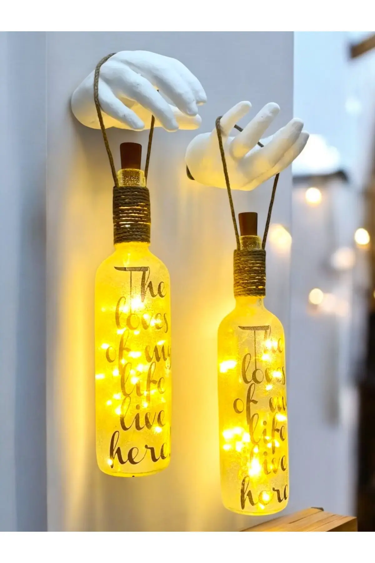 El Heykel Dekorlu Buzlu Cam Şarap Şişesi Pilli Tıpa Peri Led Işıklı Aplik 2’li Set, duvar dekoru