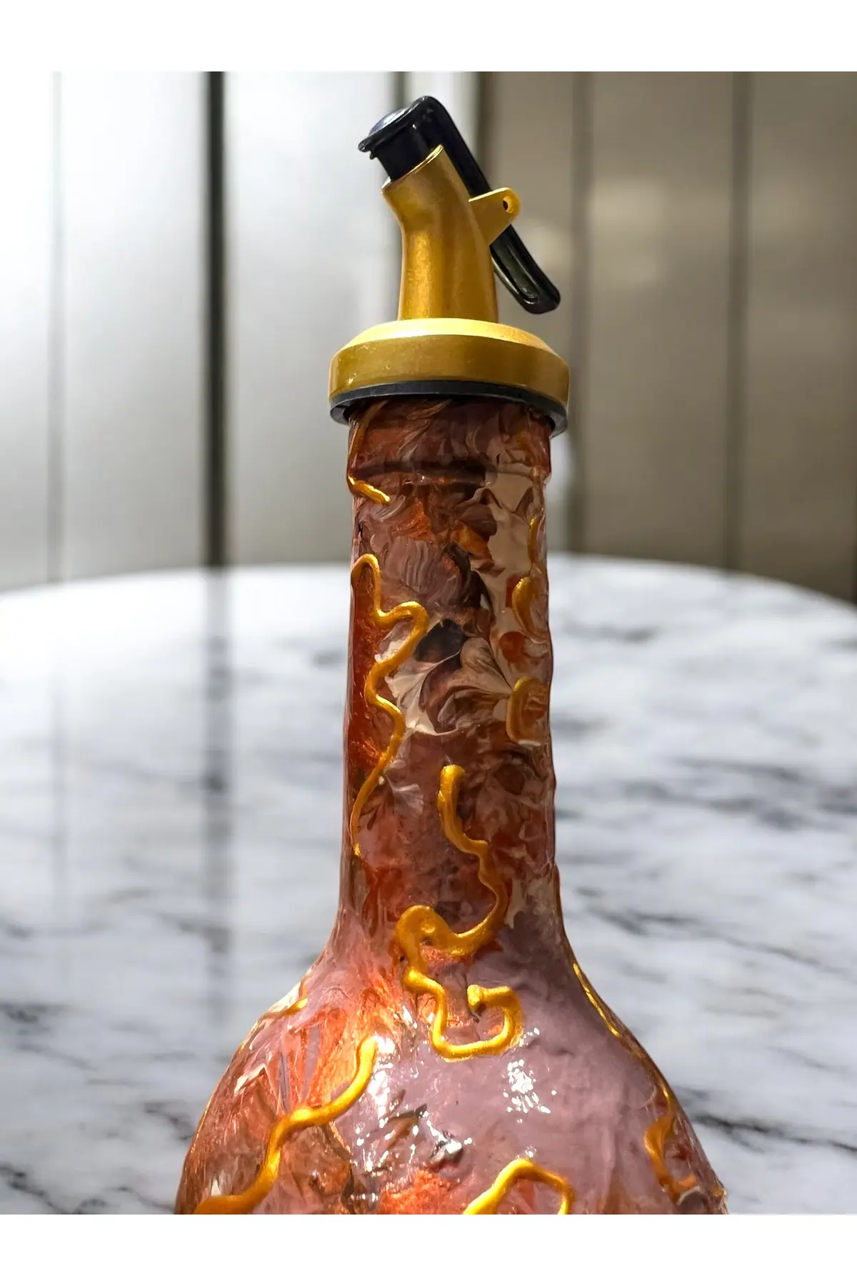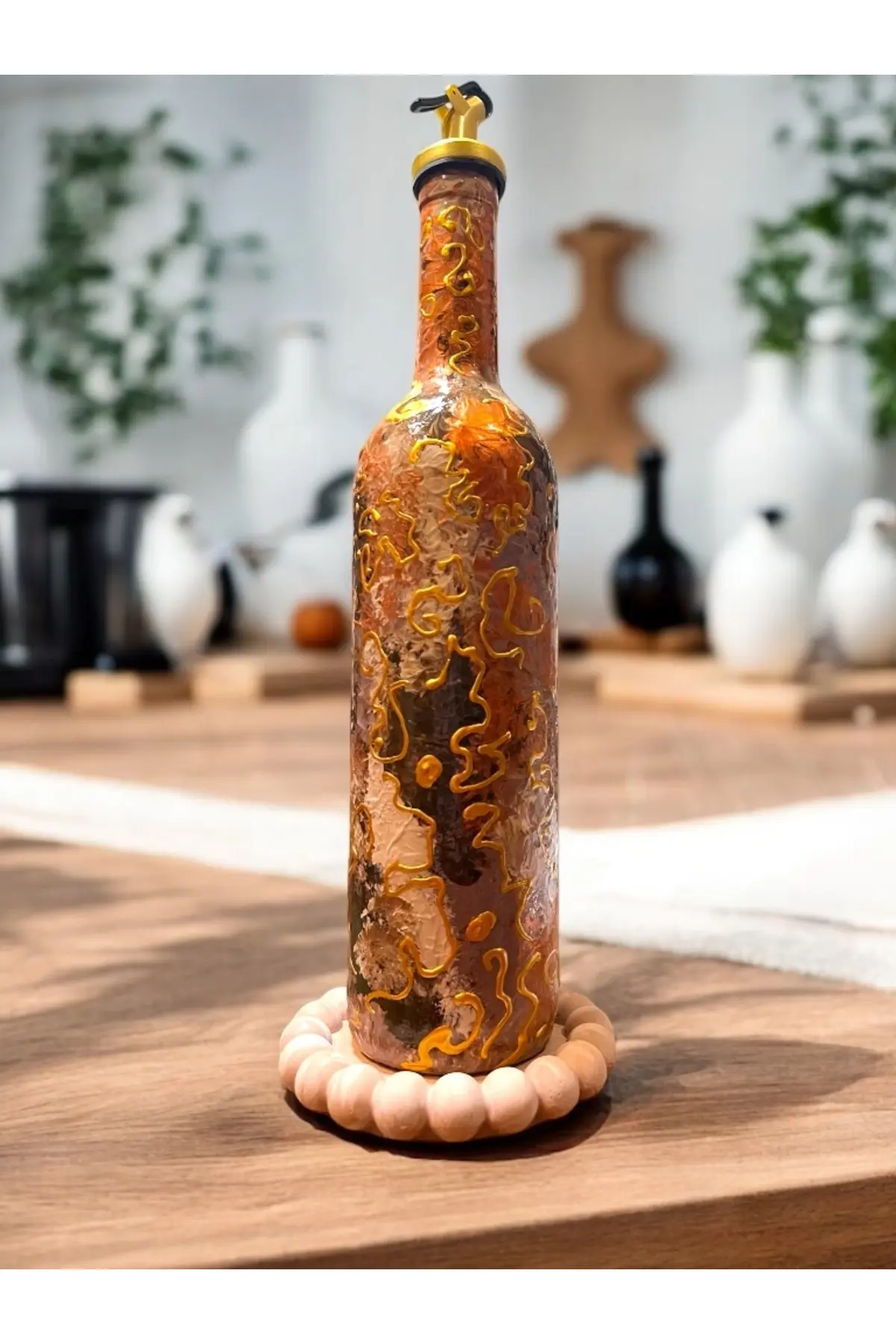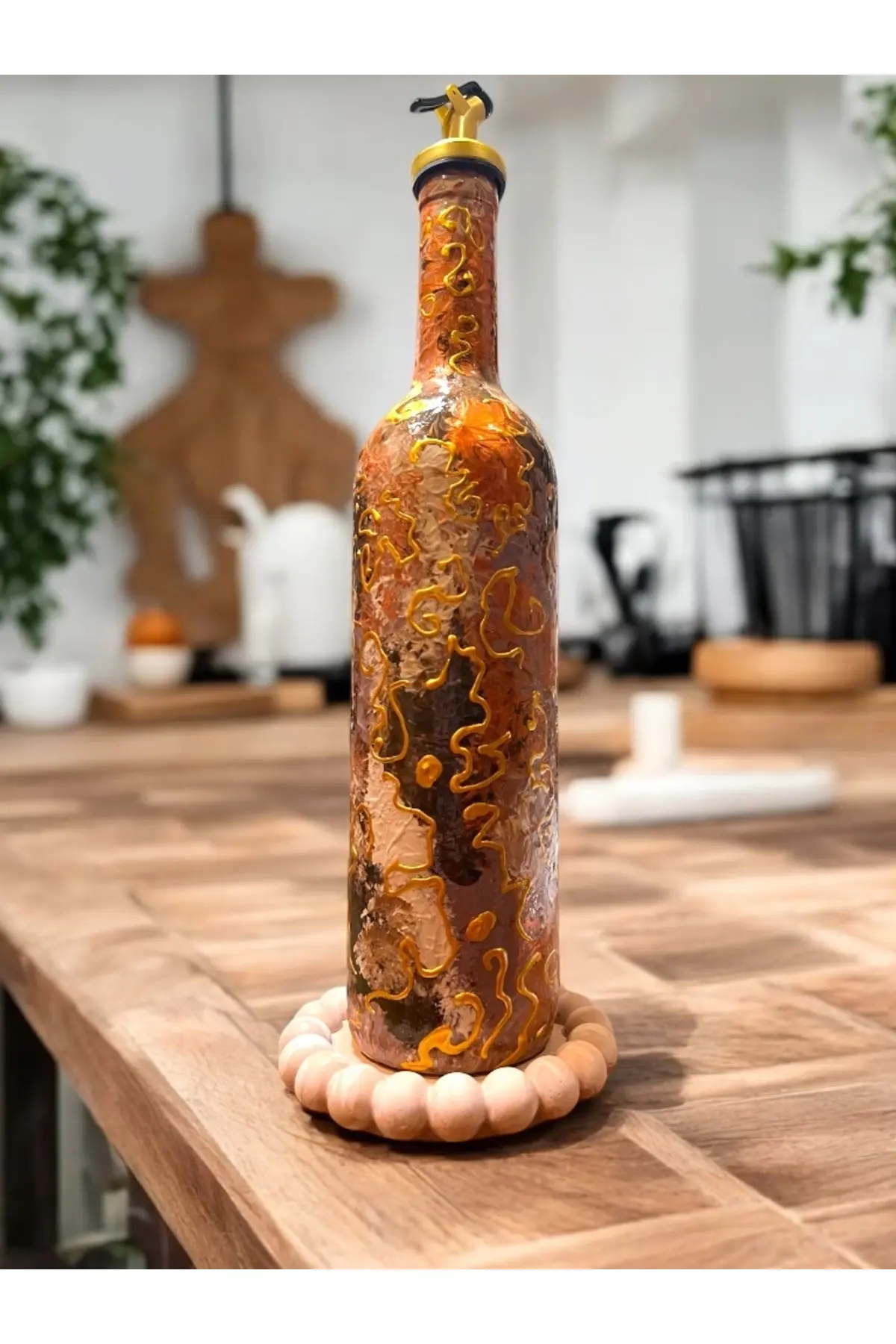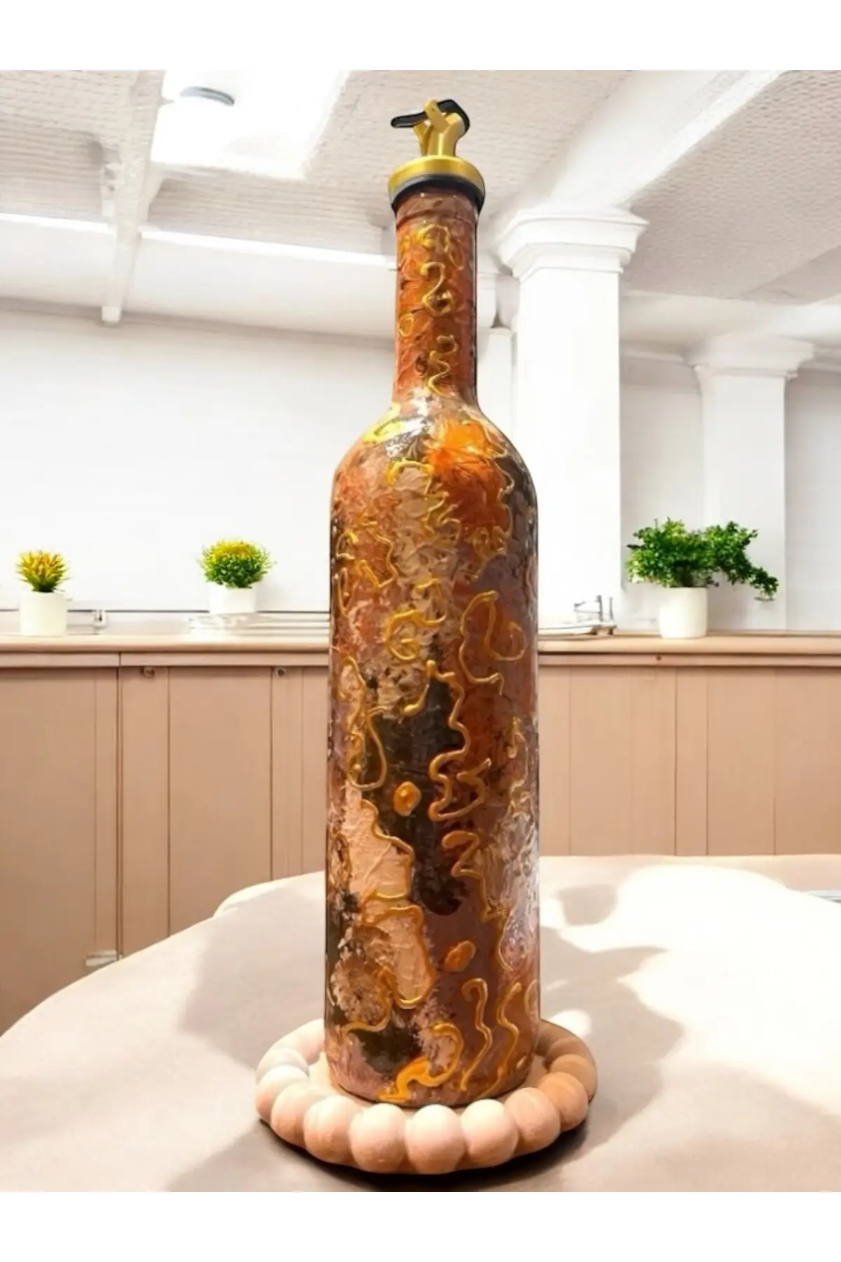 El Yapımı Altın Varaklı Yağdanlık Tasarım Sunum Standı ile Şık Mutfaklar ve Sofralar