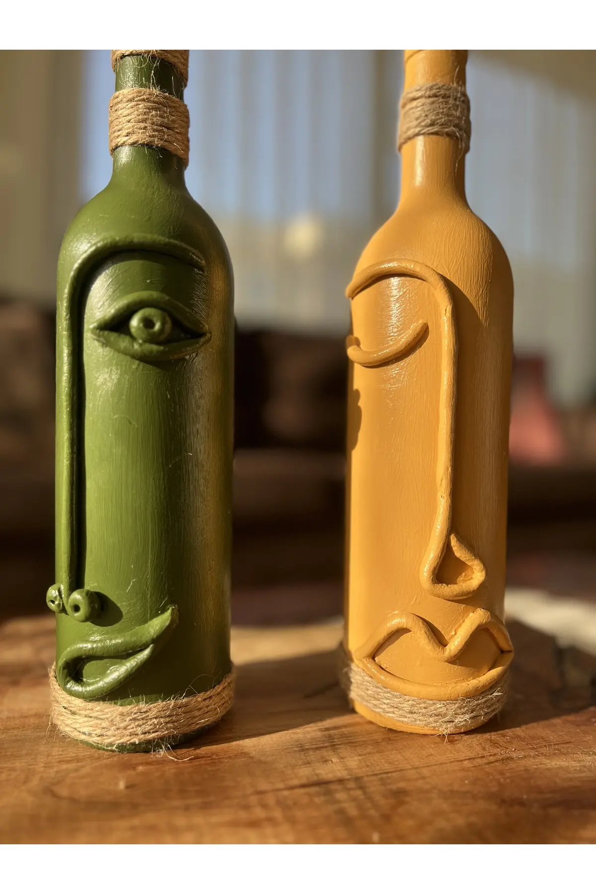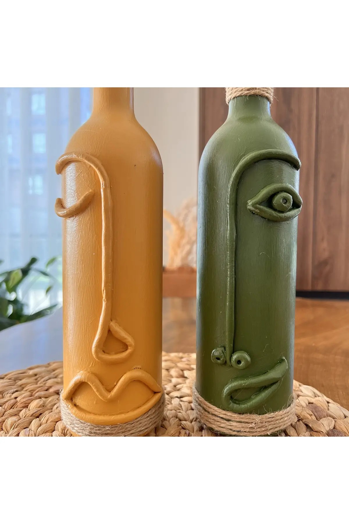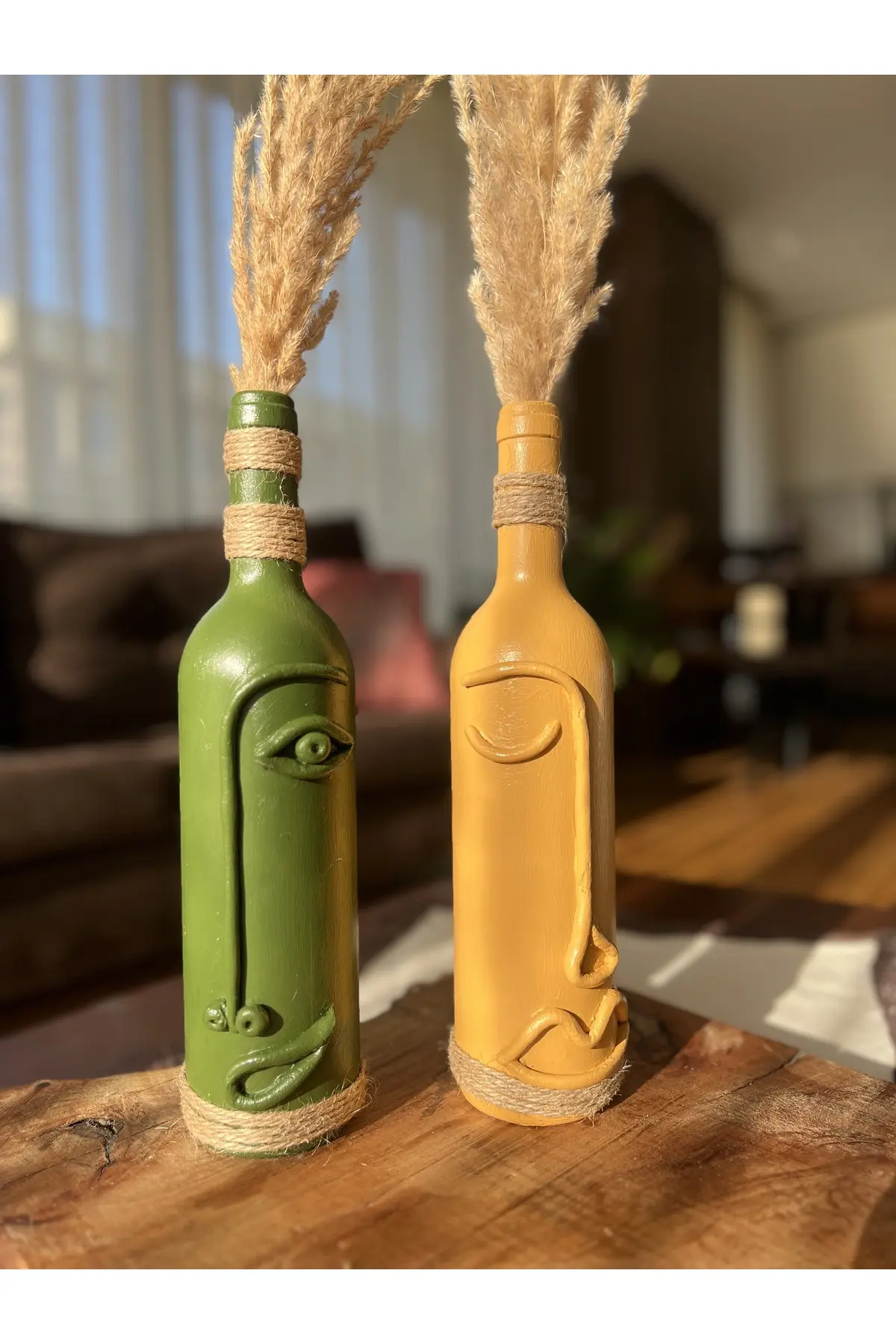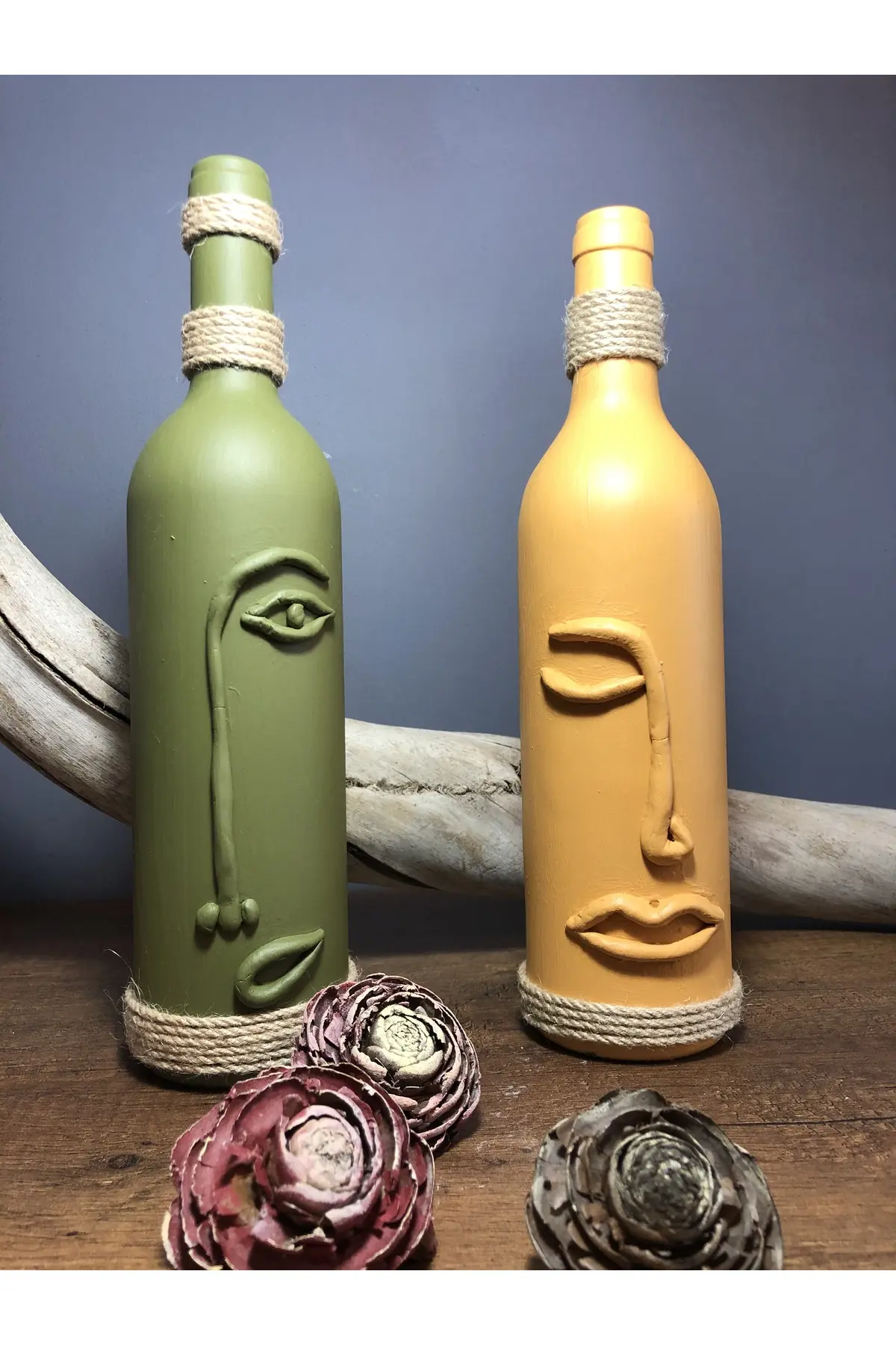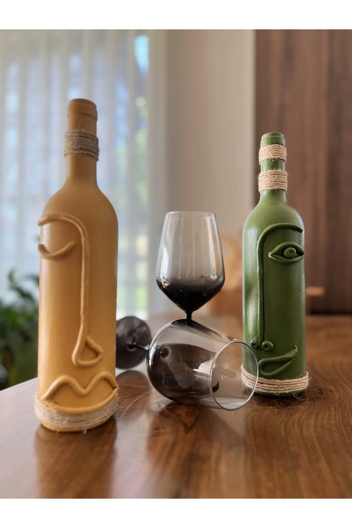 El Yapımı Dekoratif Şarap Şişeleri 2’li Set