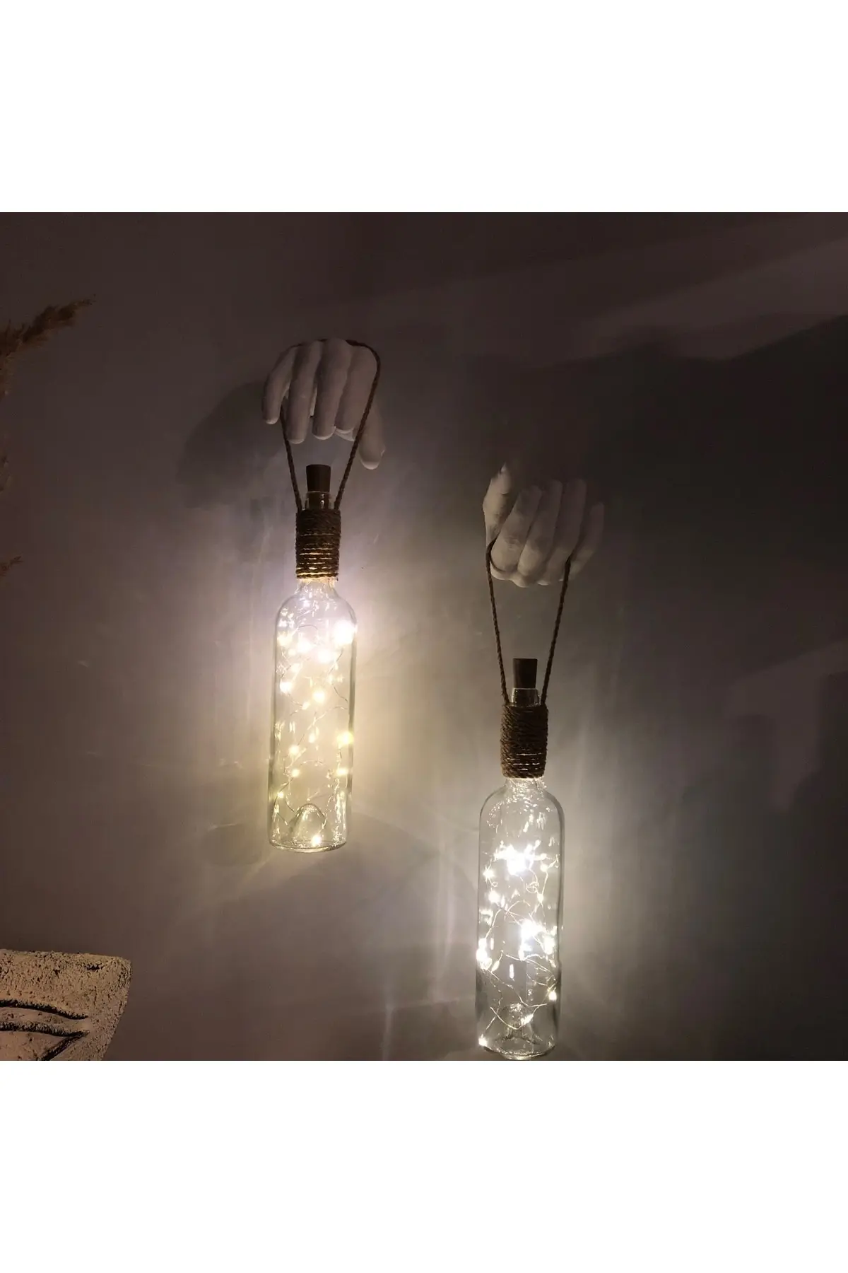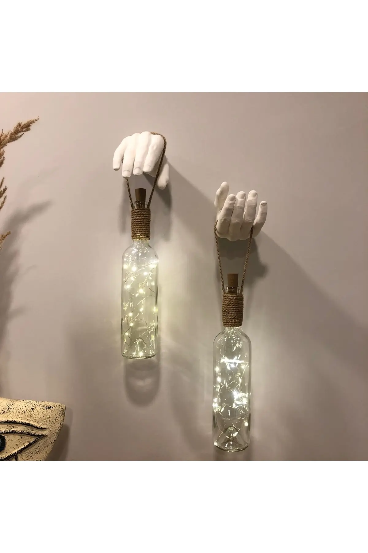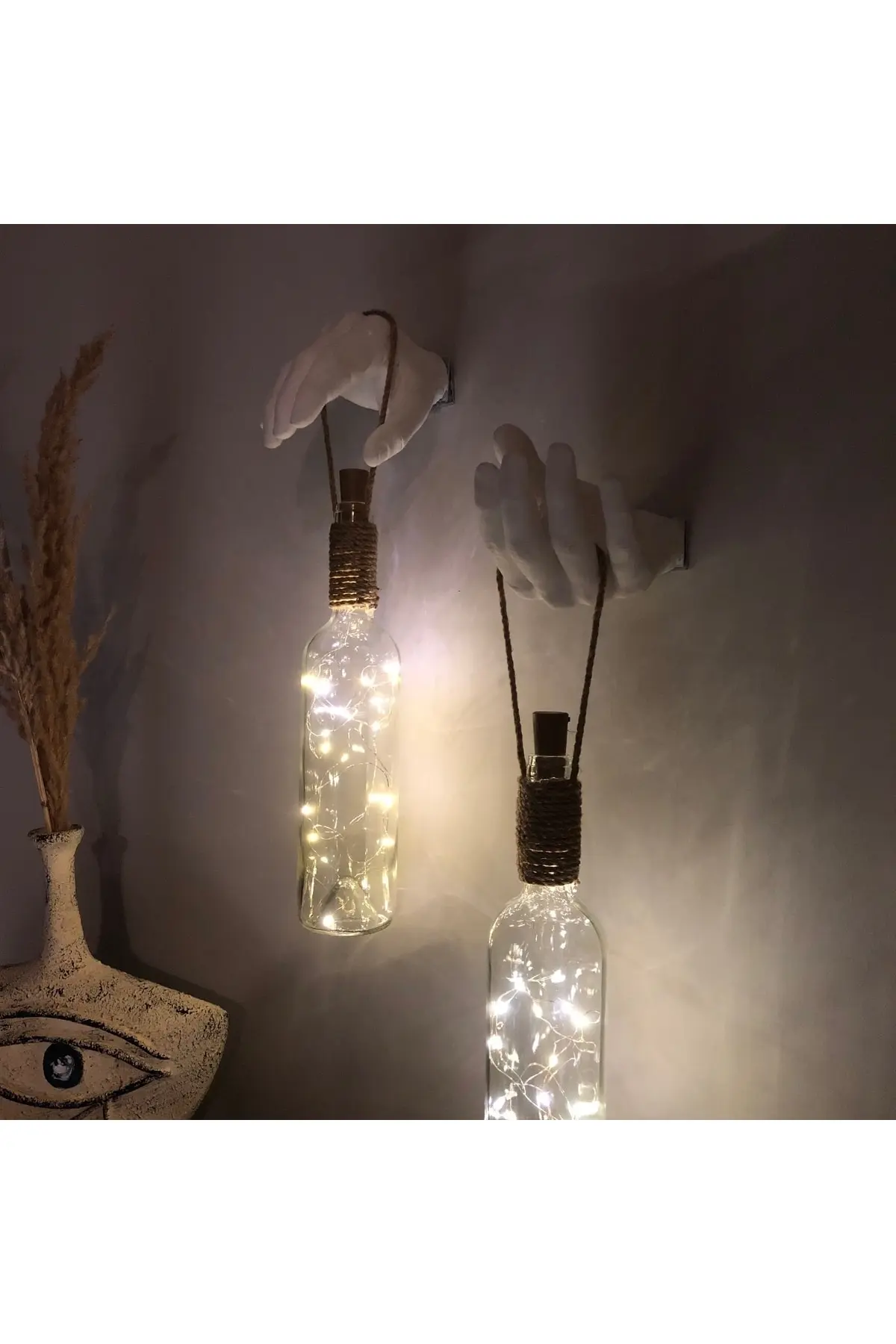 El Yapımı Heykel El Dekorlu Led Işıklı Beyaz Şarap Şişesi Aplik 2’li Set