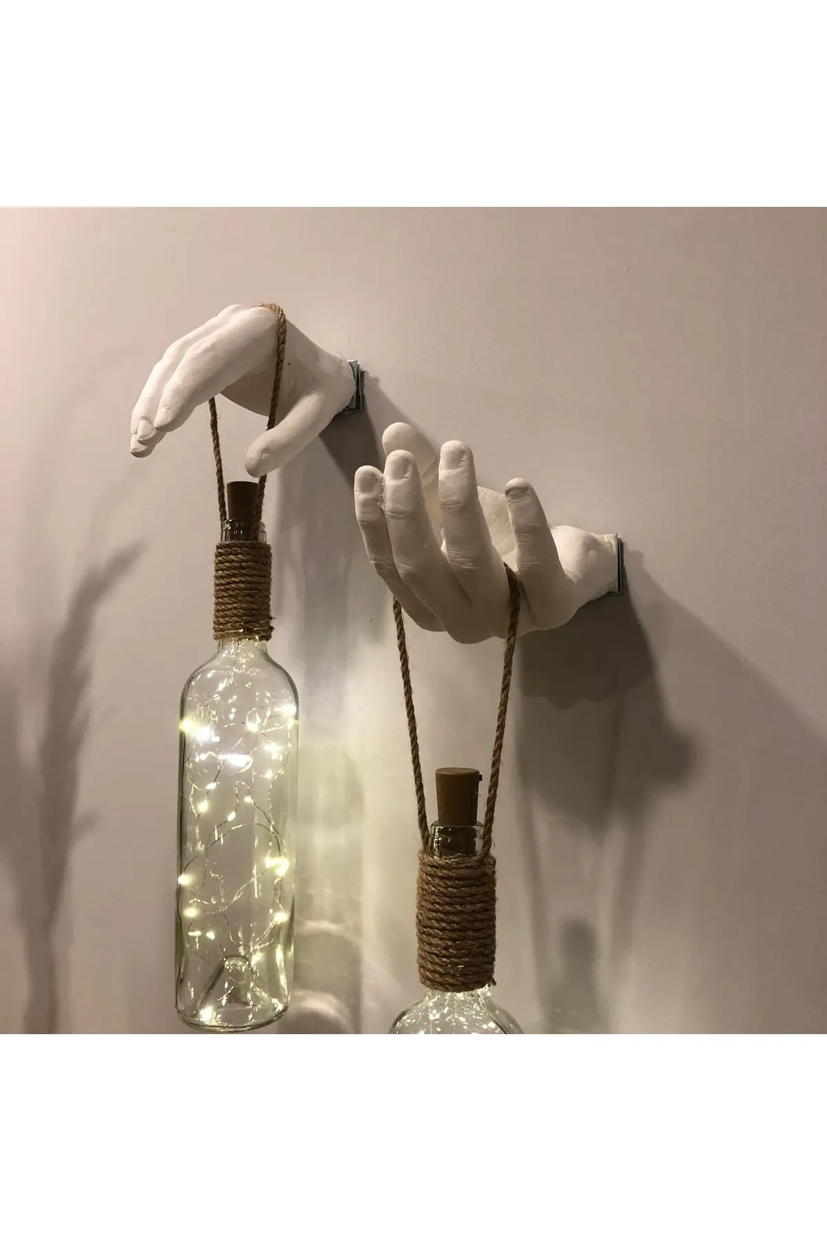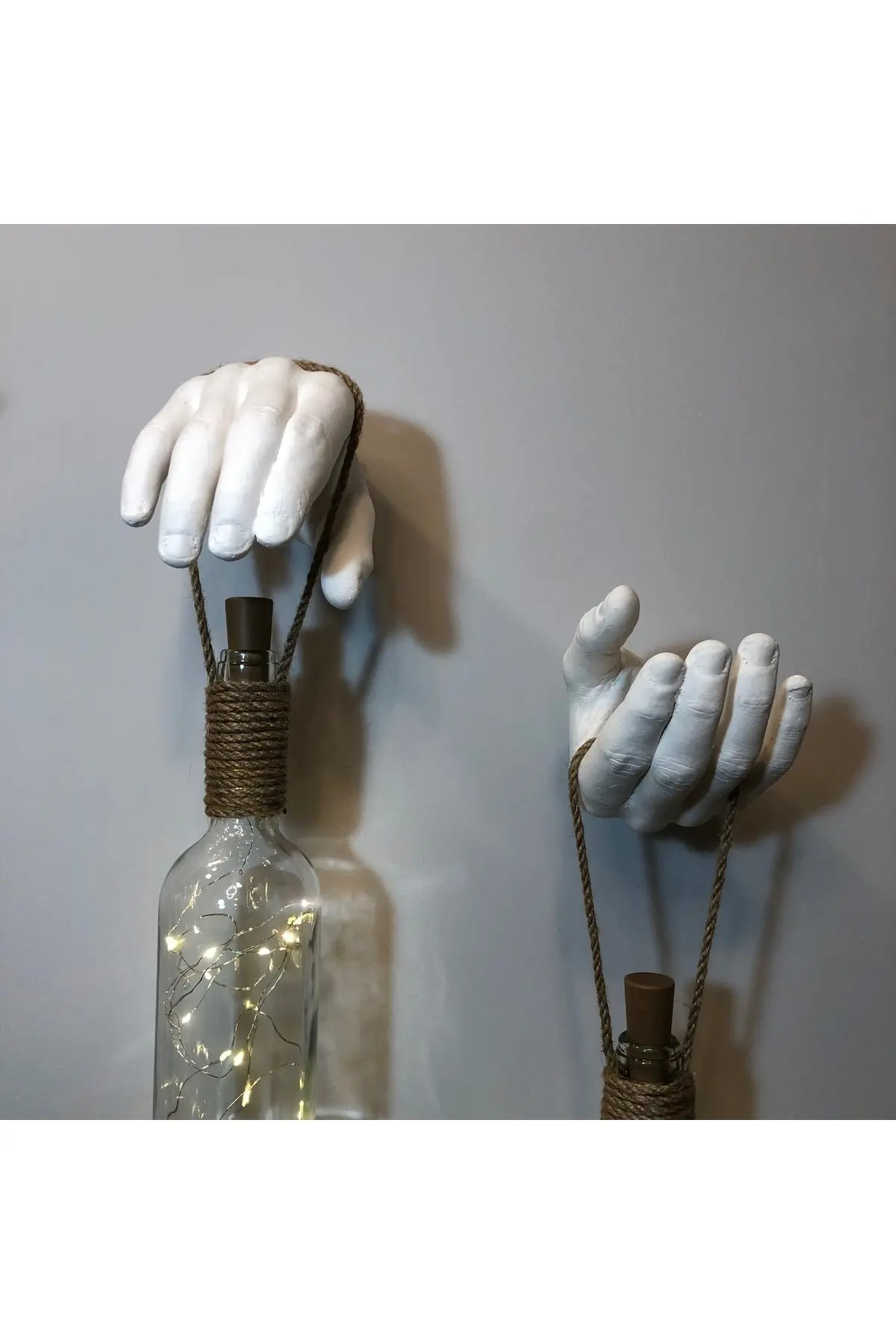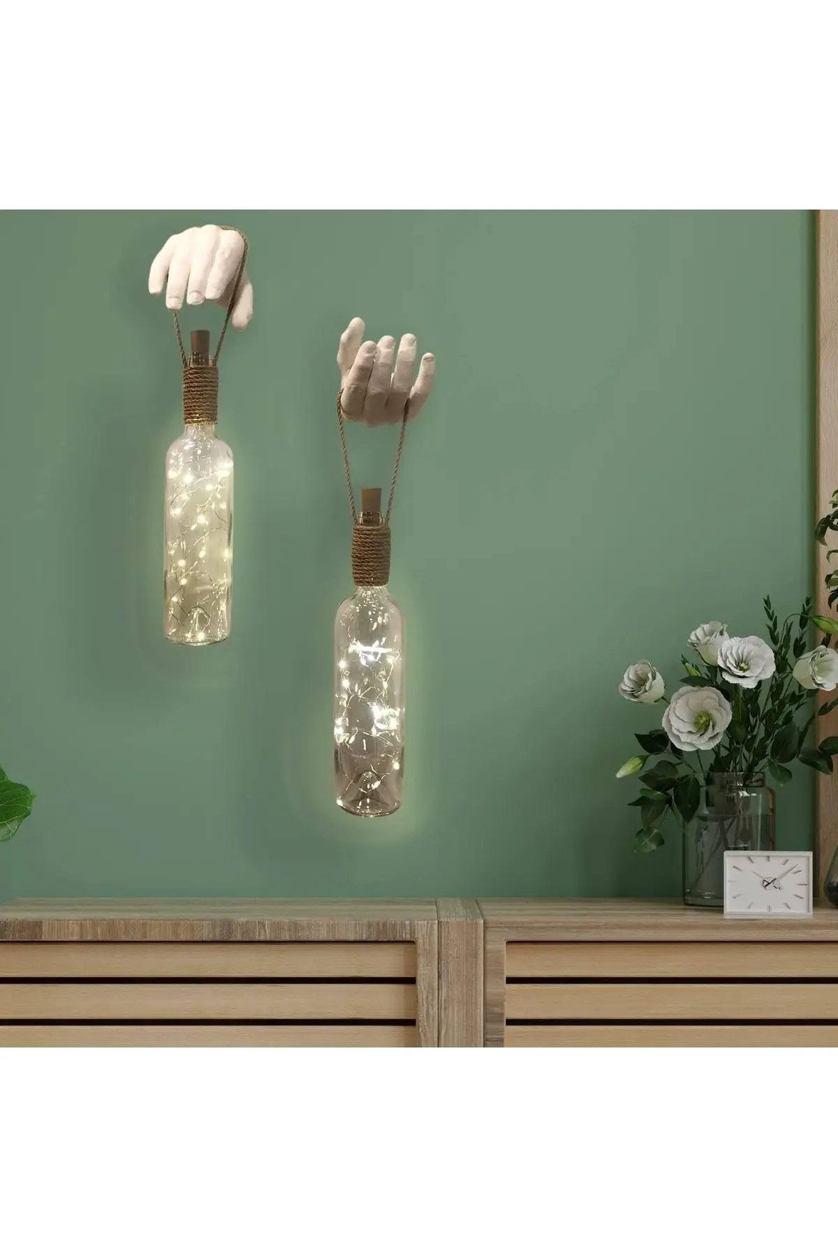 El Yapımı Heykel El Dekorlu Led Işıklı Beyaz Şarap Şişesi Aplik 2’li Set