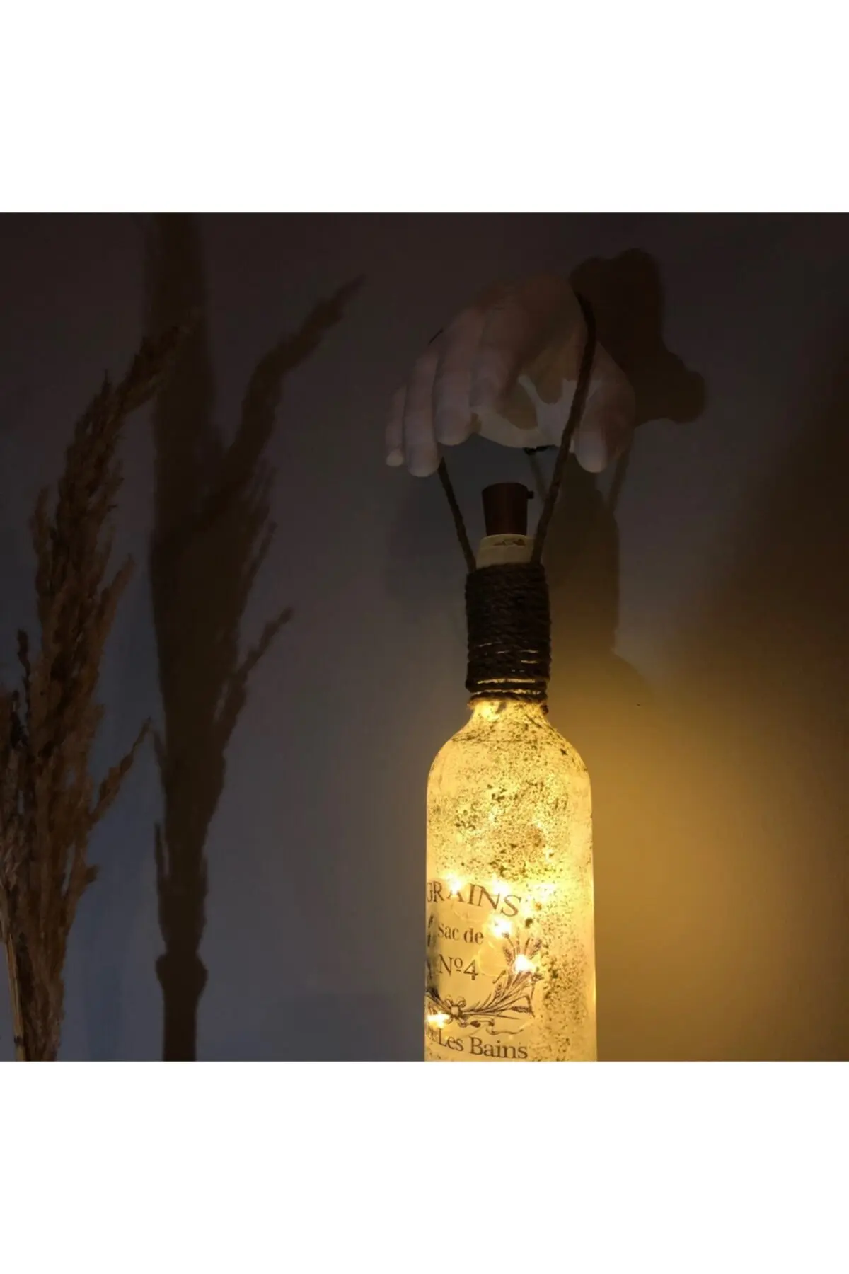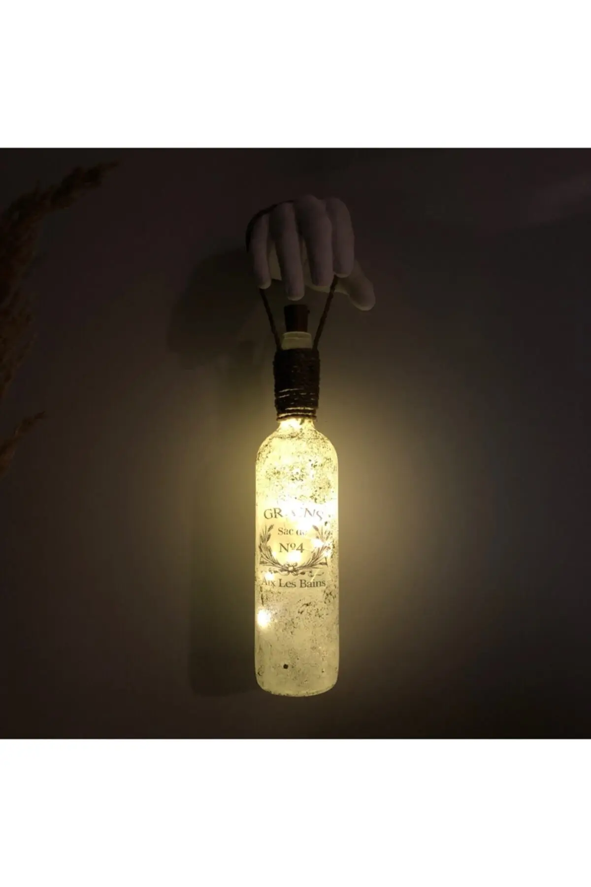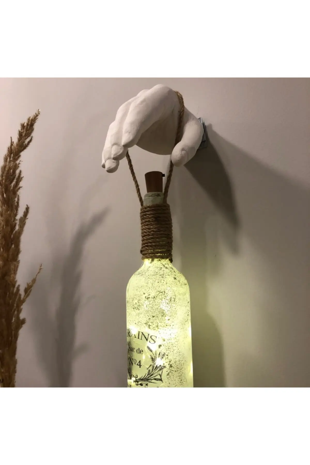 El Yapımı Heykel El Dekorlu Led Işıklı Buzlu Cam Şarap Şişesi Aplik