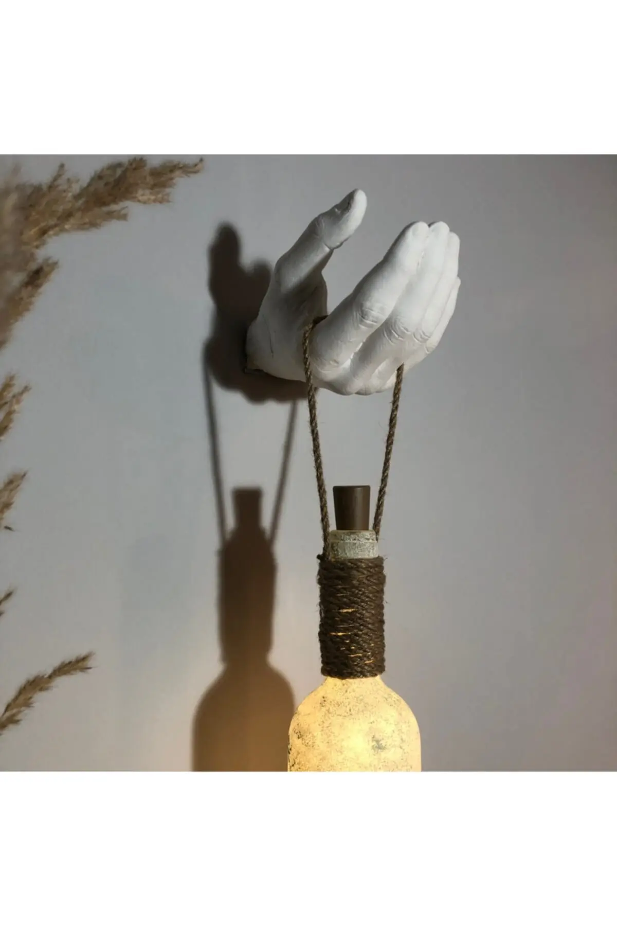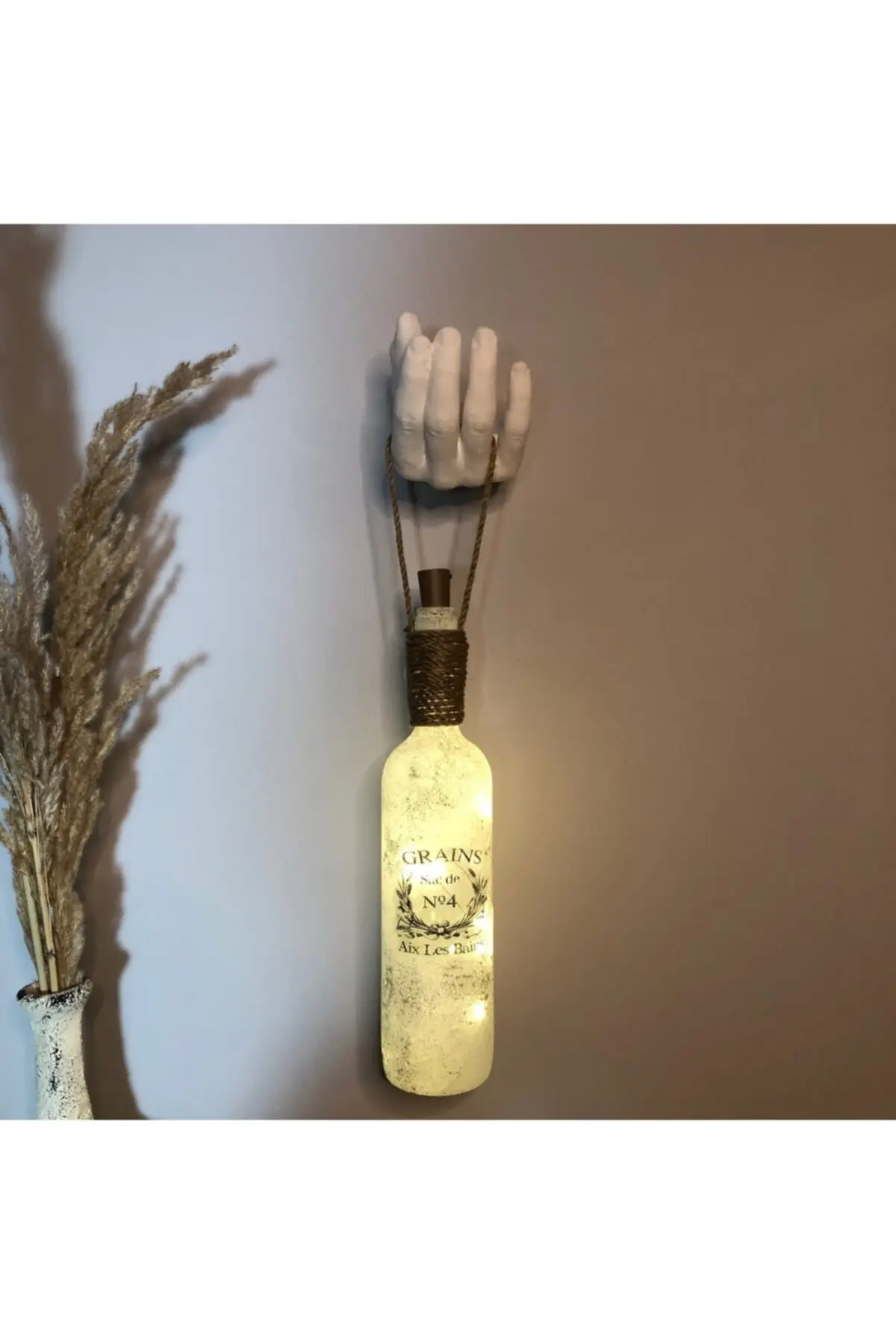 El Yapımı Heykel El Dekorlu Led Işıklı Buzlu Cam Şarap Şişesi Aplik