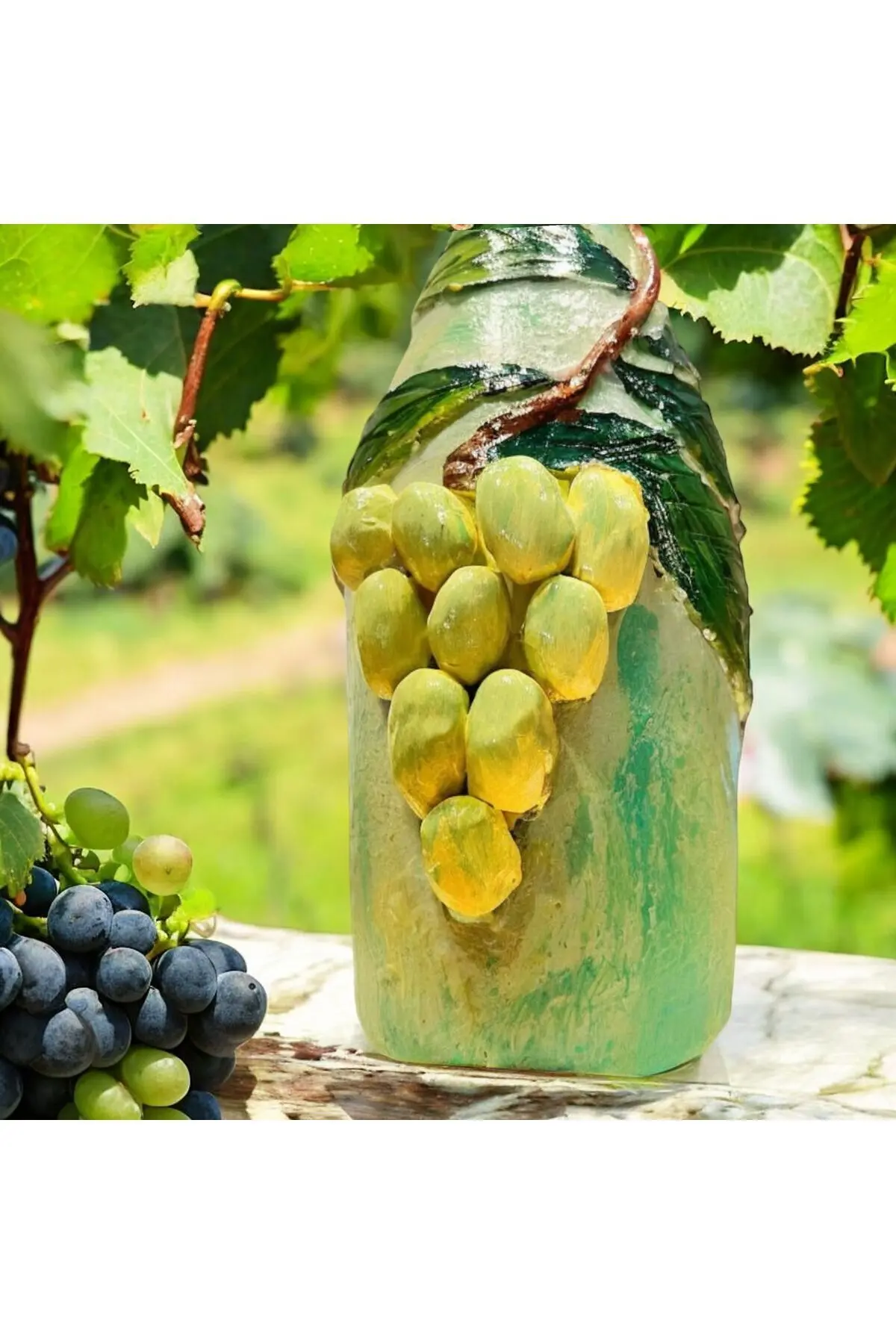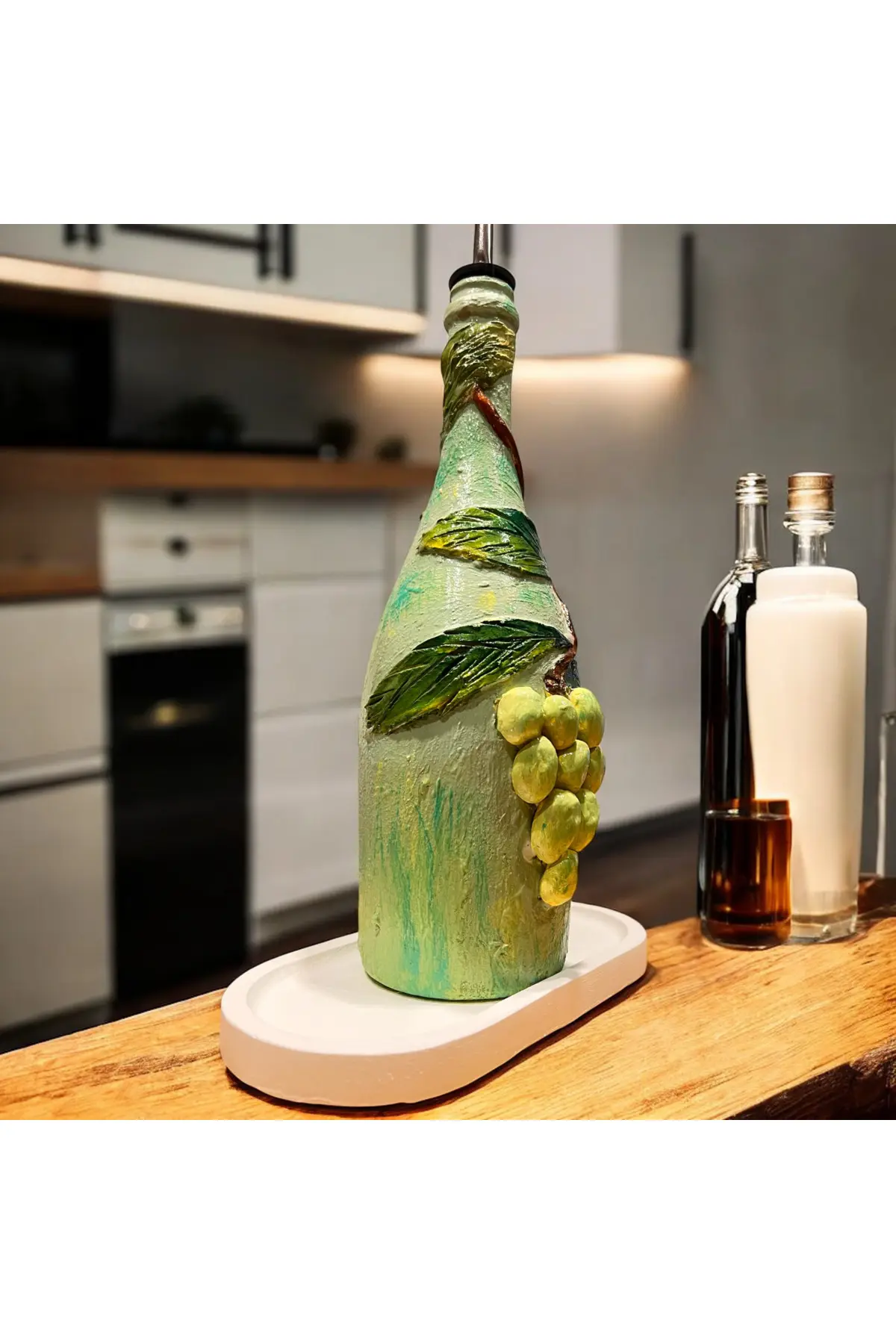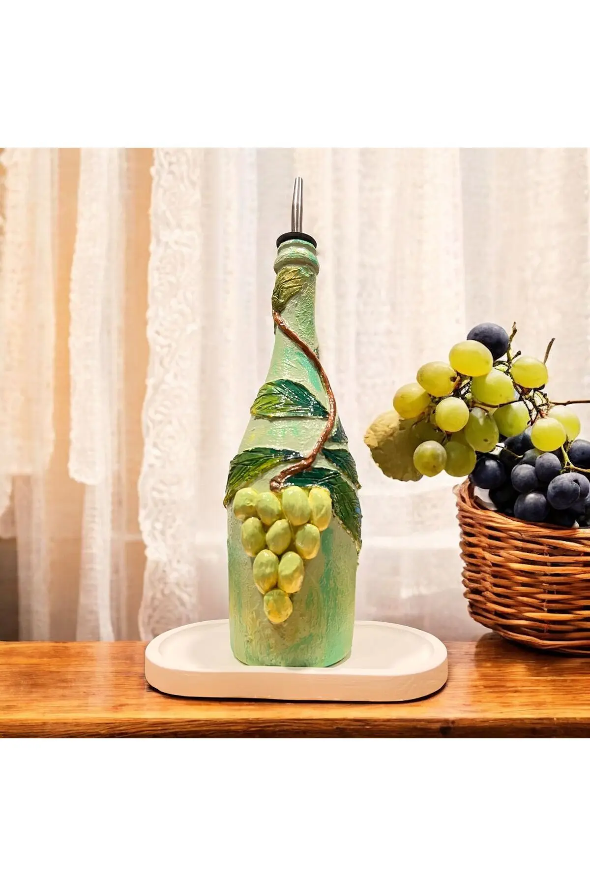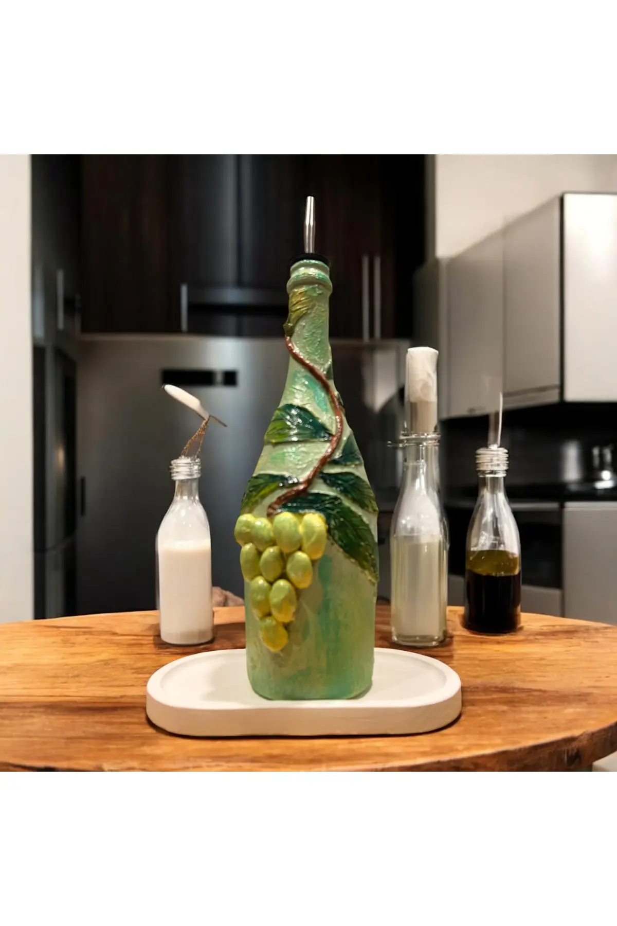 El yapımı Kabartma Kil Uygulamalı Üzüm Desenli Cam Şişe Sirkelik-Yağdanlık, Mutfak dekor