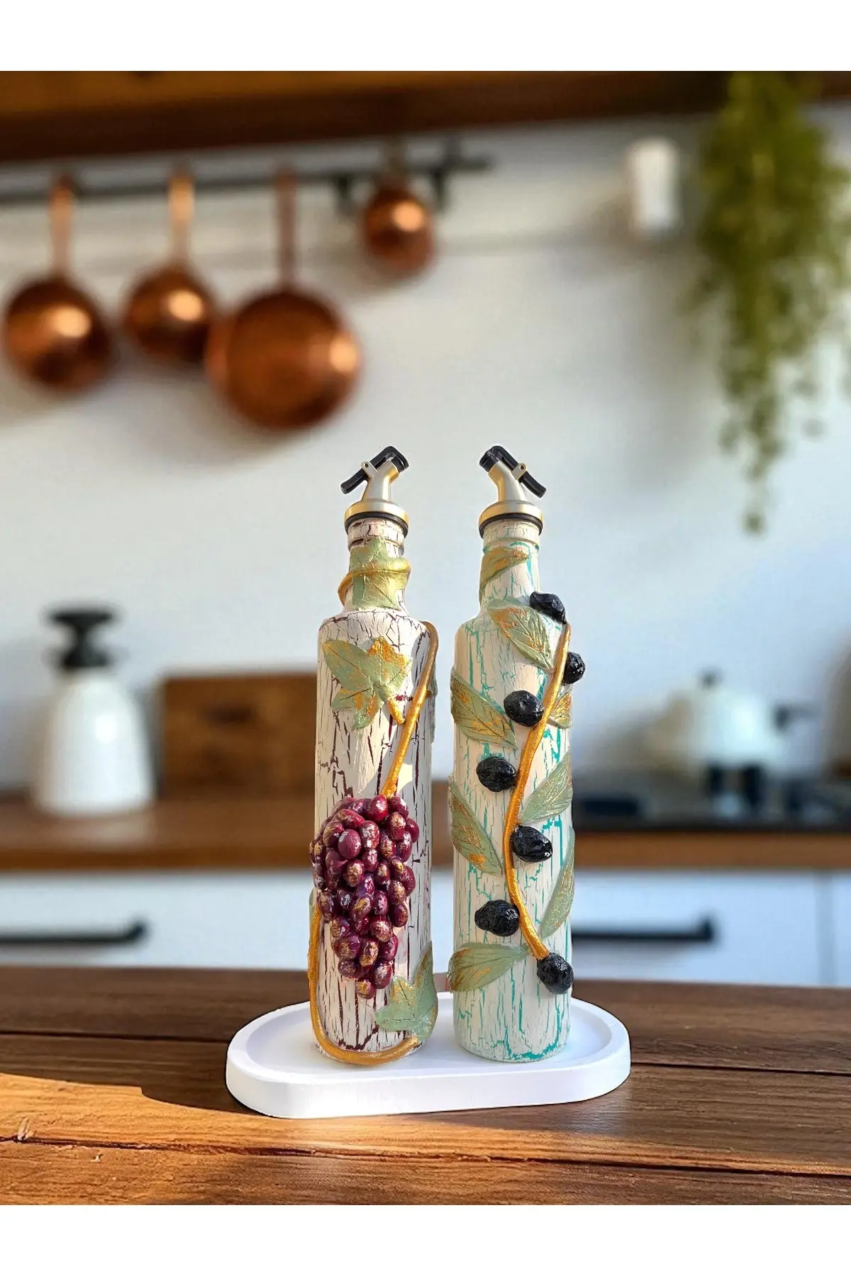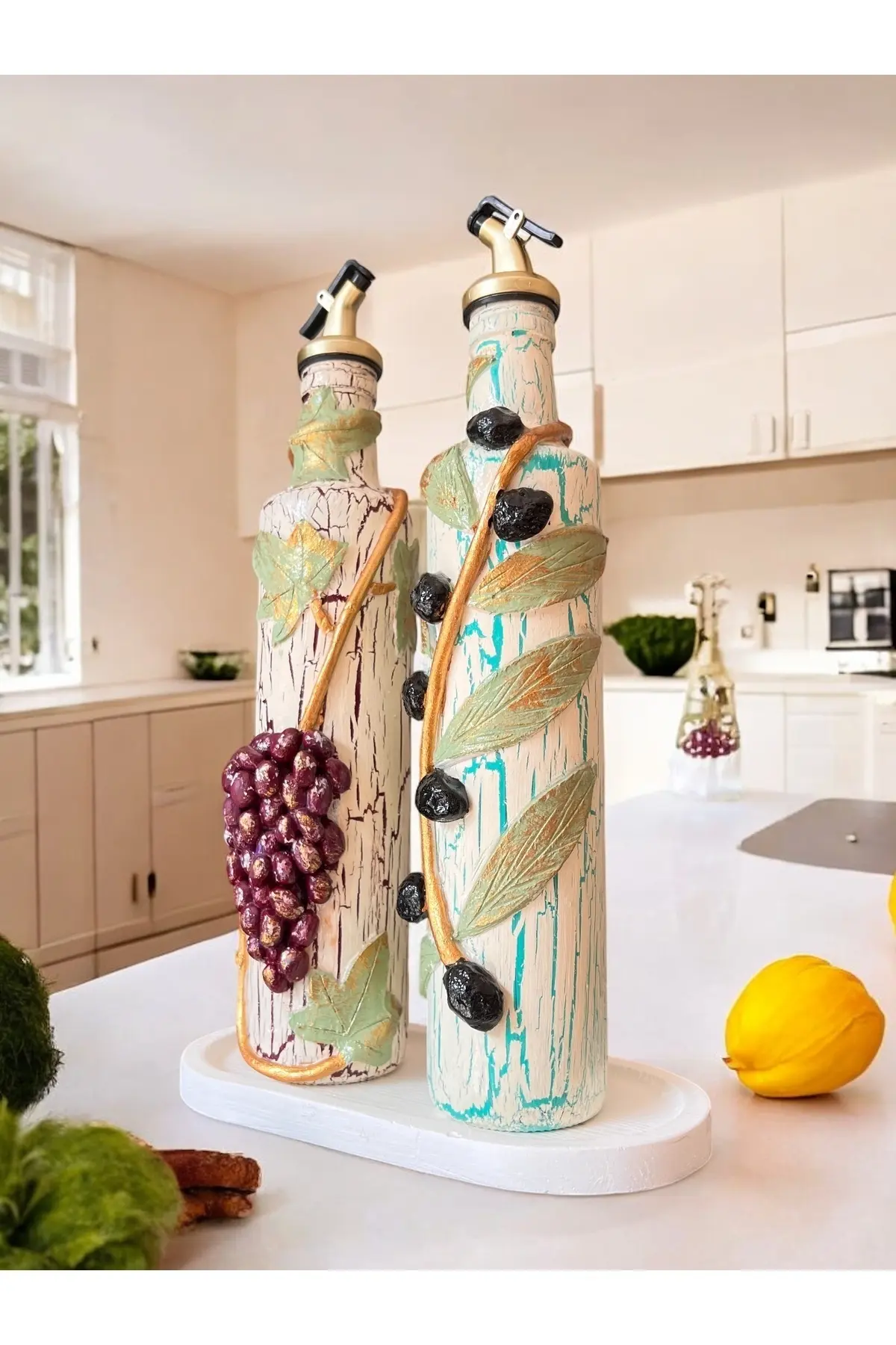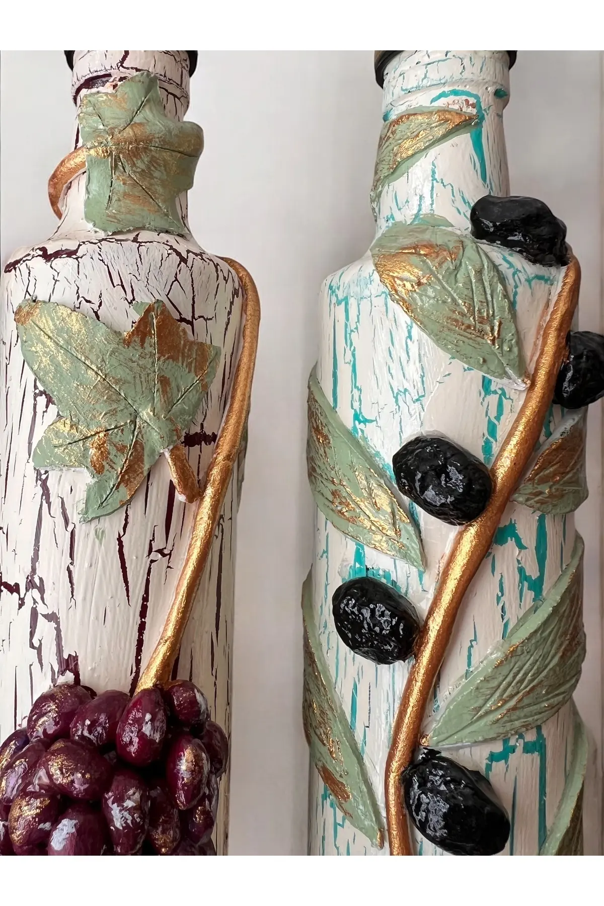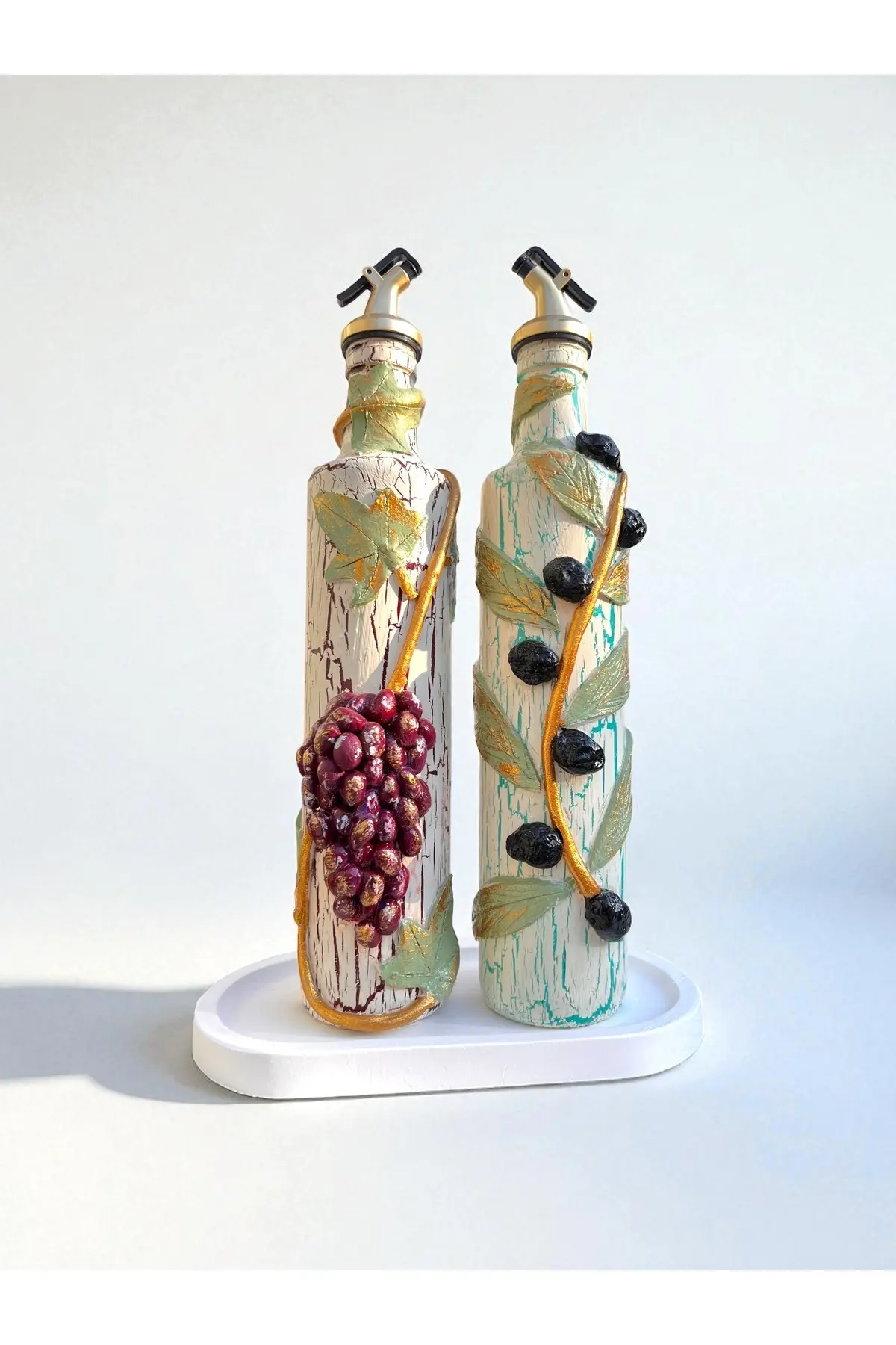 El yapımı Kil Kabartma Uygulama Ege Dokunuşu El Yapımı Zeytin & Üzüm Şişeleri, Yağdanlık, Sosluk