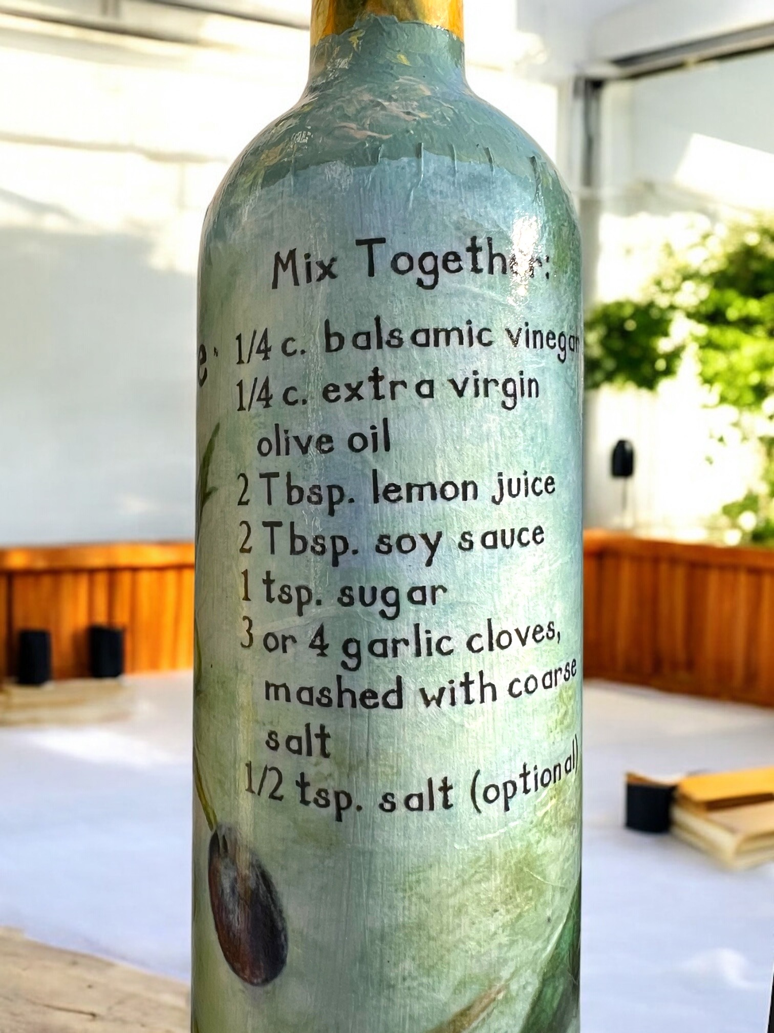 Ürün Özellikleri: El Boyaması & Özgün Tasarım – Her şişe el yapımıdır ve benzersizdir. Yüksek Kaliteli Cam Malzeme – Uzun ömürlü ve sağlıklı bir kullanım sağlar. Damlatmaz Kapak – Sızdırmaz dökme aparatı sayesinde pratik ve temiz kullanım. Çok Amaçlı Kullanım – Zeytinyağı, sirke, soslar, nar ekşisi gibi sıvılar için uygundur. Dekoratif & Şık – Mutfakta veya sofrada sadece bir kullanım eşyası değil, aynı zamanda harika bir dekor parçasıdır. Çevre Dostu & Doğal – Kimyasal içermeyen, sağlığa zararsız boyalarla boyanmıştır.