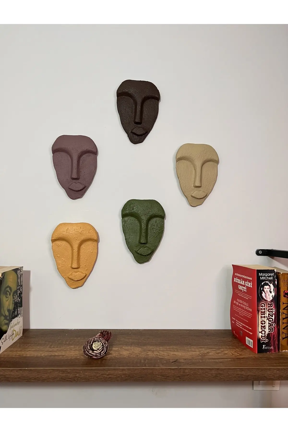 El Yapımı Minimalist Tasarım Duvar Dekorasyon Maskları (maskeleri) 5’li Set