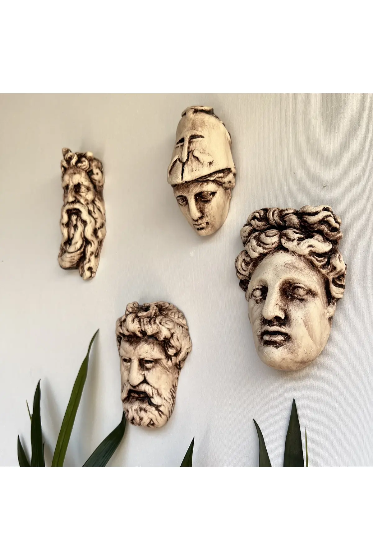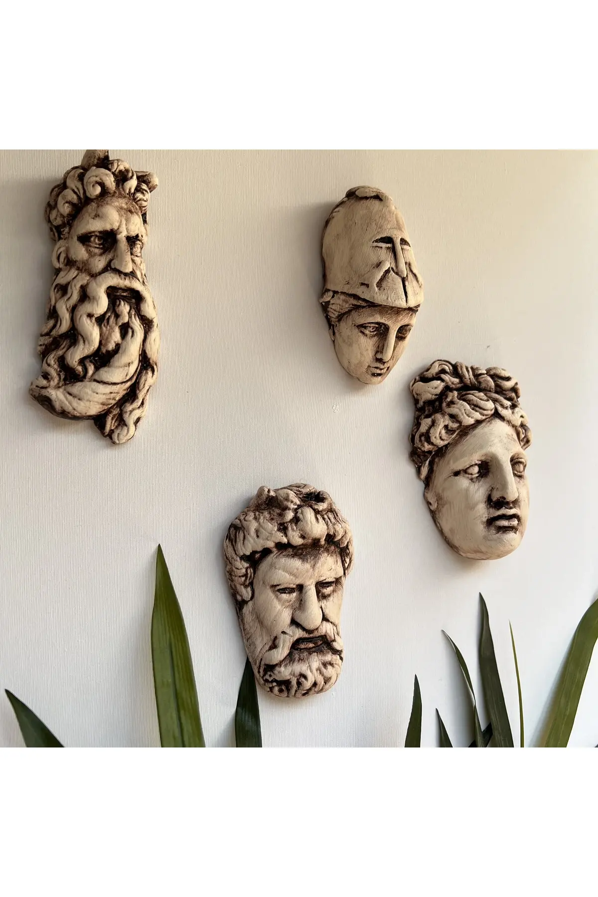 El yapımı Minyatür Antik Yunan Tanrıları Duvar Dekorasyon Objeleri 4 lü set