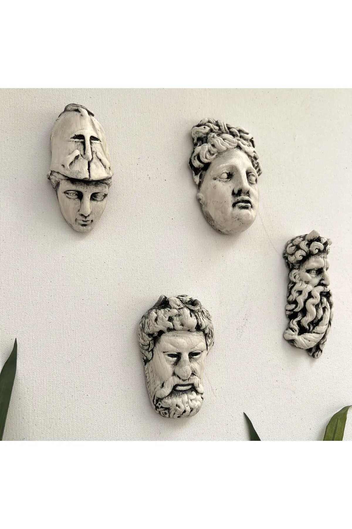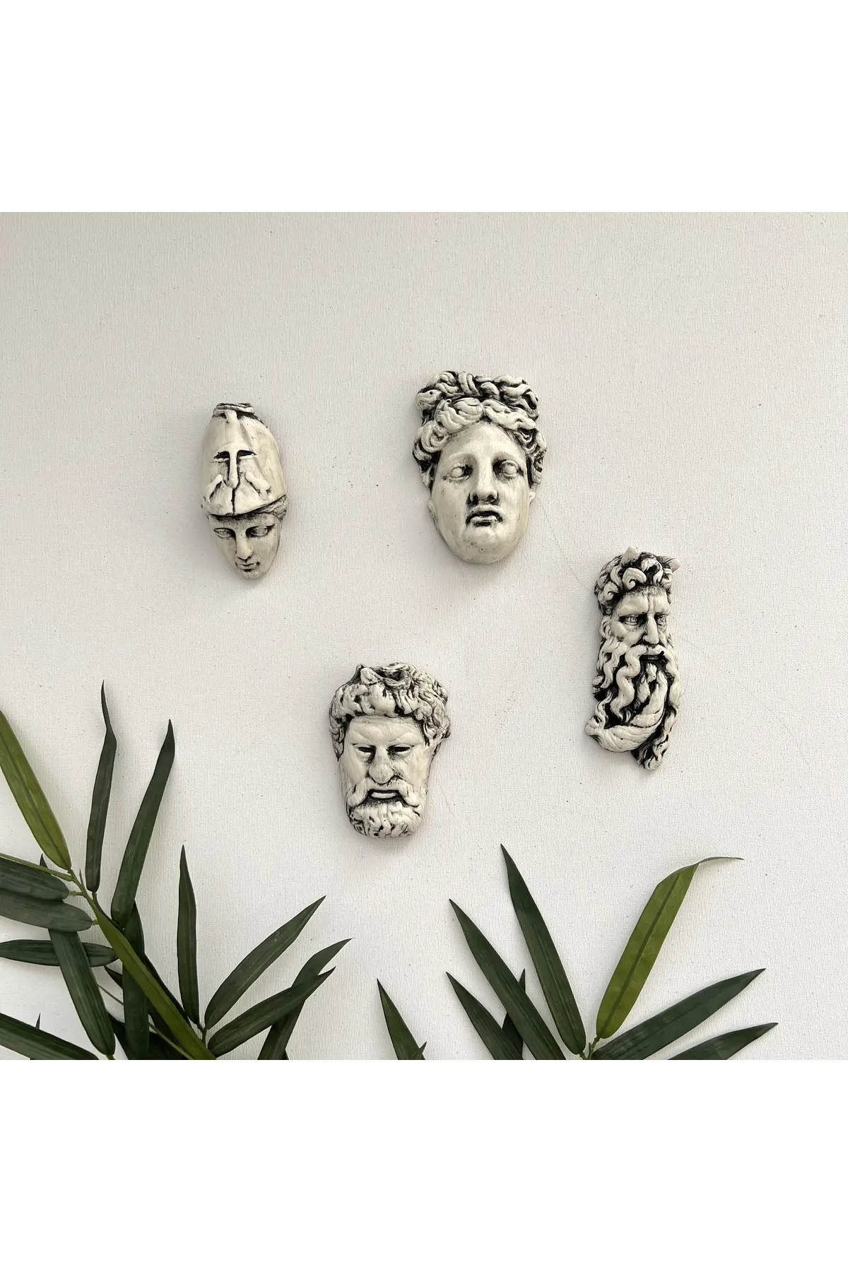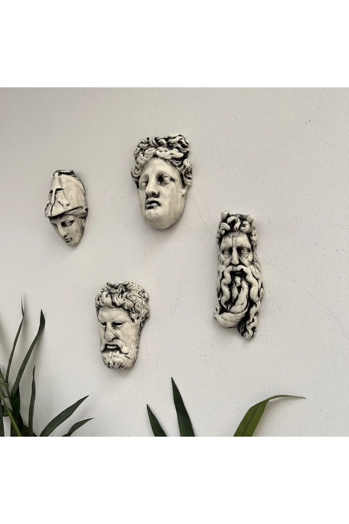 El yapımı Minyatür Antik Yunan Tanrıları Duvar Dekorasyon Objeleri 4 lü set