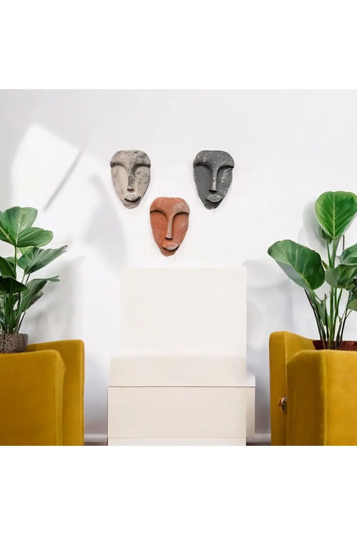 El Yapımı Taş Heykel Soyut Yüz Maske 3’li Set, Duvar Dekor, Modern Ev ve Ofis Dekoru