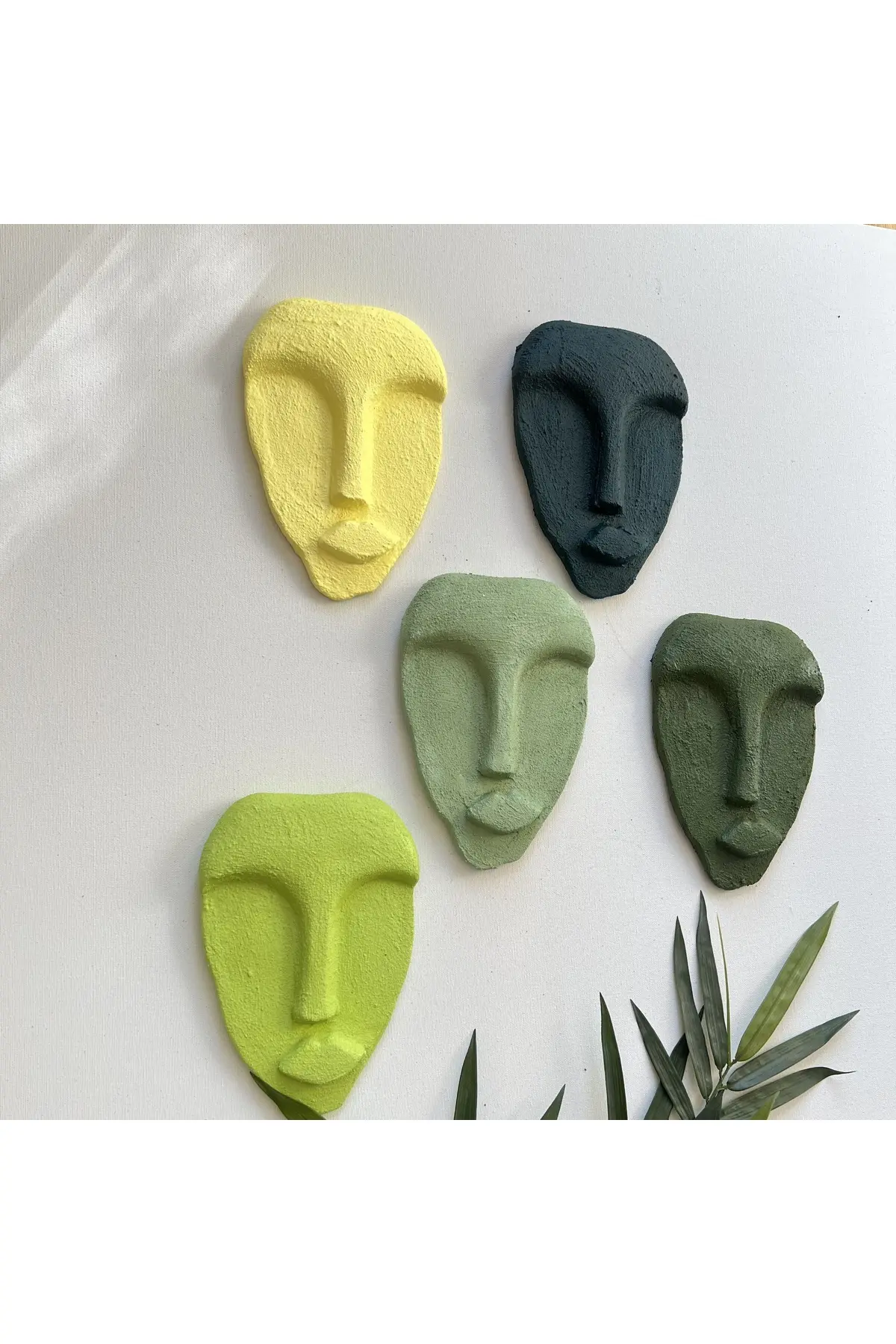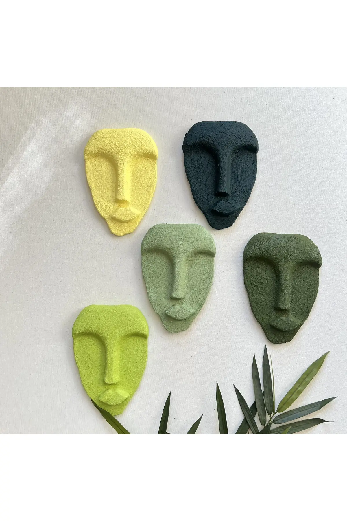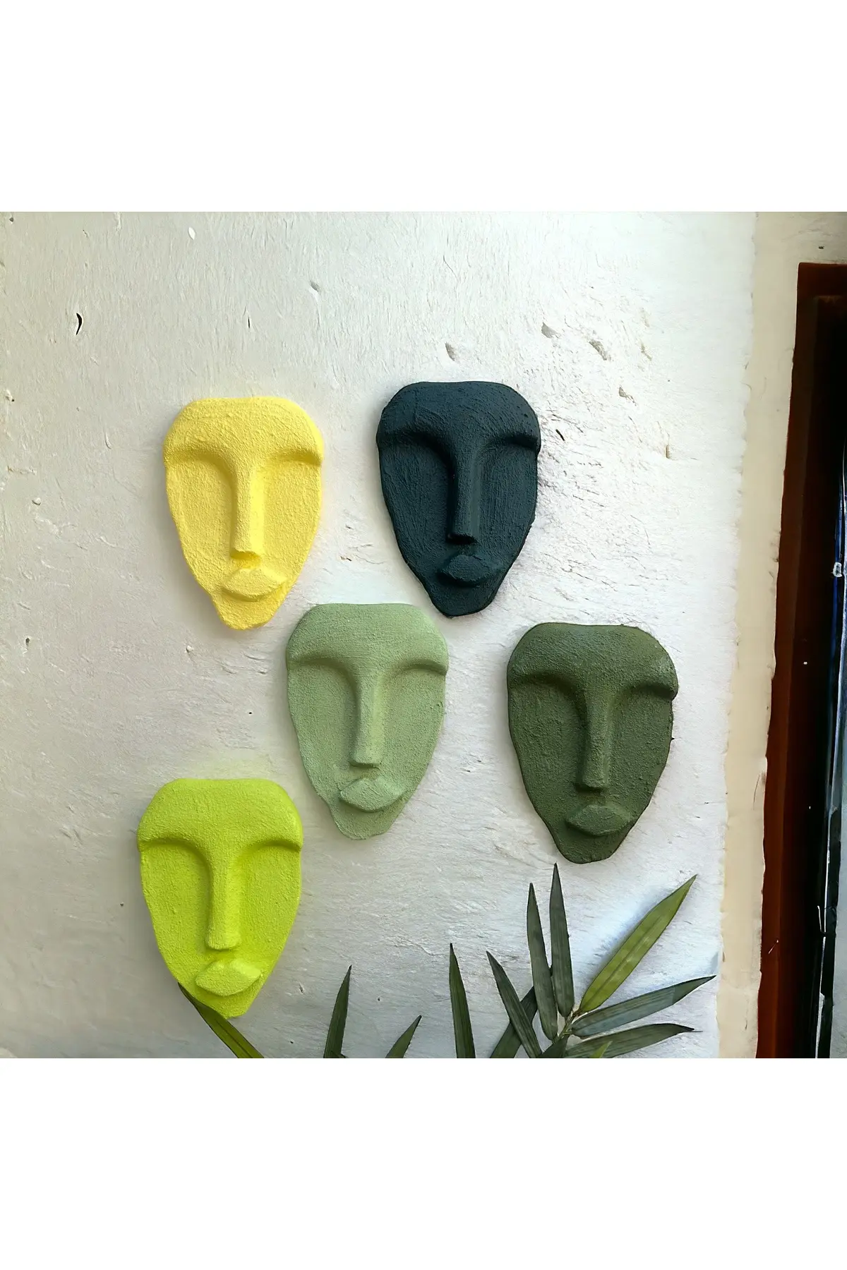 El Yapımı Taş Heykel Soyut Yüz Maske 5’li Set, Modern Yeşil Renkli Soyut Duvar Dekoru