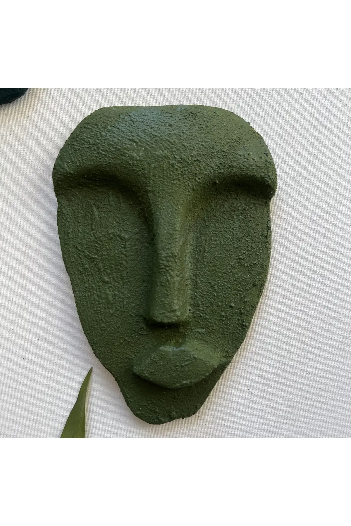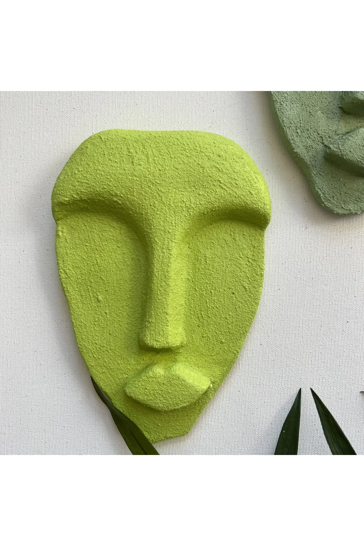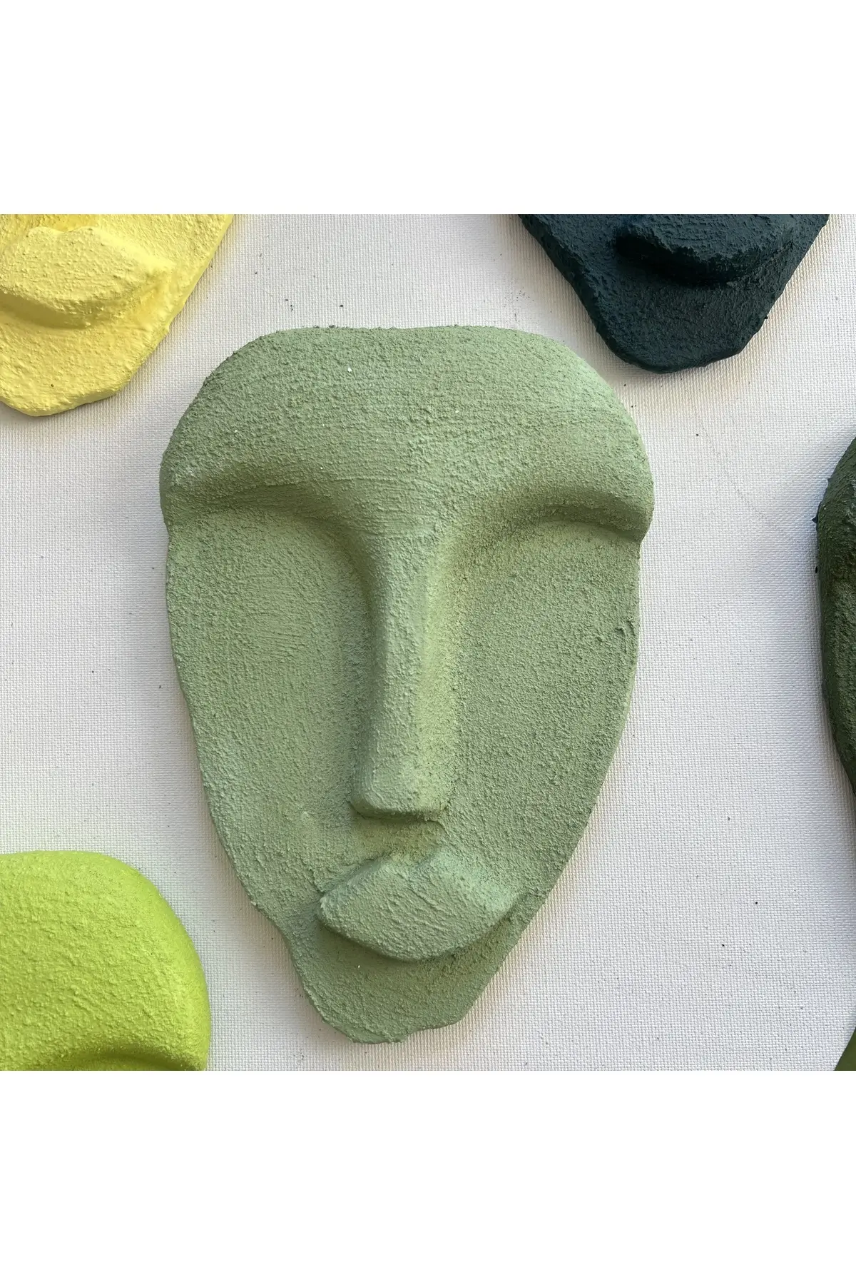 El Yapımı Taş Heykel Soyut Yüz Maske 5’li Set, Modern Yeşil Renkli Soyut Duvar Dekoru