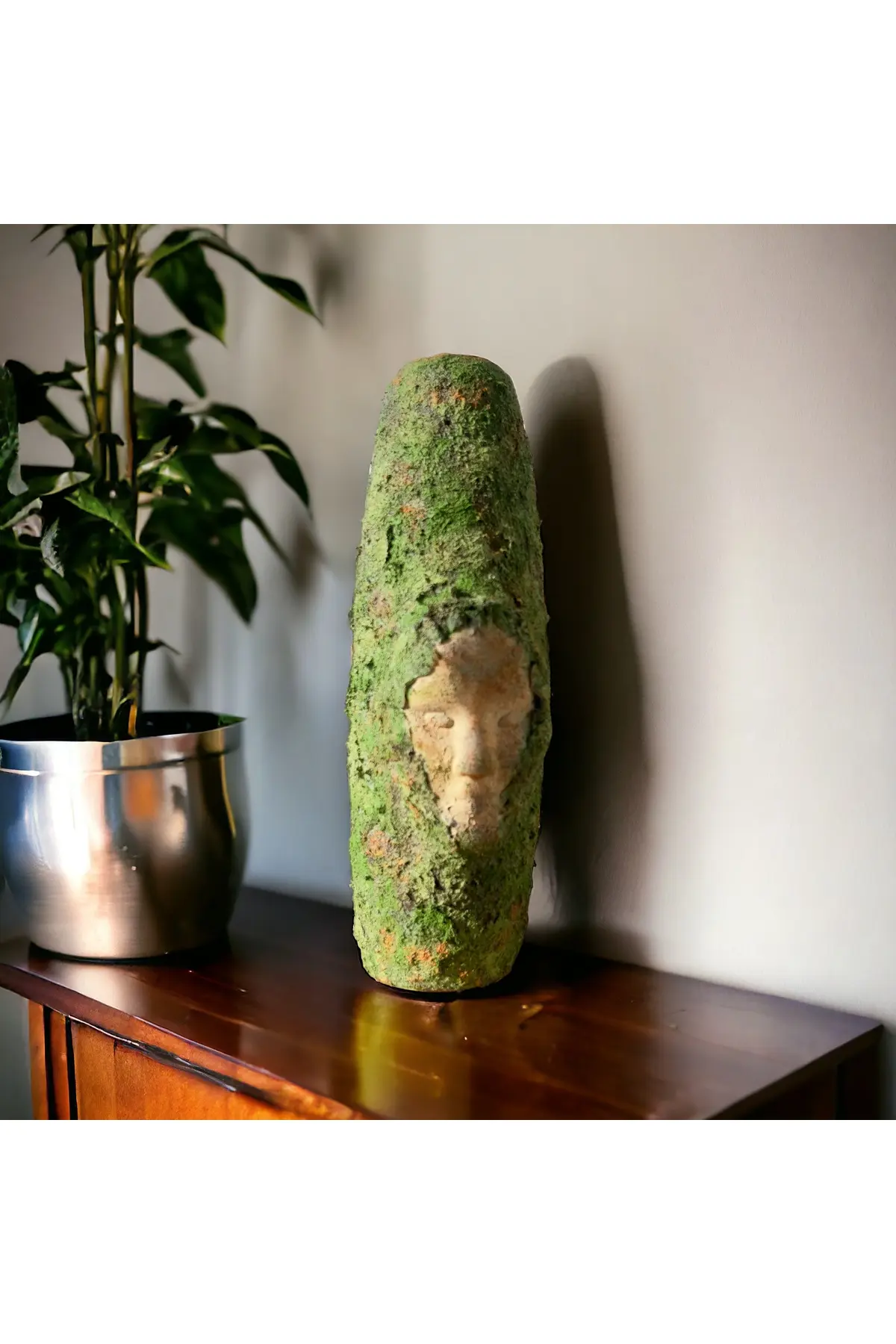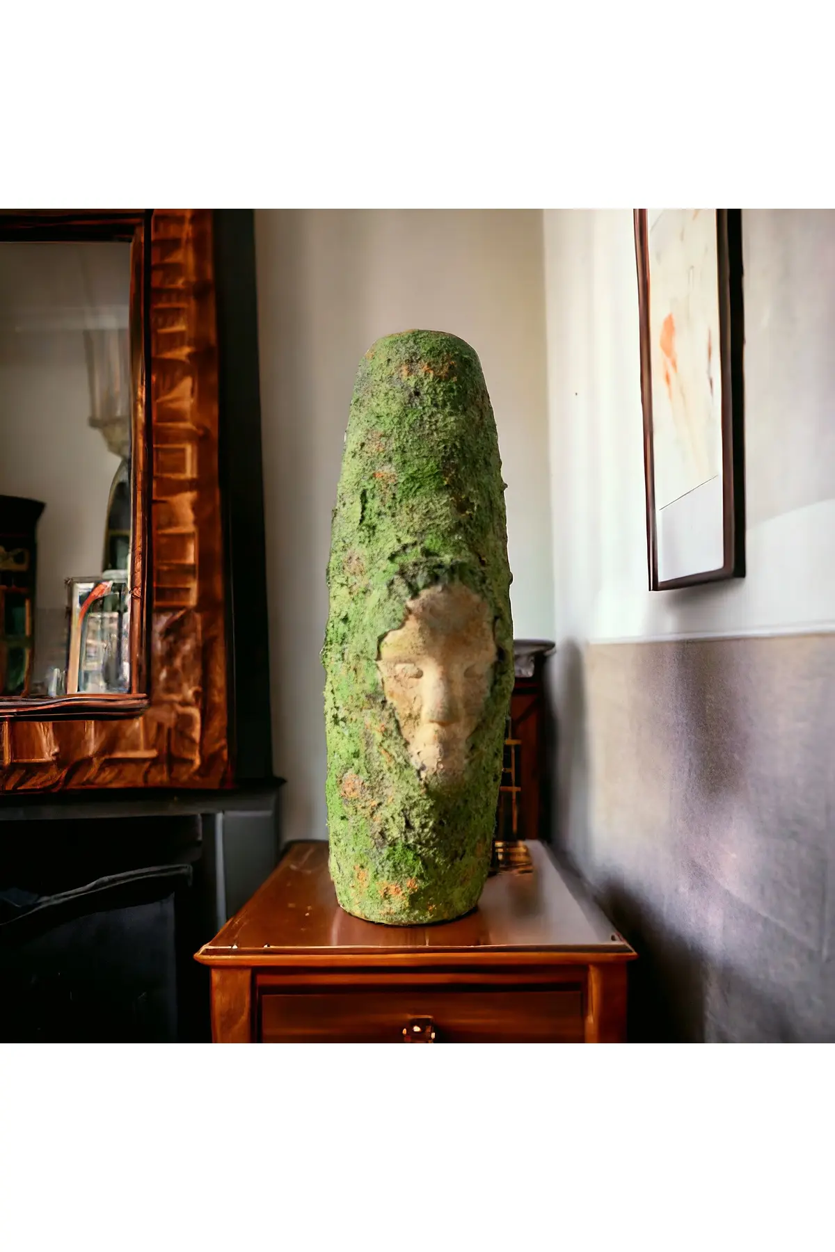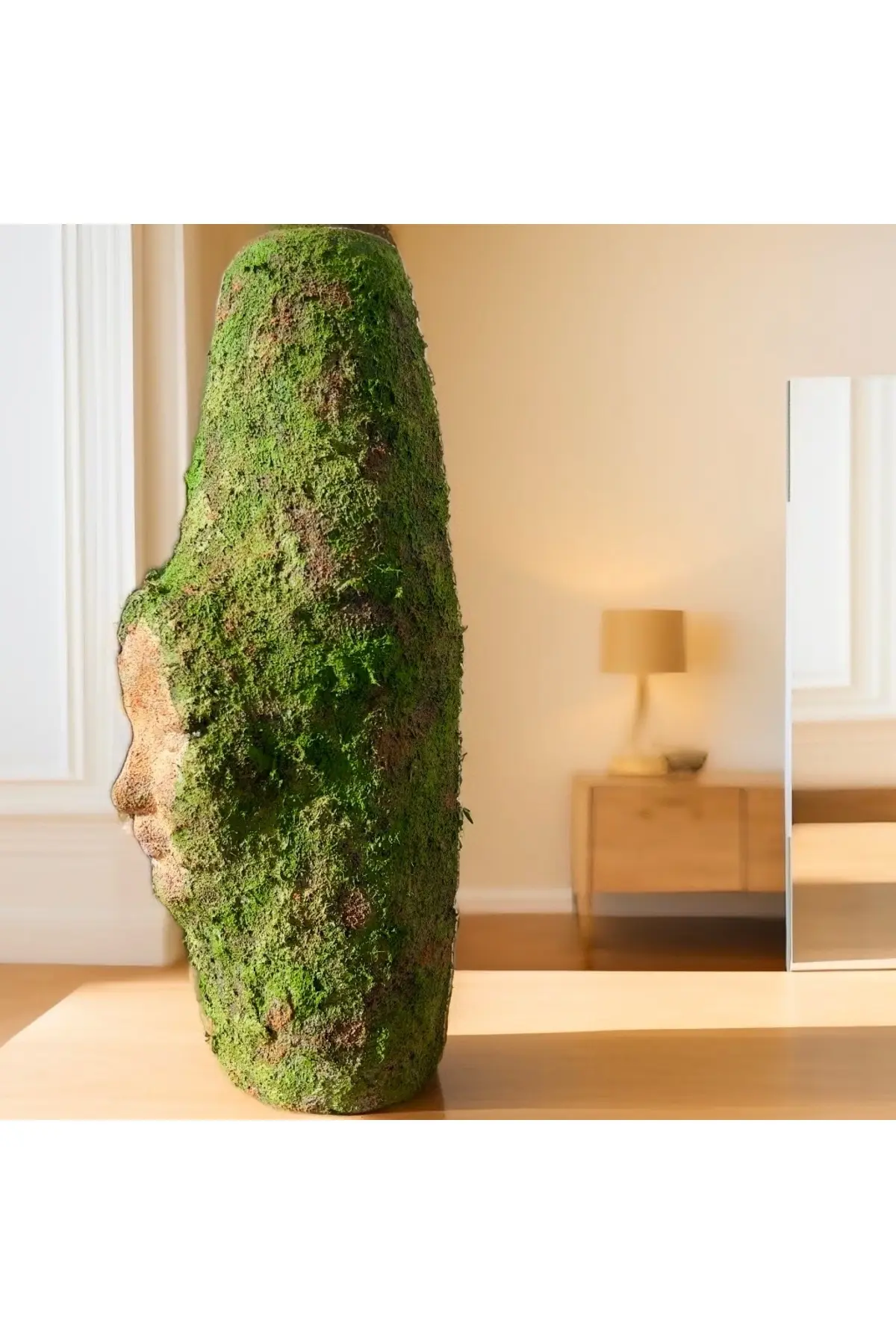 El Yapımı Yosun Detaylı İnsan Yüz Heykeli Dekorlu Özel Tasarım Vazo, Ev Dekoru, Ofis Dekoru