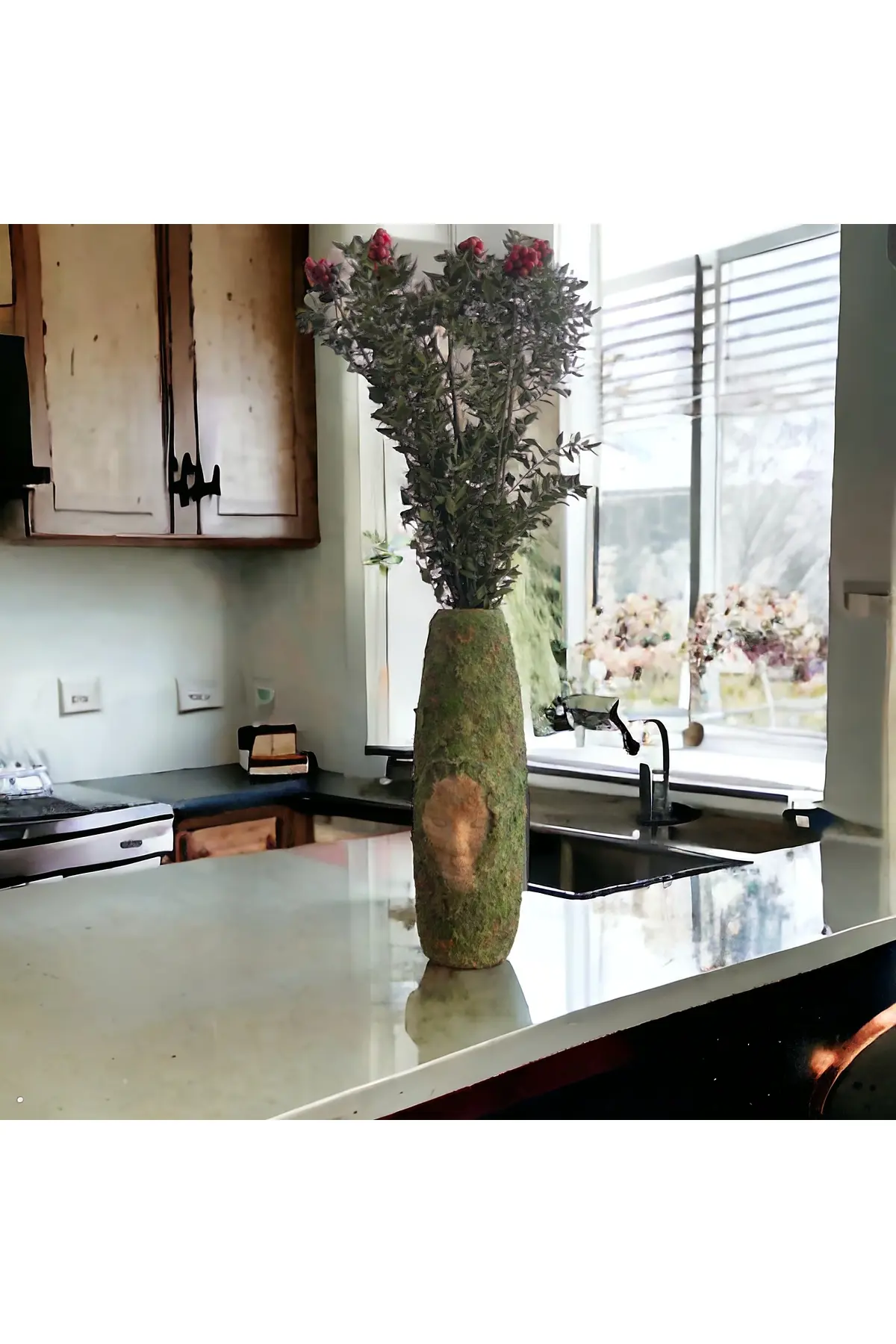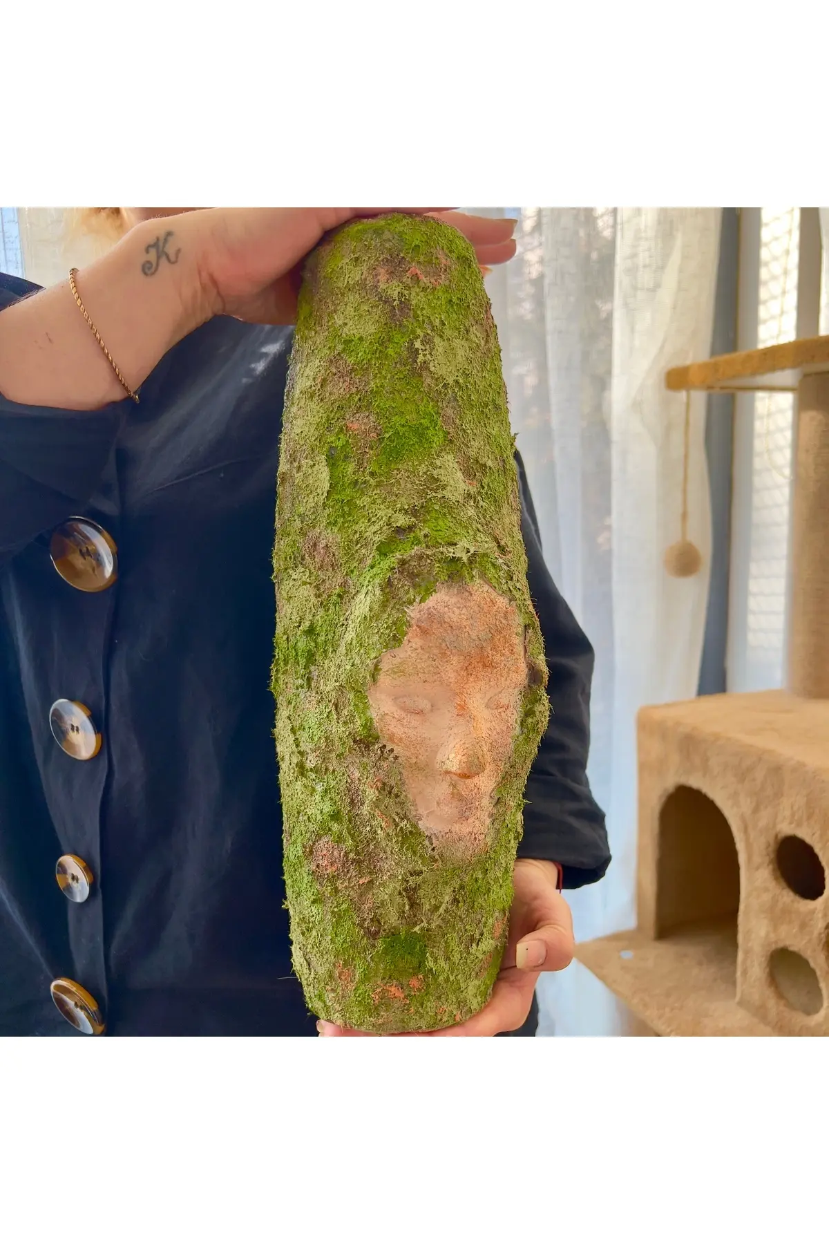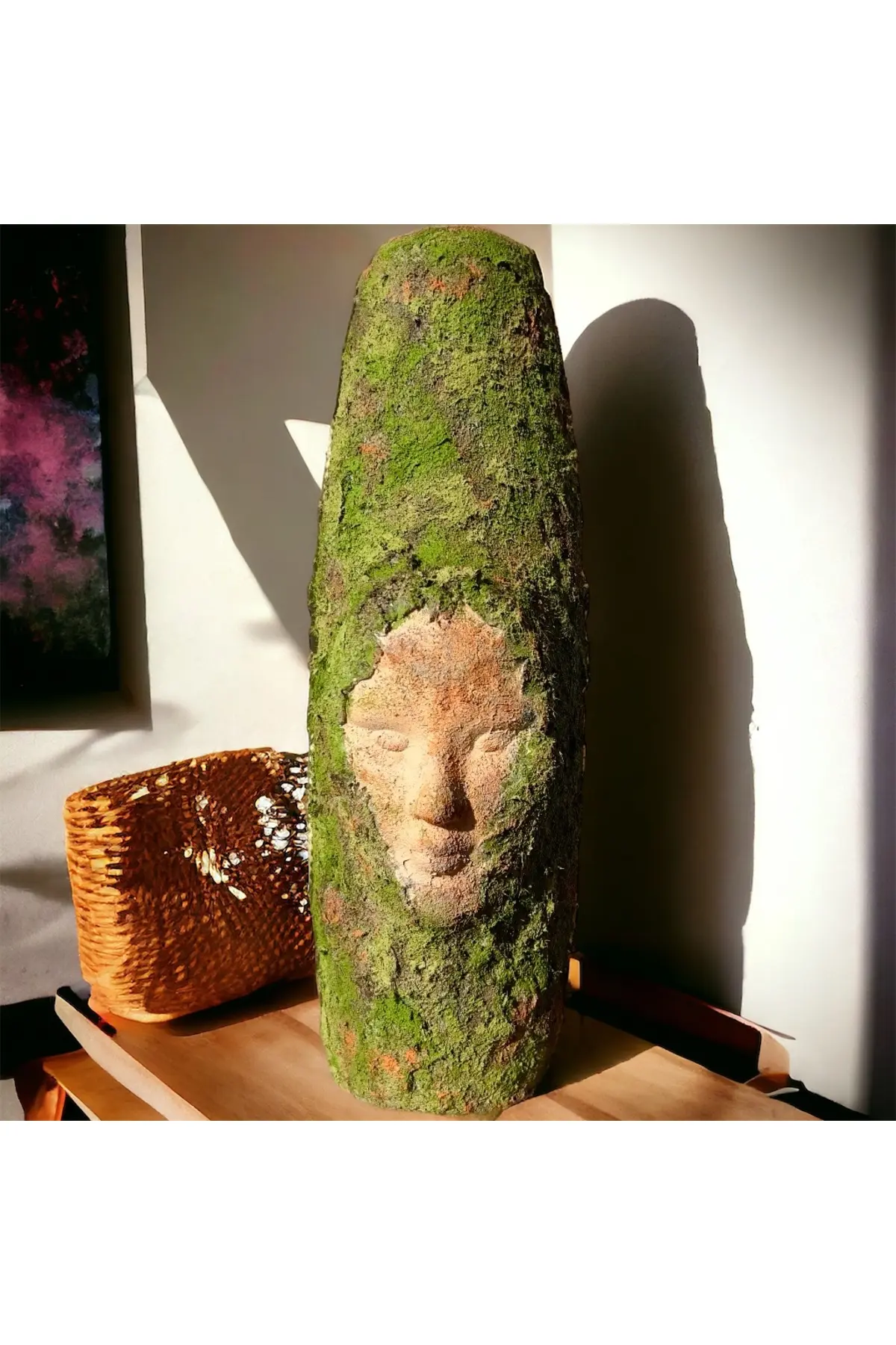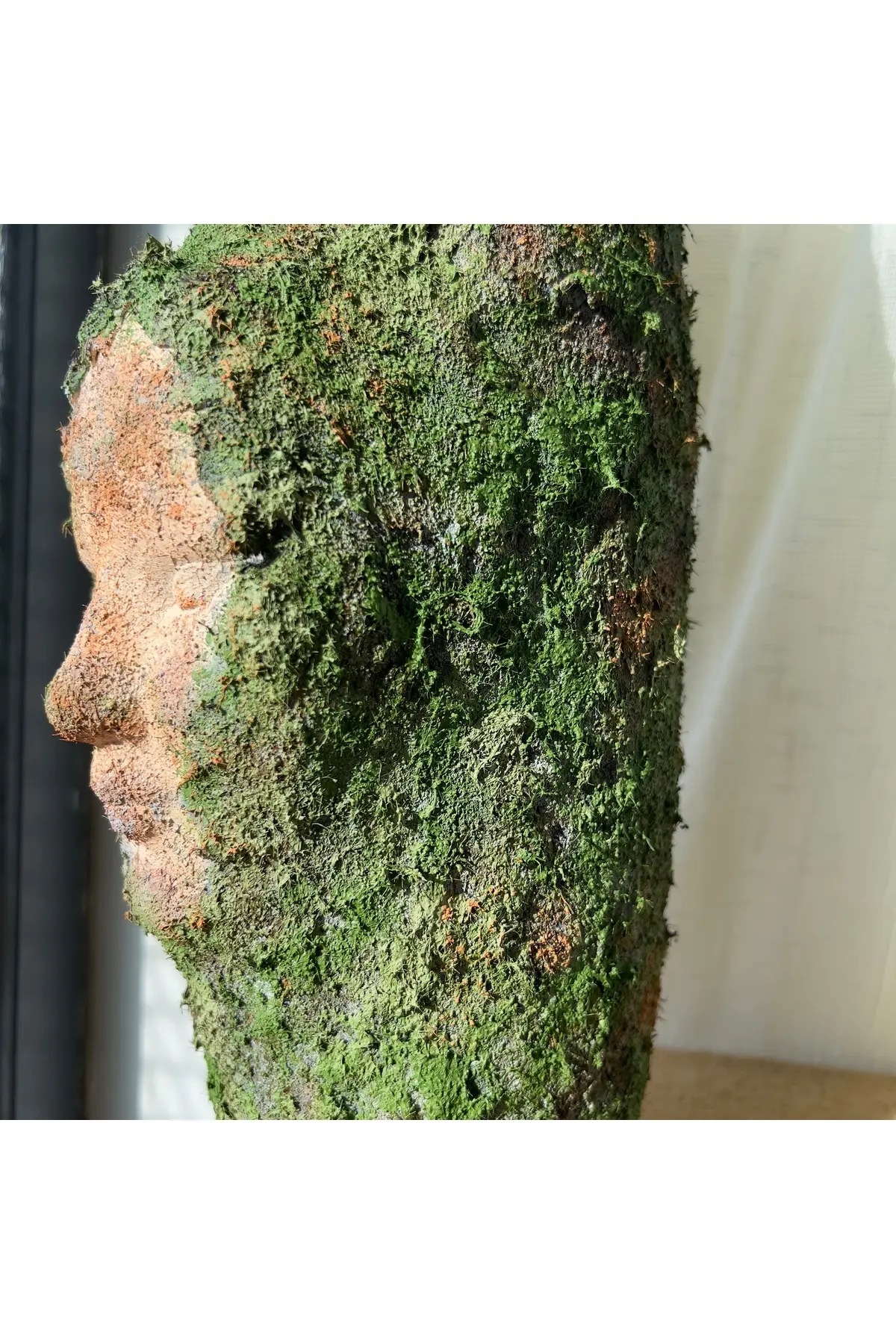 El Yapımı Yosun Detaylı İnsan Yüz Heykeli Dekorlu Özel Tasarım Vazo, Ev Dekoru, Ofis Dekoru