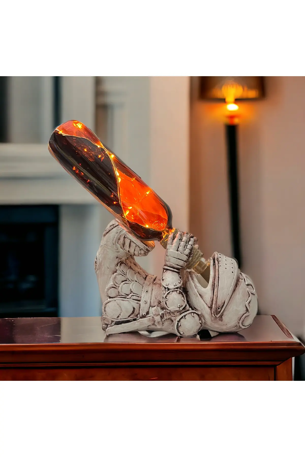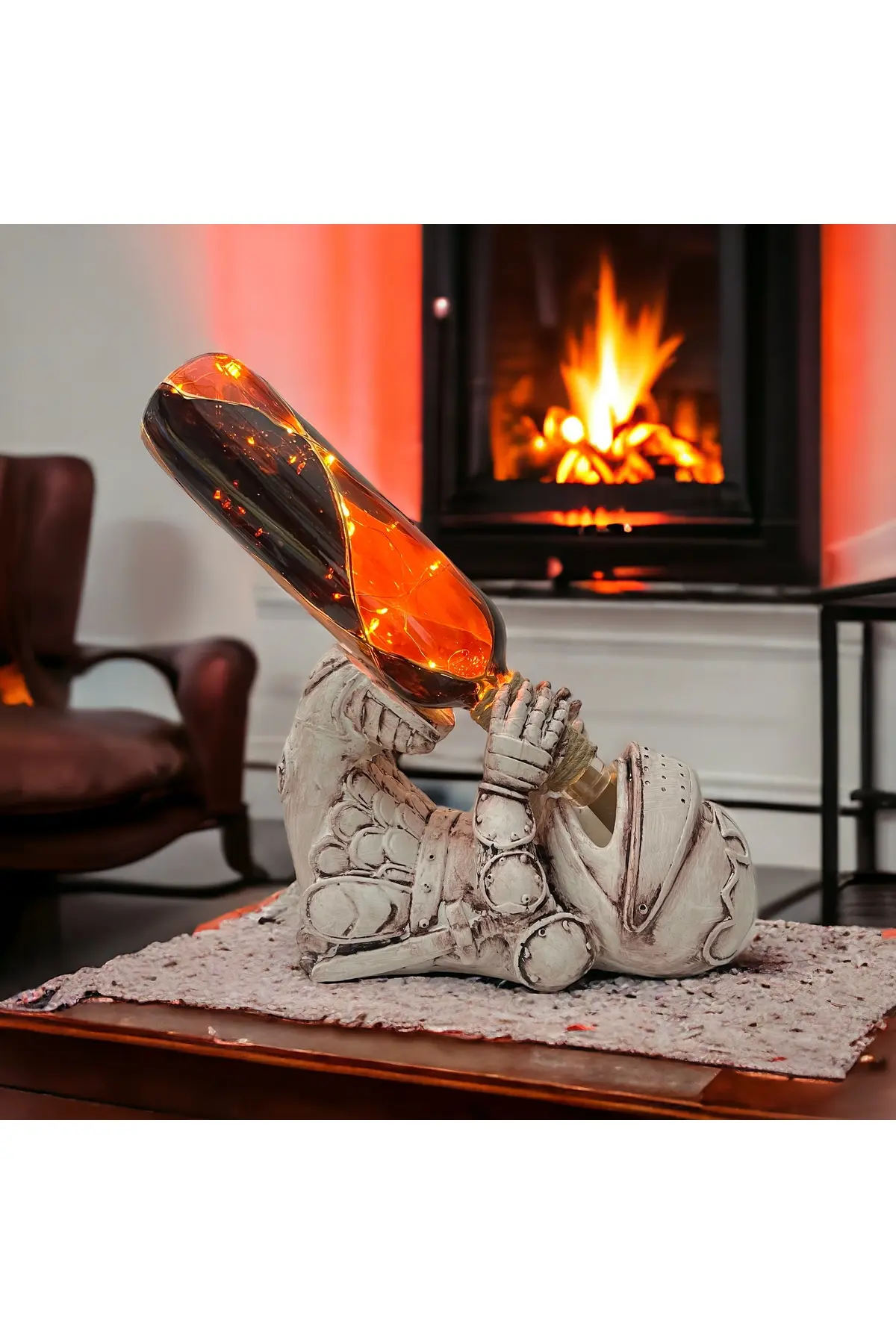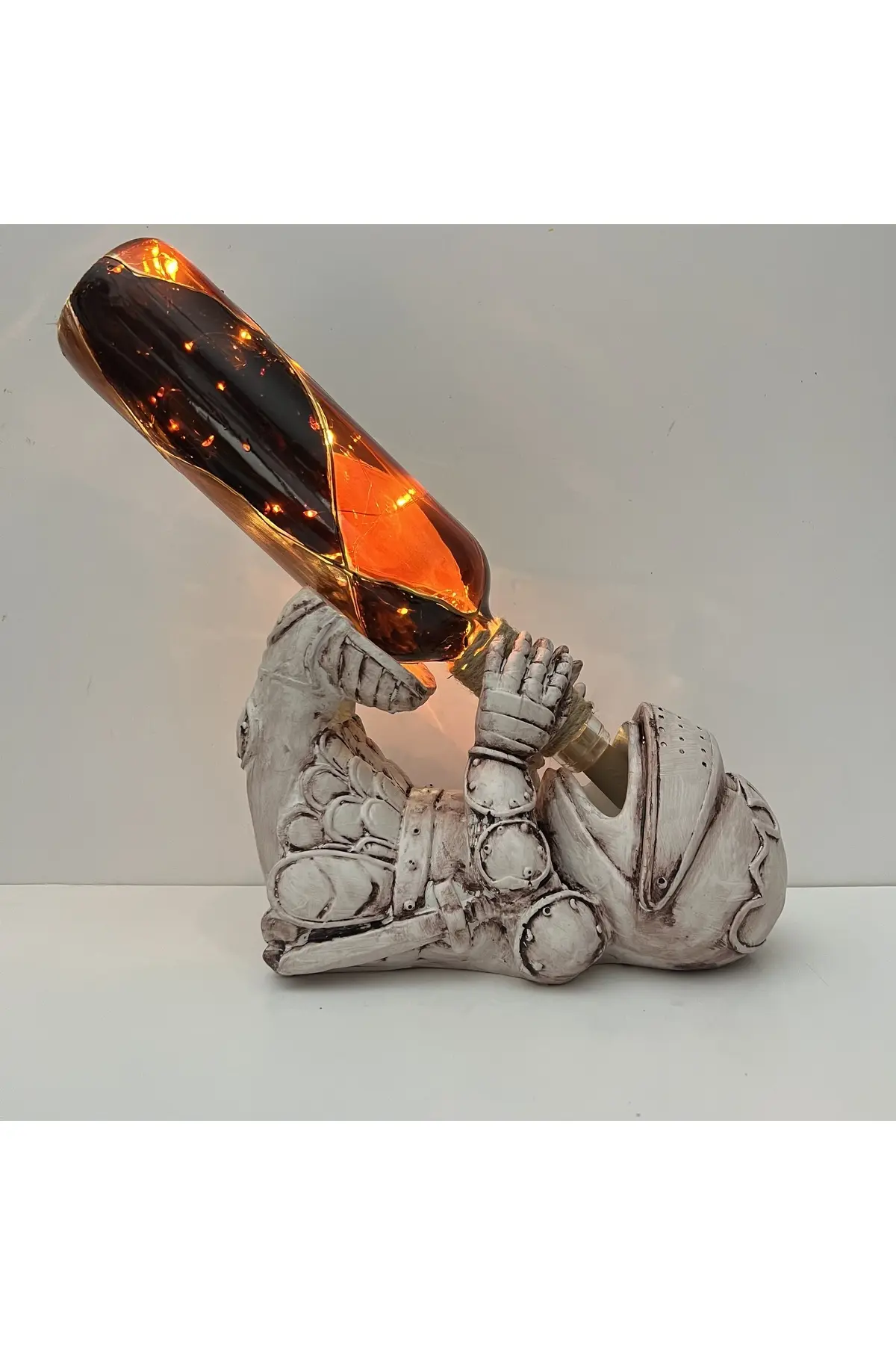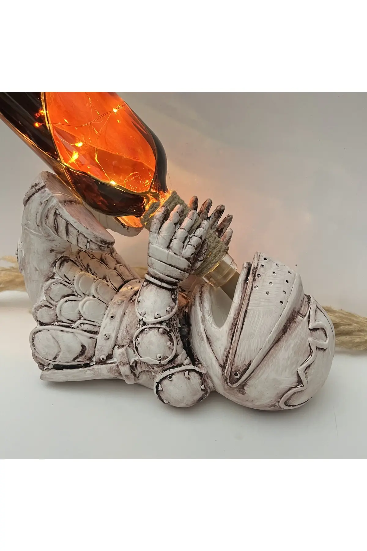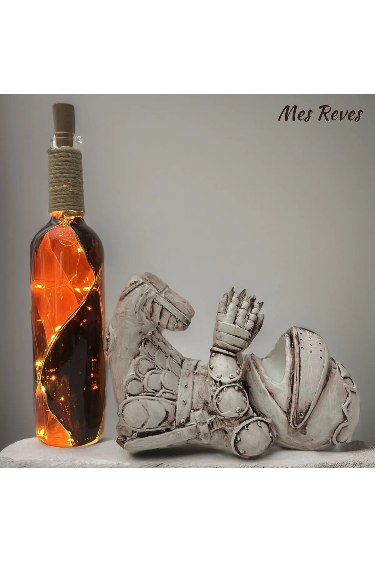 Eskitme Şövalye Figürlü Şarap Şişesi Tutucu Ve Pilli Peri Led Işıklı Vitray Şarap Şişesi Lamba Set