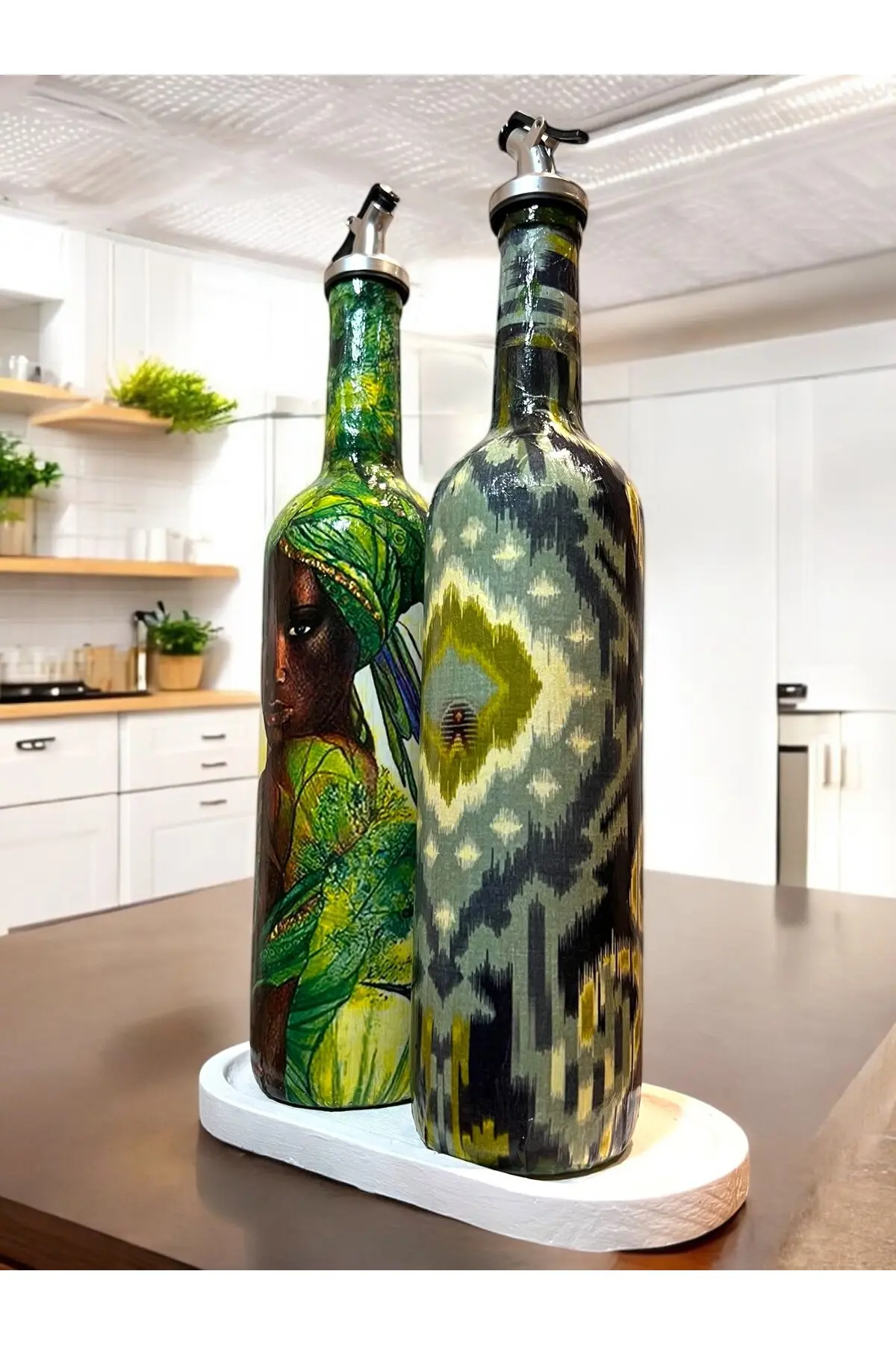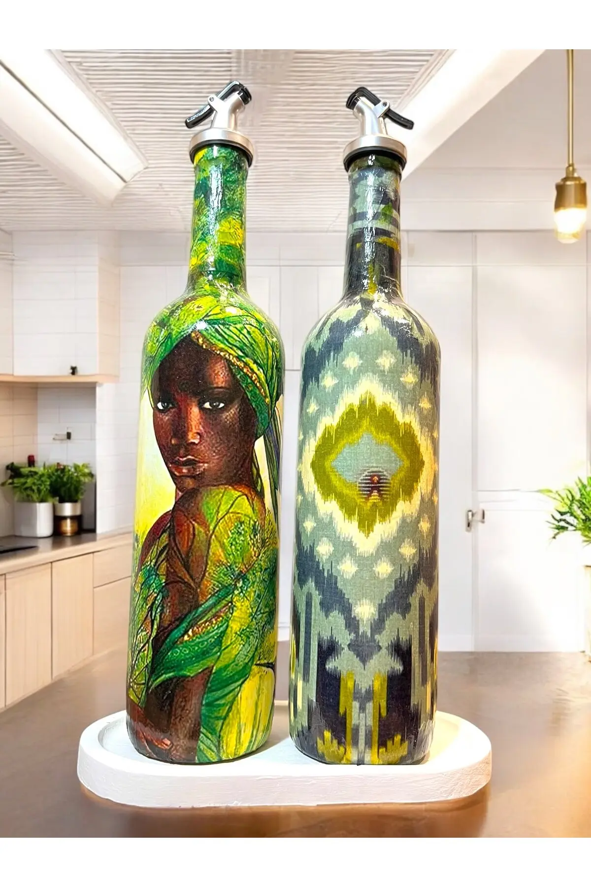 Geleneksel Desenler ve Yerli Kadın Temalı Yağdanlık, Sirkelik ve Sosluk Seti – Vintage Mutfak Dekor