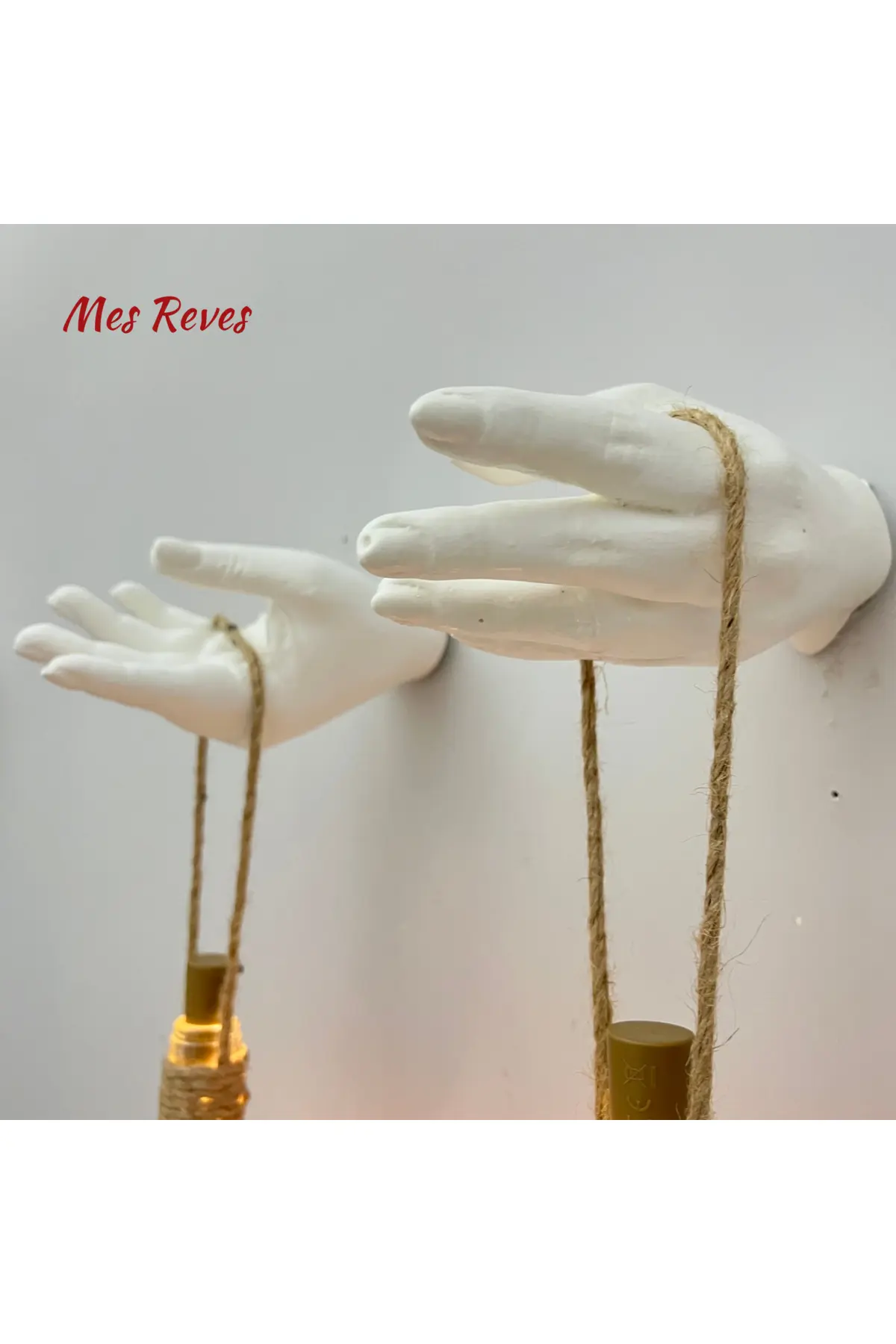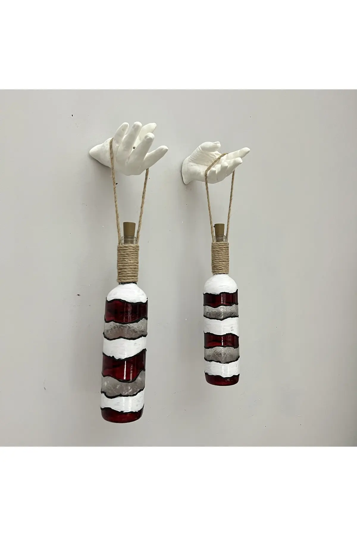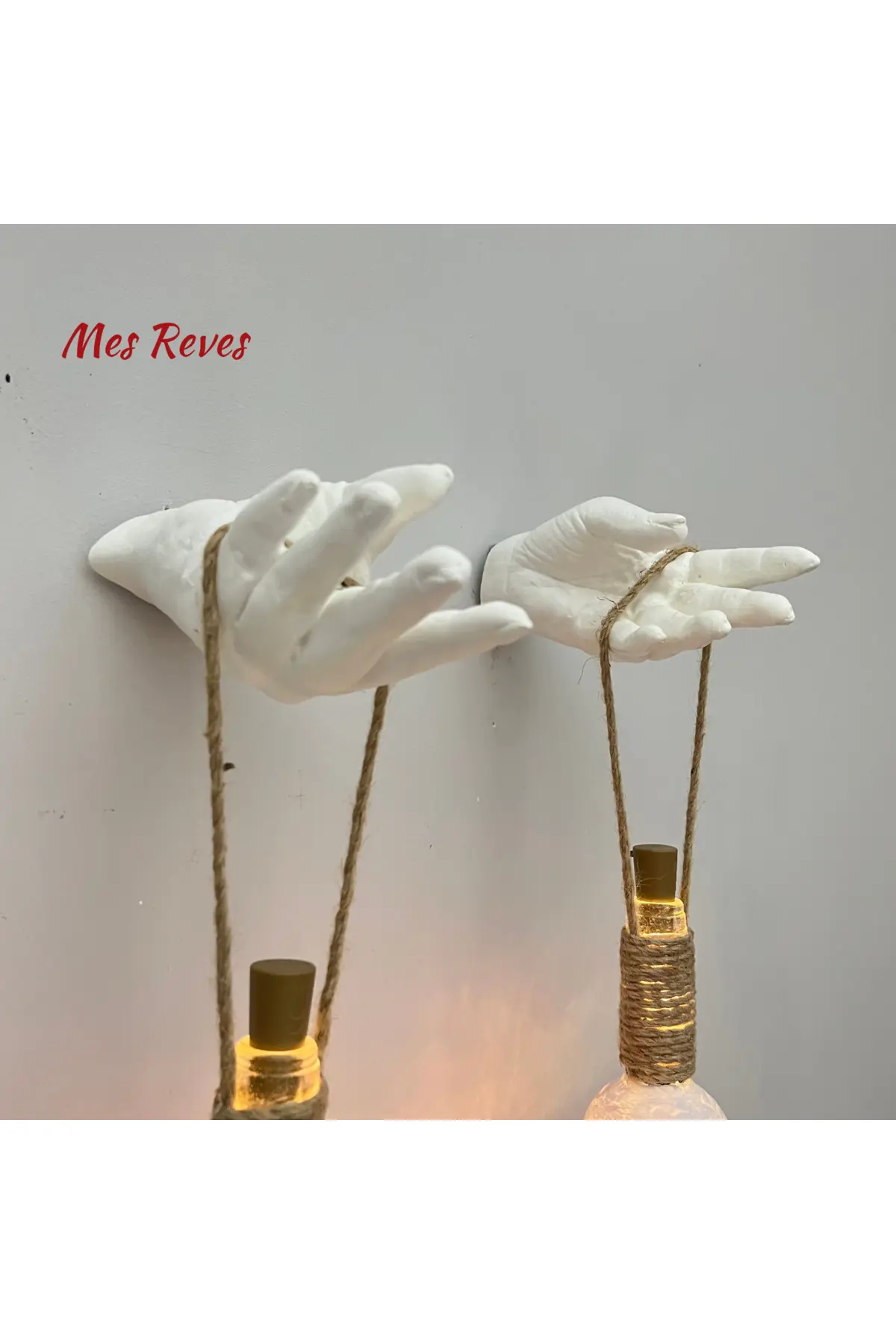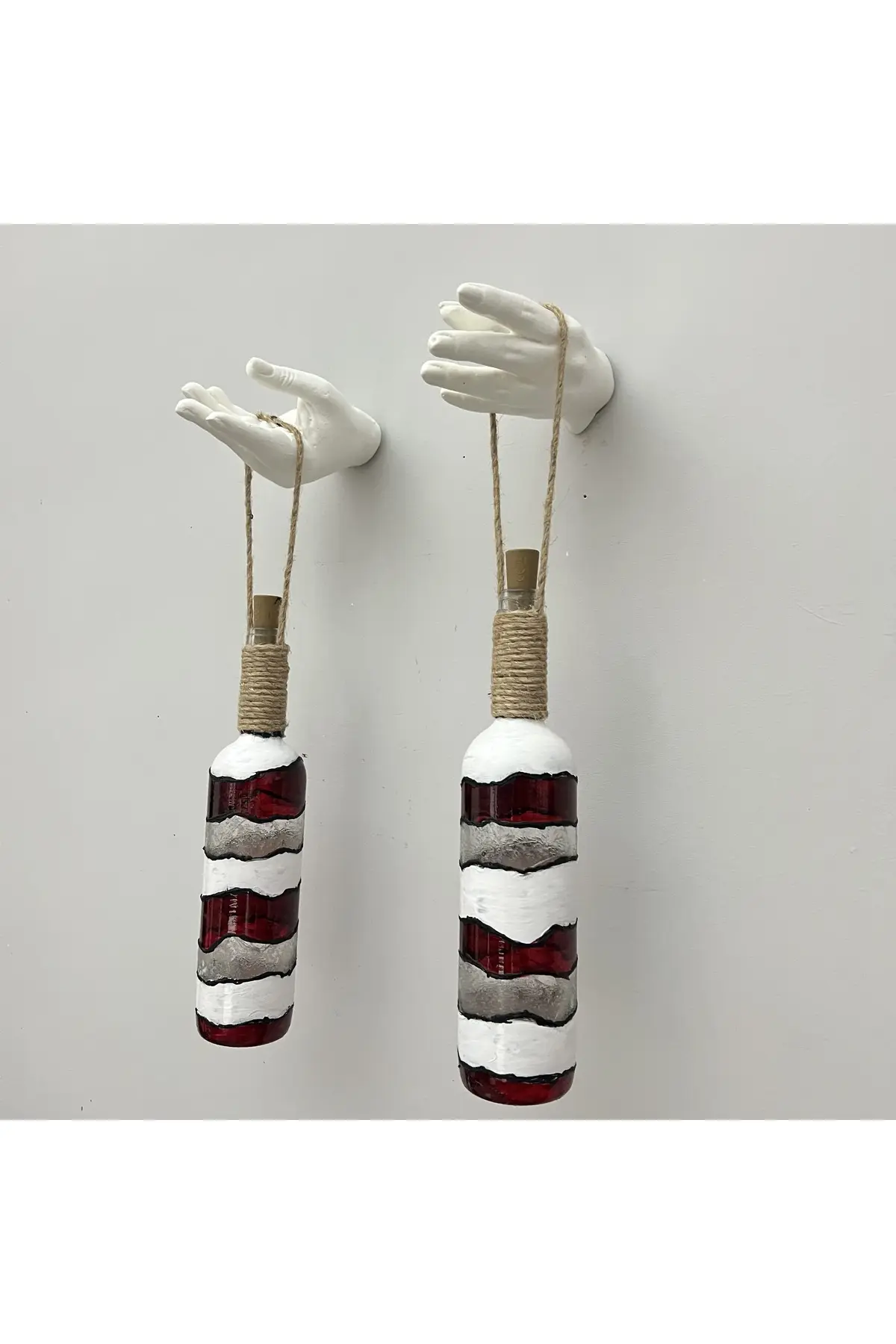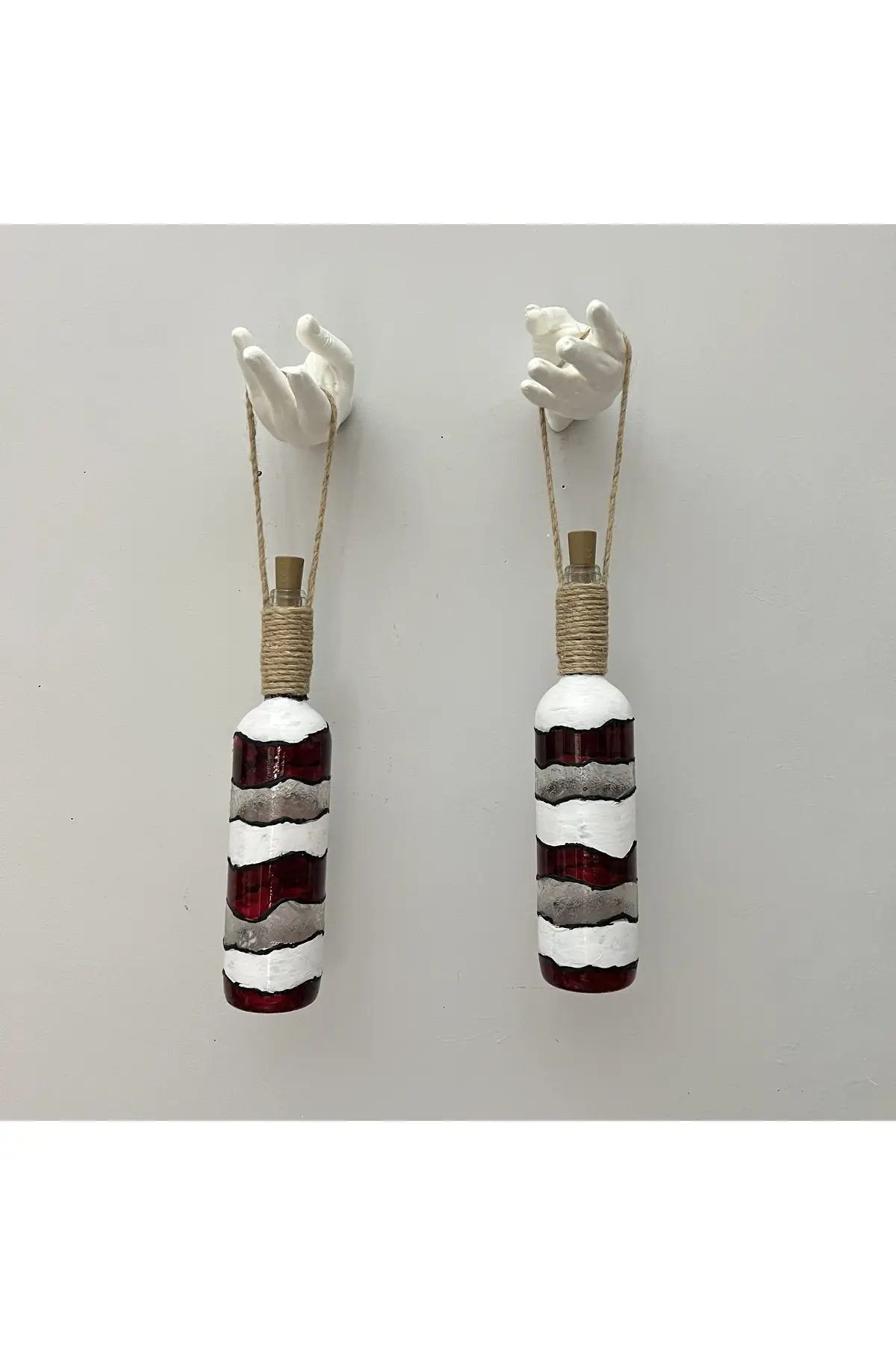 Kadın El Heykeli Dekorlu Peri LED Işıklı Kırmızı Beyaz Vitray Boyama Şampanya Şişesi Aplik 2’li Set
