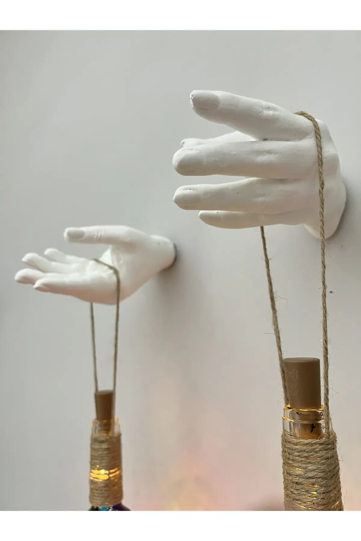 Kadın El Heykeli Led Işıklı Renkli Vitray Cam Şarap Şişesi Aplik Set Cafe, Bar, Bahçe, Ev Dekoru Kadın Heykel eller dizayn edilmiş vitray şarap şişesi apliğimizi sizin için yatıştırıcı ve romantik bir atmosfer yaratmak amacıyla tasarladık. ; El heykel dekorlu Vitray şarap şişesi apliklerimiz yumuşak ve sıcak ışıkla ortamınızı aydınlatırken aynı zamanda dinlendirici bir ambiyans oluşturur. ; Evinizin ve diğer tüm mekanlarınızın duvarlarında şıklığı ve özel tasarımın zarafetini bir araya getiren bu vitray cam şarap şişesi aplik, iç mekanlarınıza sıcaklık ve karakter katmak için mükemmel bir seçenektir. ; Zarif şarap şişesi görünümü, apliğin tasarımını öne çıkarırken, yumuşak aydınlatma ise ortamınıza davetkar bir atmosfer getirir. ; Kadın Eli heykel dekorları ile olan uyum şıklığı ve onları bir araya getiren bu çok özel tasarım, misafirlerinizi etkilemek ve yaşam alanlarınıza özgün bir dokunuş dahil etmek için mükemmel bir fırsattır. ; Evinizde, bahçenizde, cafe, bar ya da ofis dekorasyonunuzda kullanabileceğiniz vitray boyama şarap şişesi apliklerimizin boyutları: Her bir el El: 21×17 cm’dir. ; Eller birebir kadın eli ölçüsündedir. ; Her Bir Şişe ebadı 6cm çap, boy 30cm’dir. ; Ürünün toplam boyu jüt ip askısı ile birlikte 50 cm’dir. ; Ürünün toplam boyu jüt ip askısı ile birlikte 50 cm’dir. ; Gün ışığı Tıpa led aydınlatmalar PİLLE çalışmaktadır. ; Ham el dekorları tamamen el imalatıdır. ; Cam Şarap şişeleri özel olarak vitray deseni verilerek boyanmıştır. ; Arkasında özel montaj duvar askı aparatı mevcuttur. ; Ayrıca ürünümüz, doğum günü, ev hediyesi, yeni yıl hediyesi olarak da kullanılabilir. ; Ürün hassas paketleme sistemimizle hiç zarar görmeden siz ulaştırılır.;