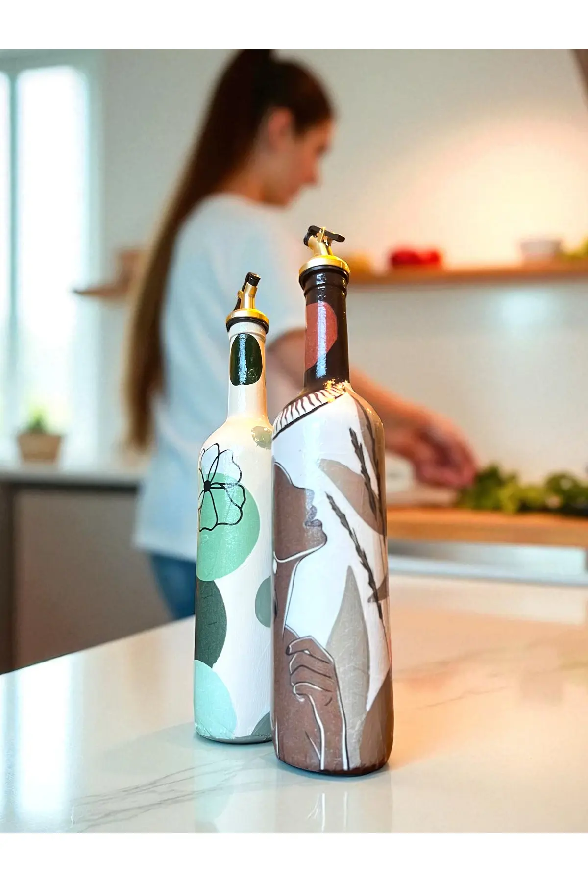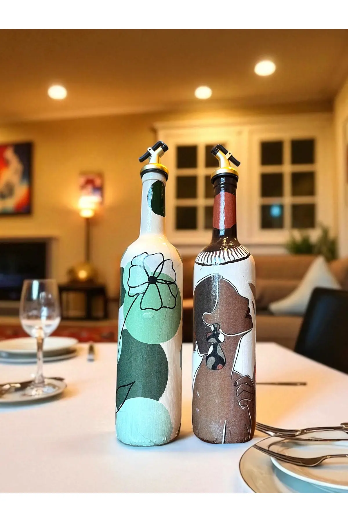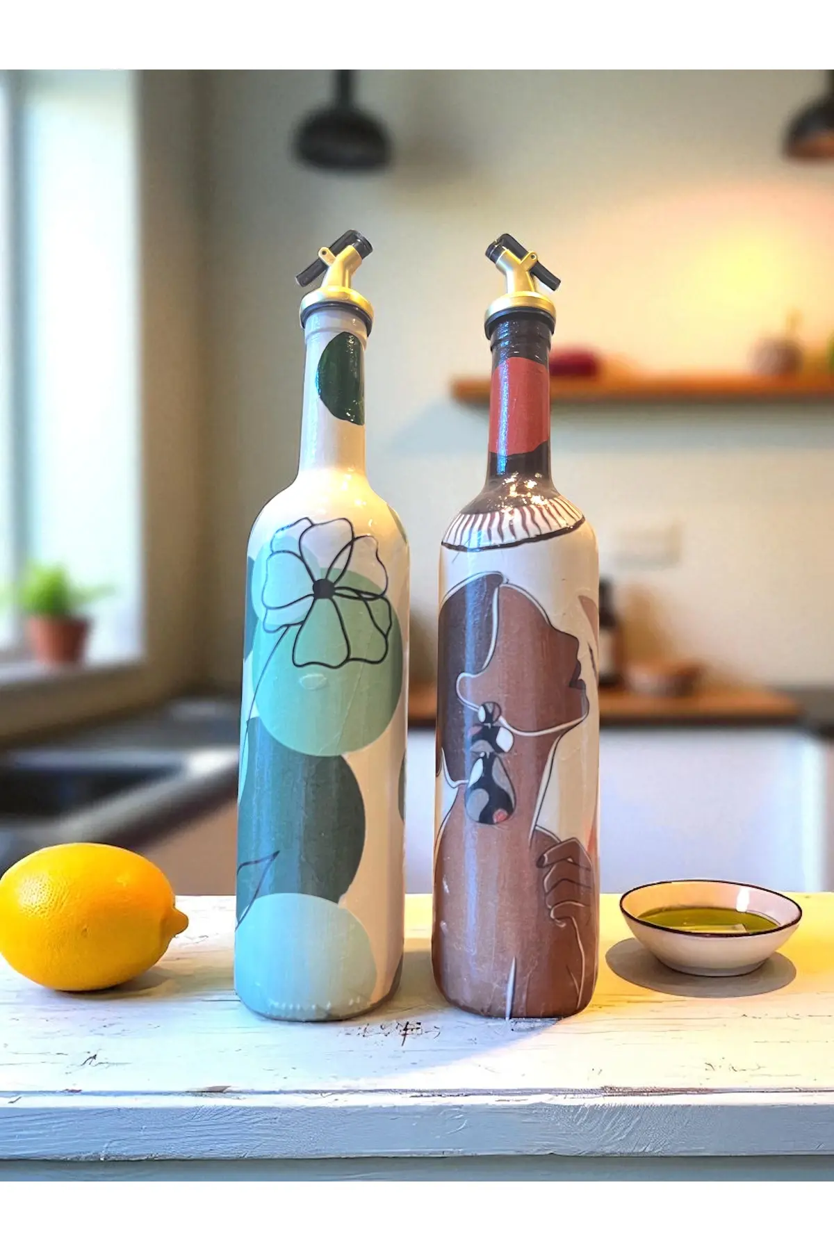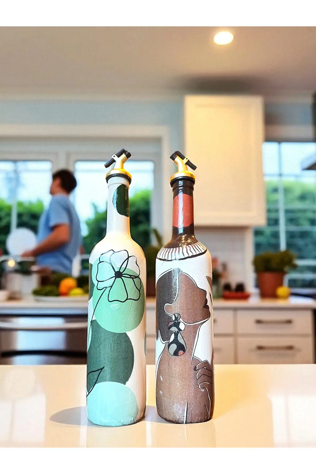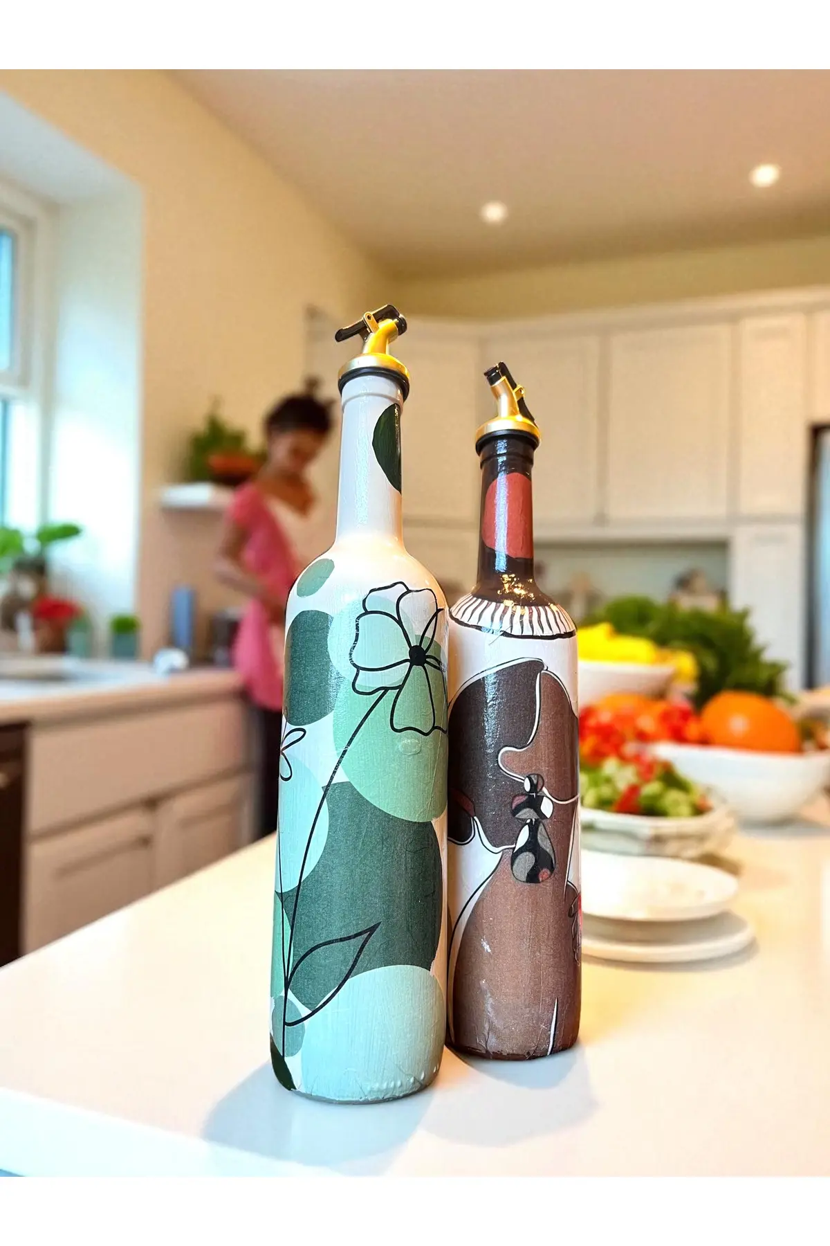 Yerli Kadınlardan Esinlenilmiş Yağ Şişesi Seti, Baharatlık ve Sirkelik: Sanat ve İşlevselliğin Mükemmel Uyumu Bu benzersiz yağ şişesi seti, sanat ve işlevsellik arasında muhteşem bir denge sunarak mutfağınızda sanatı canlandırır.; Tüm yerli dünya kadınlarından esinlenen bu tasarım, mutfak gereçlerinizi sanat eserlerine dönüştürerek yağ şişeleri ve baharatlıklar gibi günlük kullanımları keyifli bir deneyime dönüştürür.; Tasarım ve Desen: Dünyanın dört bir yanındaki yerli kadınların canlı renk paletleri, bu yağ şişesi, baharatlık seti ve sirkelik için temel ilham kaynağı olarak hizmet ediyor.; Yerli Dünya Kadınlarının güzelliği, doğa imgeleri ve semboller her parçaya belirgin bir görsel estetik katıyor.; Canlı renkler, hareketli desenler ve karakteristik detaylar, mutfağınızı anında bir sanat galerisini anımsatan bir ambiyansla dolduruyor.; İşlevsellik: Bu set yalnızca görsel zenginlik sunmakla kalmıyor, aynı zamanda mutfakta işlevsellik açısından da mükemmel bir performans sergiliyor.; Yağ akıtıcısı, yemek pişirirken veya salata hazırlarken yağların kolayca dozlanmasını sağlar.; Sirke dağıtıcısı, zeytinyağı veya sirke gibi sıvıları ölçmenizi ve kullanmanızı sağlayarak yemeklerinizi hassas bir lezzet ve aroma ile zenginleştirir.; Yağ şişesi, sosluk ve sirke dağıtıcısı, çeşitli sosları sunmak ve yemek masanıza zarif bir dokunuş katmak için mükemmeldir.; Ürün Özellikleri: 2 parçalı bir set olarak sunulur.; Her şişenin kapasitesi 750 ml’dir.; Dayanıklı ve sağlam cam malzemeden yapılmıştır.; Sızdırmaz krom yağ damlatıcı kapaklar yağların tazeliğini korur.; Dökme tasarımı kolay dağıtım sağlar.; Şık bir sunum seçeneği sunan sunum standı ile birlikte gelir.; Mutfakta ve yemek masasında kullanıma uygundur.; Kendiniz için veya sevdiklerinize yeni ev hediyesi, düğün hediyesi olarak düşünebileceğiniz modern bir seçenek.; Kullanım ve Bakım Talimatları: Her el yapımı üründe olduğu gibi bu ürünü de elde yıkamanız tavsiye edilir.; Bulaşık makinesinde yıkanması, el boyamasının zarar görmesine neden olabilir.; Sert temizlik malzemeleri kullanmaktan kaçının.; Yumuşak bir sünger ve hafif bir deterjan ile temizlemeniz yeterli olacaktır.