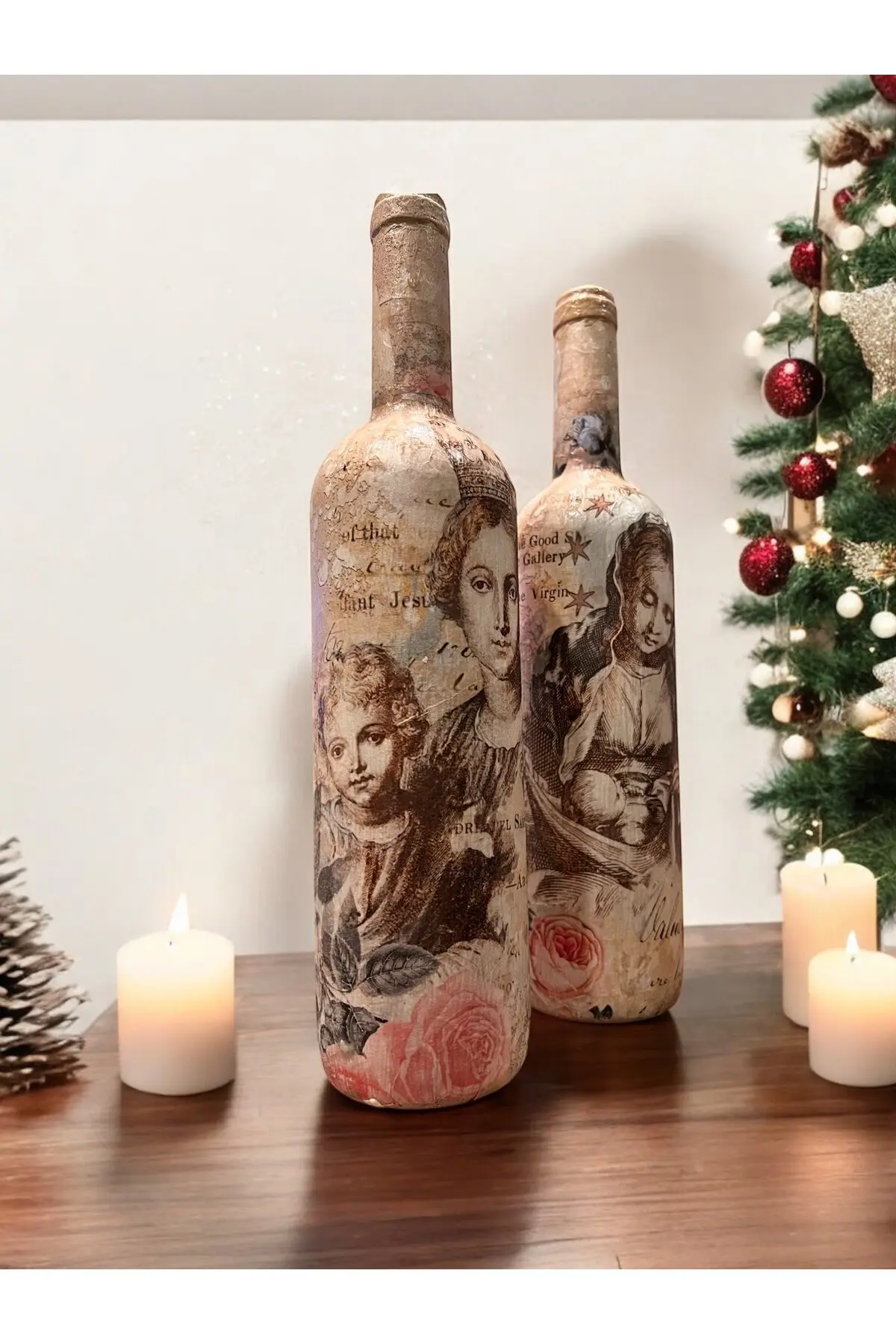 Meryem Ana ve İsa Figürlü El Yapımı Dekoratif Şarap Şişeleri, Ev Dekoru, Ev Aksesuarları, Noel ve y