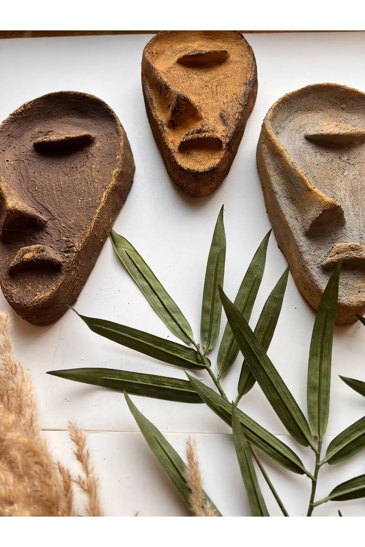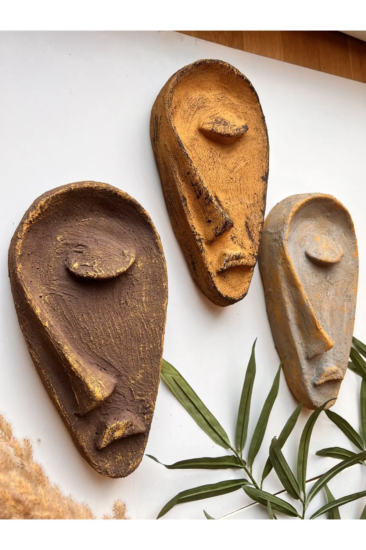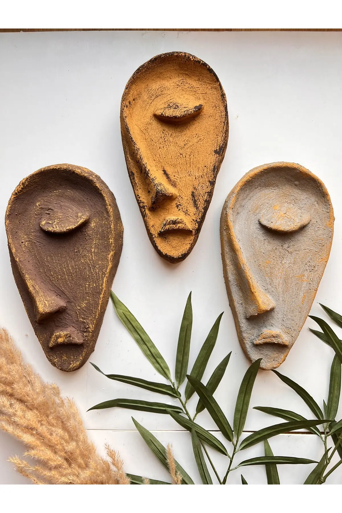 Özel Tasarım El Yapımı Dokulu Heykel Soyut Yarım Yüz Maske Set, Duvar Dekor, Yılbaşı, Noel Hediyesi