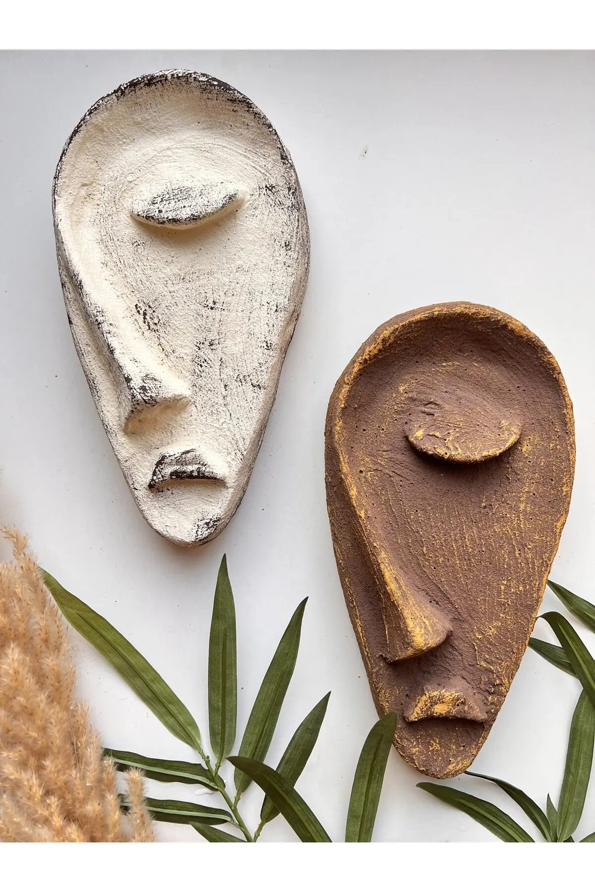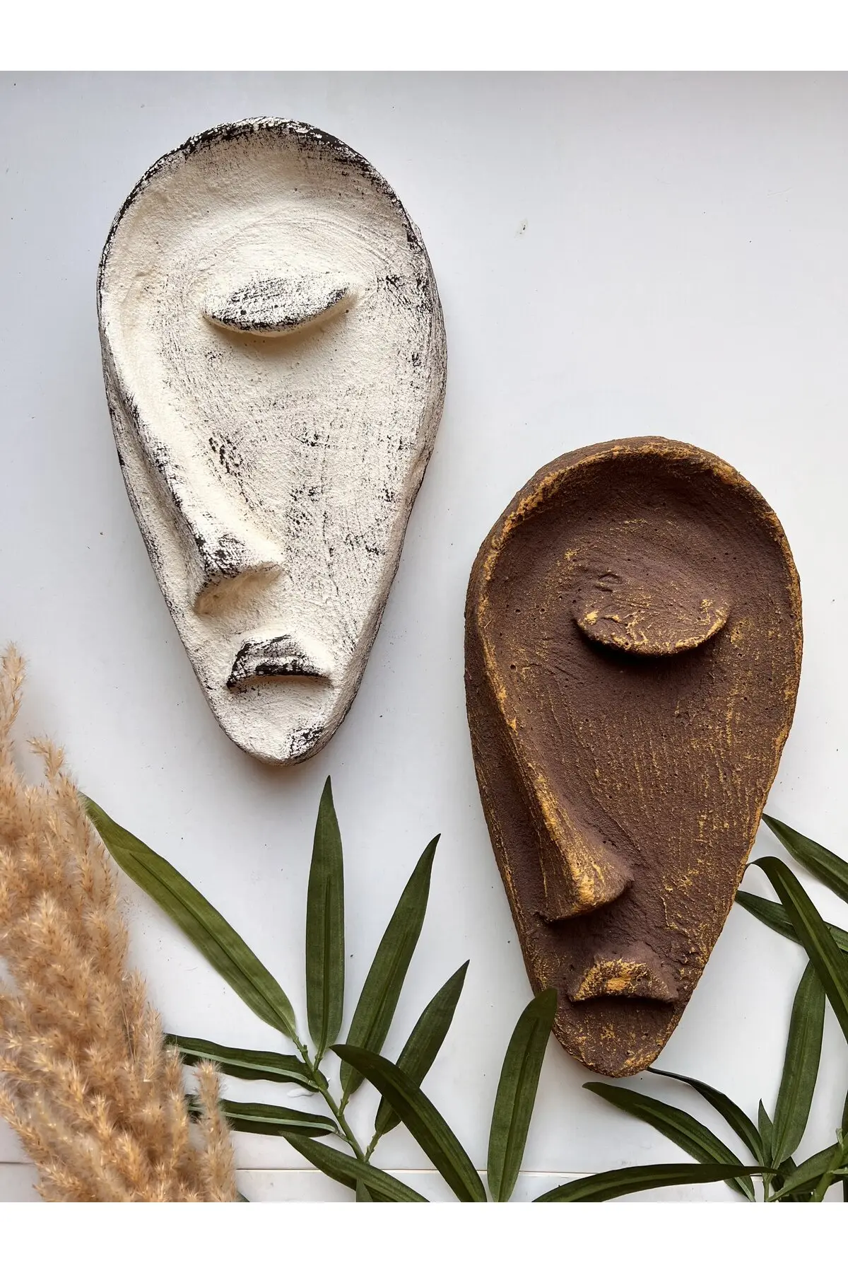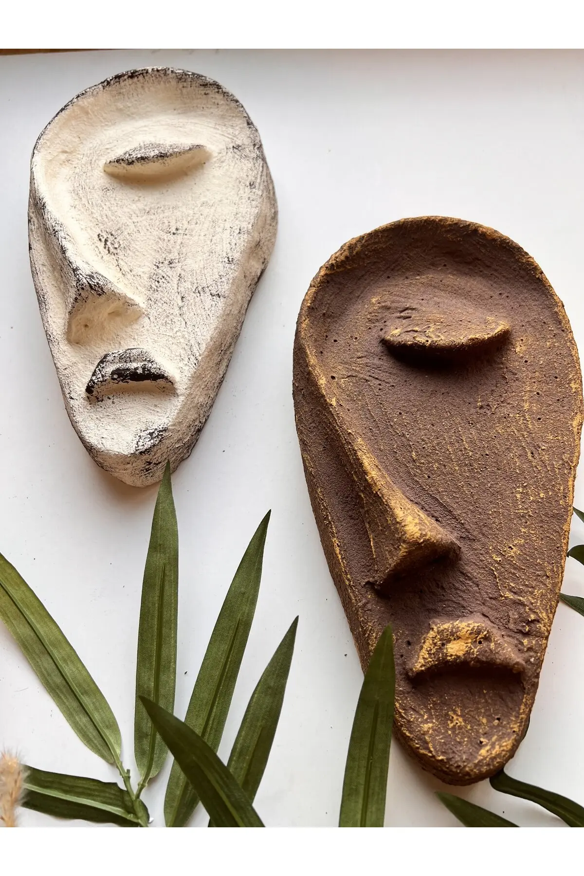 Özel Tasarım El Yapımı Heykel Soyut Yarım Yüz Maske 2’li Set, Duvar Dekor, Modern Ev ve Ofis Dekoru