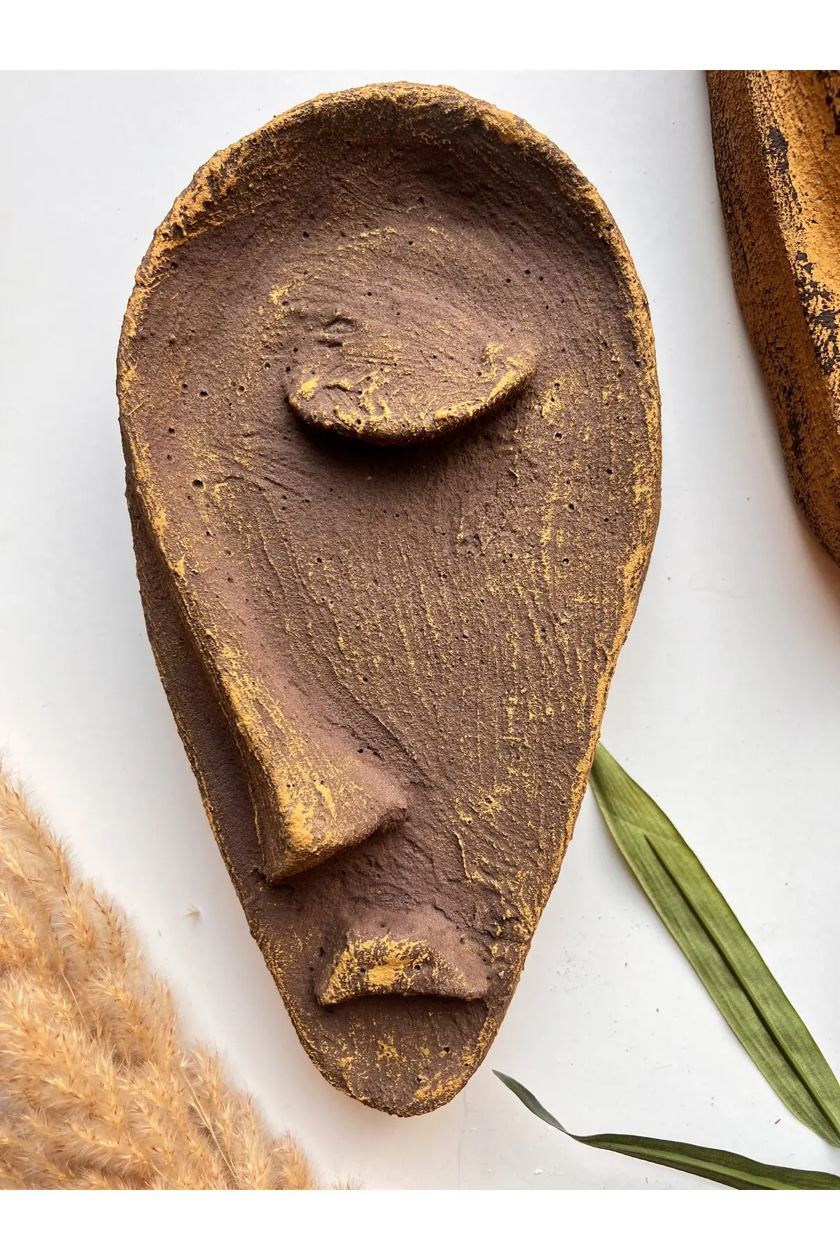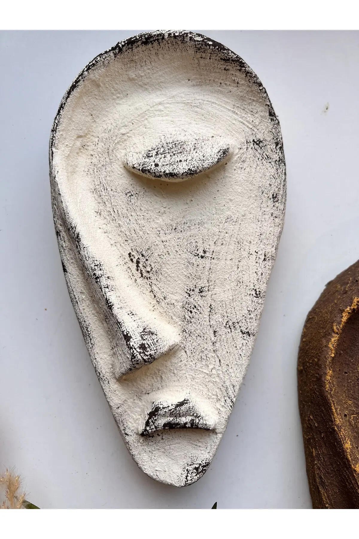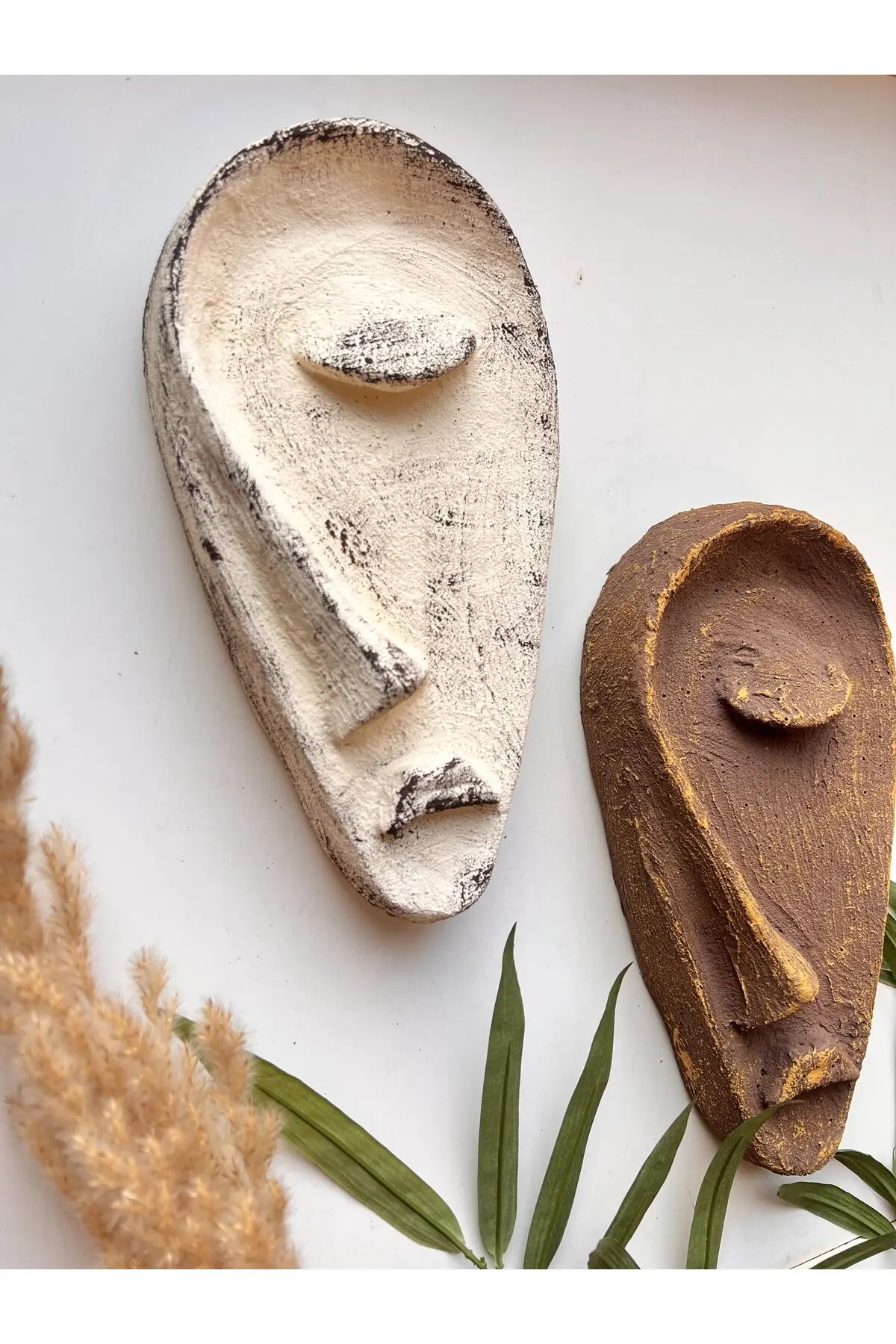 Özel Tasarım El Yapımı Heykel Soyut Yarım Yüz Maske 2’li Set, Duvar Dekor, Modern Ev ve Ofis Dekoru