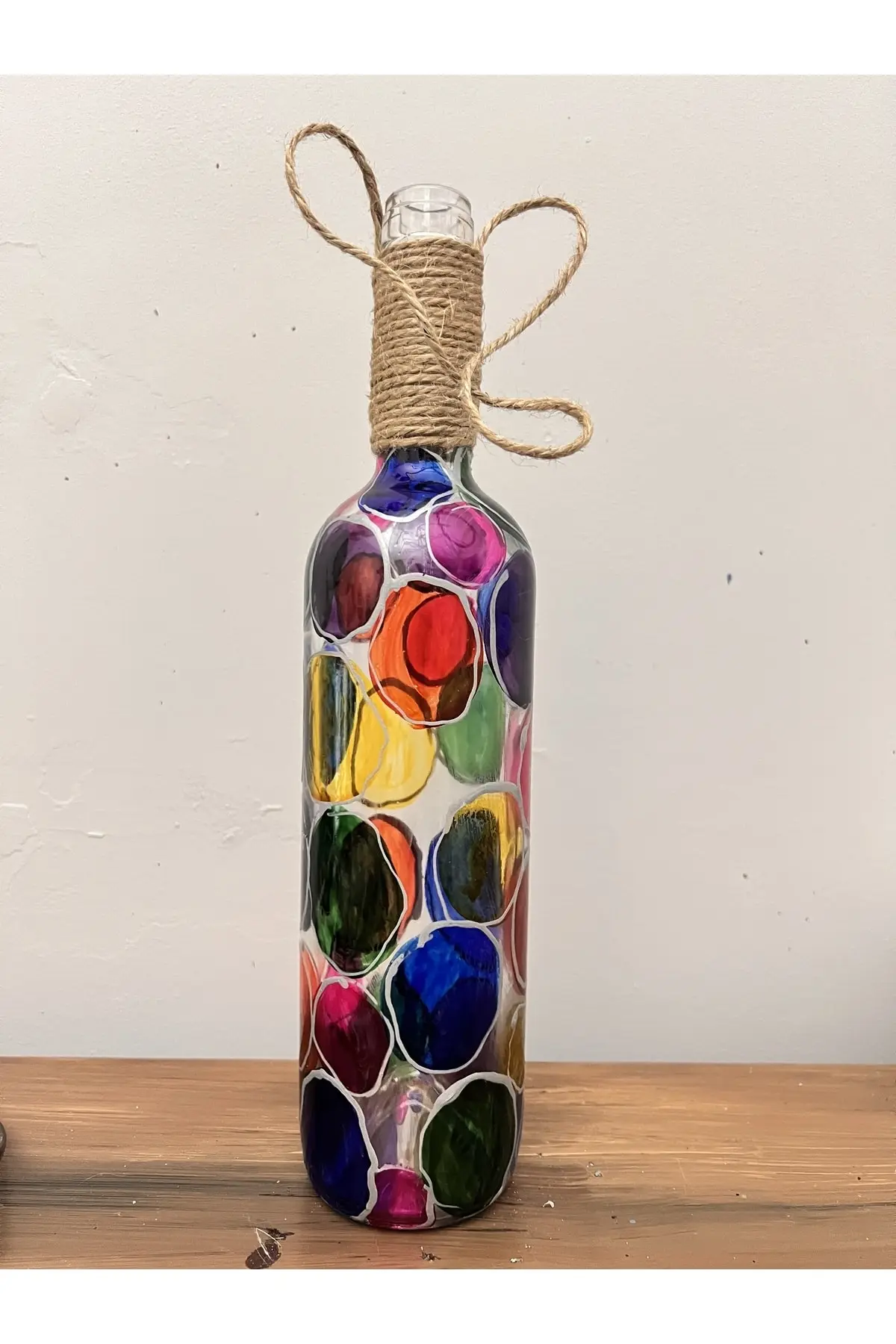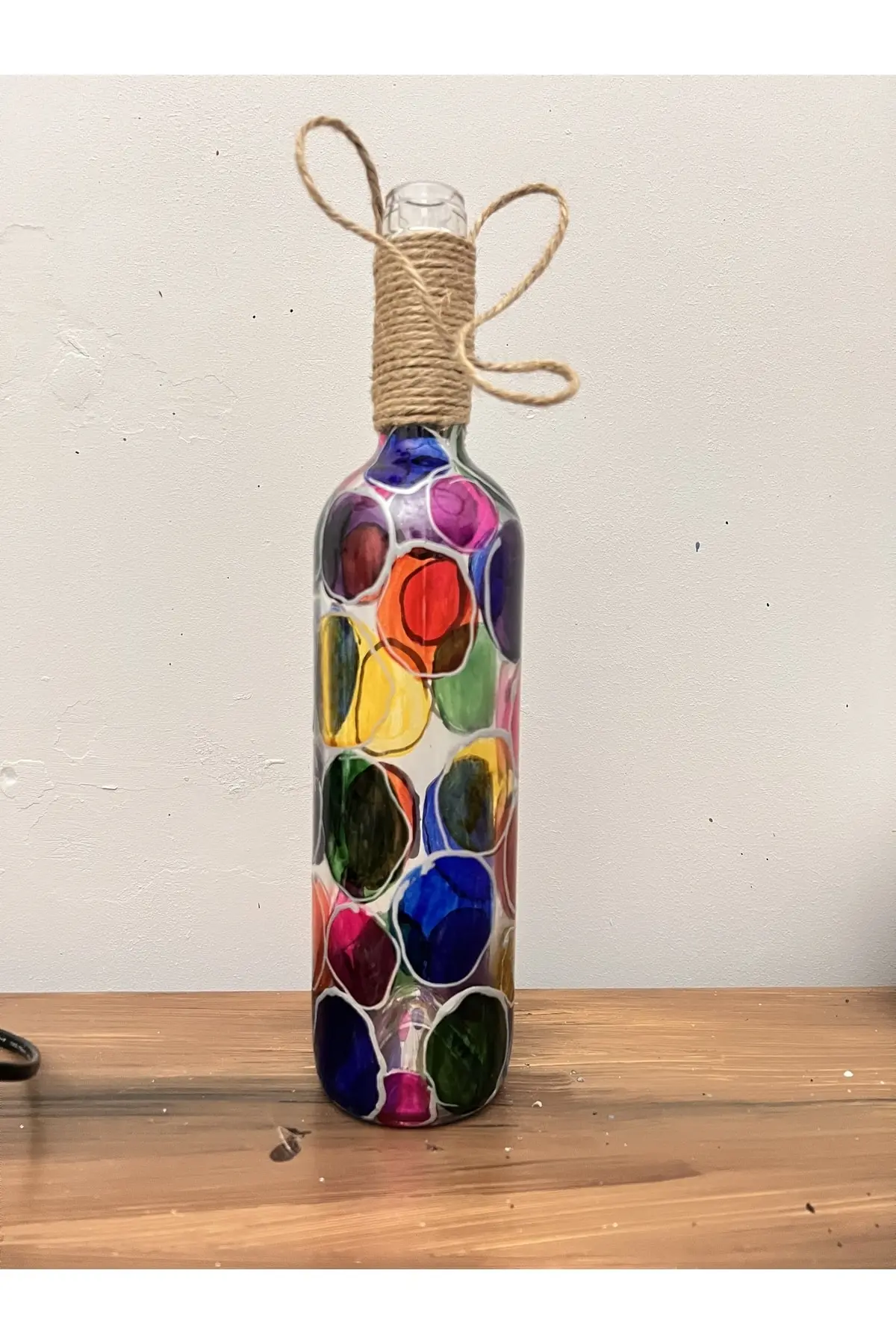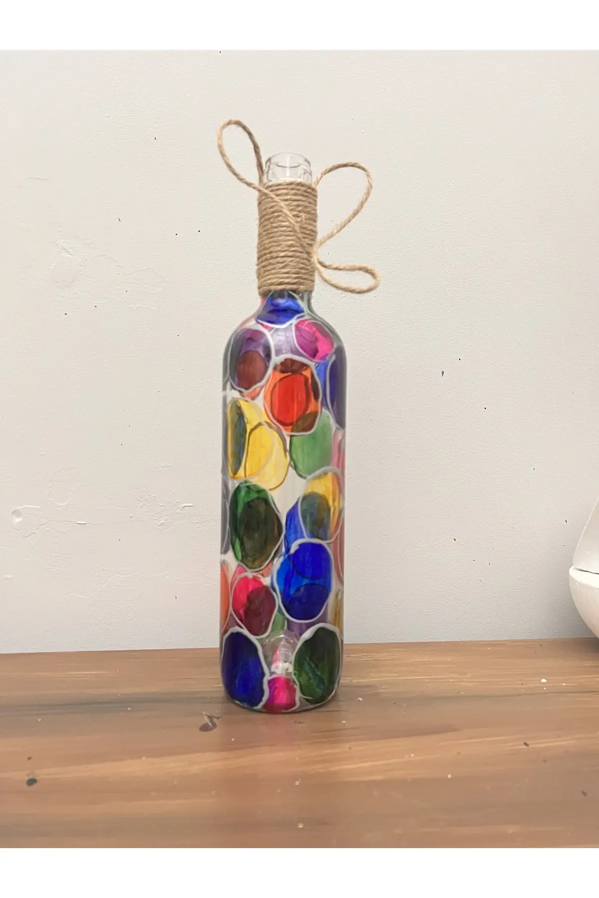 Renkli Vitray Cam Salon Bar Bahçe Dekoru Şarap Şişesi