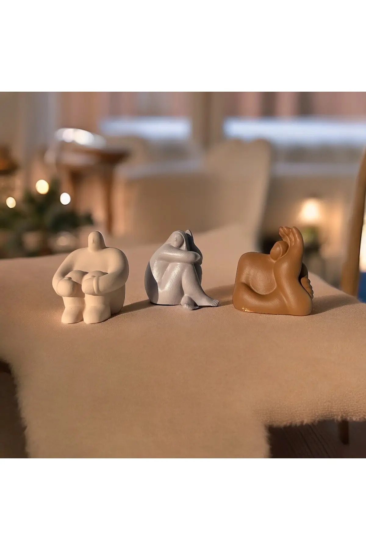 Soyut Düşünen Insan 3’lü Set, Ev Dekorasyonu, Masa Süslemesi Heykel Seti Biblo, Oda Dekorasyonu