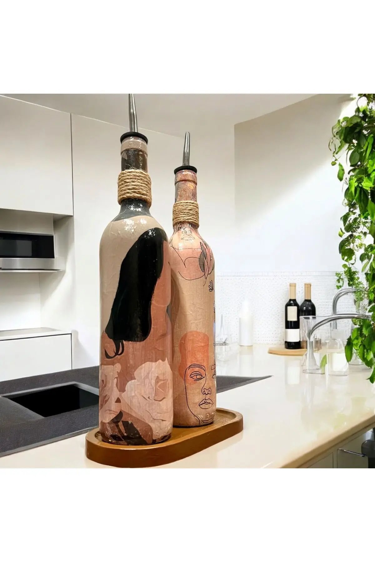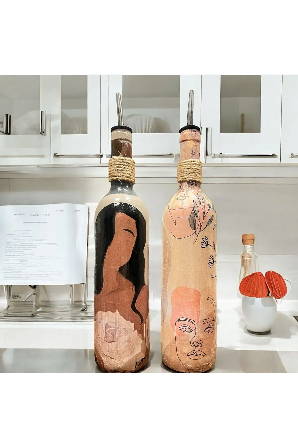 Bohem çizimler ve Kadınlardan Esinlenilmiş Yağ Şişesi Seti, Baharatlık ve Sirkelik: Sanat ve İşlevselliğin Mükemmel Uyumu Bu benzersiz yağ şişesi seti, sanat ve işlevsellik arasında muhteşem bir denge sunarak mutfağınızda sanatı canlandırır.; Bohem çizgilerden esinlenen bu tasarım, mutfak gereçlerinizi sanat eserlerine dönüştürerek yağ şişeleri ve baharatlıklar gibi günlük kullanımları keyifli bir deneyime dönüştürür.; Tasarım ve Desen: Bohem desen ve kadınların canlı renk paletleri, bu yağ şişesi, baharatlık seti ve sirkelik için temel ilham kaynağı olarak hizmet ediyor.; Yerli Dünya Kadınlarının güzelliği, doğa imgeleri ve semboller her parçaya belirgin bir görsel estetik katıyor.; Canlı renkler, hareketli desenler ve karakteristik detaylar, mutfağınızı anında bir sanat galerisini anımsatan bir ambiyansla dolduruyor.; İşlevsellik: Bu set yalnızca görsel zenginlik sunmakla kalmıyor, aynı zamanda mutfakta işlevsellik açısından da mükemmel bir performans sergiliyor.; Yağ akıtıcısı, yemek pişirirken veya salata hazırlarken yağların kolayca dozlanmasını sağlar.; Sirke dağıtıcısı, zeytinyağı veya sirke gibi sıvıları ölçmenizi ve kullanmanızı sağlayarak yemeklerinizi hassas bir lezzet ve aroma ile zenginleştirir.; Yağ şişesi, sosluk ve sirke dağıtıcısı, çeşitli sosları sunmak ve yemek masanıza zarif bir dokunuş katmak için mükemmeldir.; Ürün Özellikleri: 2 parçalı bir set olarak sunulur.; Her şişenin kapasitesi 750 ml’dir.; Dayanıklı ve sağlam cam malzemeden yapılmıştır.; Sızdırmaz krom yağ damlatıcı kapaklar yağların tazeliğini korur.; Dökme tasarımı kolay dağıtım sağlar.; Şık bir sunum seçeneği sunan sunum standı ile birlikte gelir.; Mutfakta ve yemek masasında kullanıma uygundur.; Kendiniz için veya sevdiklerinize yeni ev hediyesi, düğün hediyesi olarak düşünebileceğiniz modern bir seçenek.; Kullanım ve Bakım Talimatları: Her el yapımı üründe olduğu gibi bu ürünü de elde yıkamanız tavsiye edilir.; Bulaşık makinesinde yıkanması, el boyamasının zarar görmesine neden olabilir.; Sert temizlik malzemeleri kullanmaktan kaçının.; Yumuşak bir sünger ve hafif bir deterjan ile temizlemeniz yeterli olacaktır.;