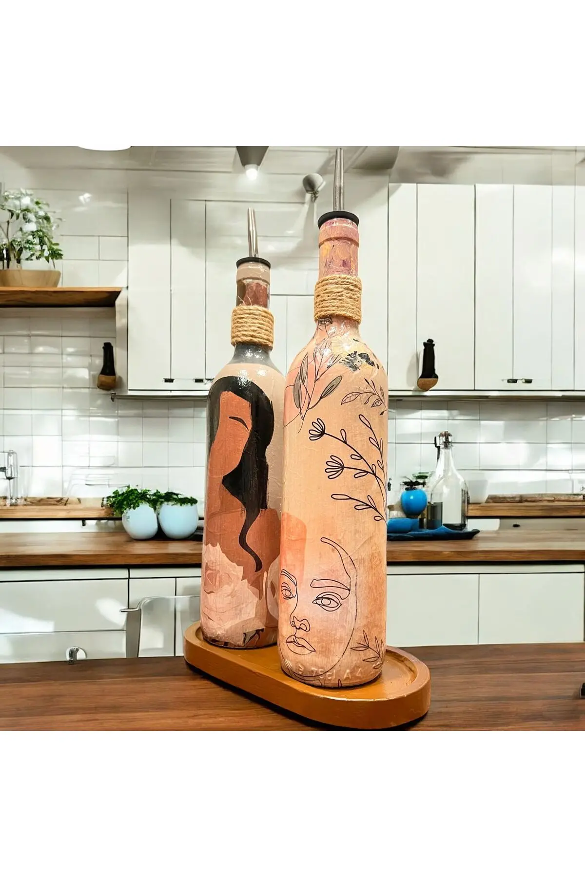 Soyut Kadın ve Bohem Desenli Özel Tasarım Yağdanlık-Sirkelik Sosluk Seti- Ev ve Mutfak Dekoru
