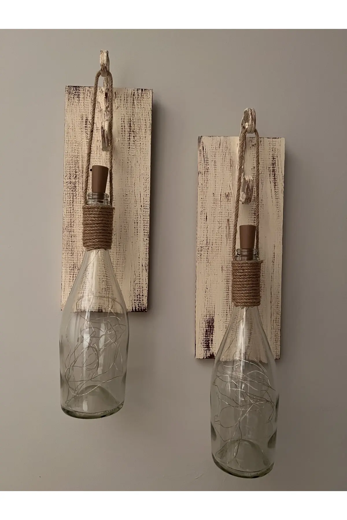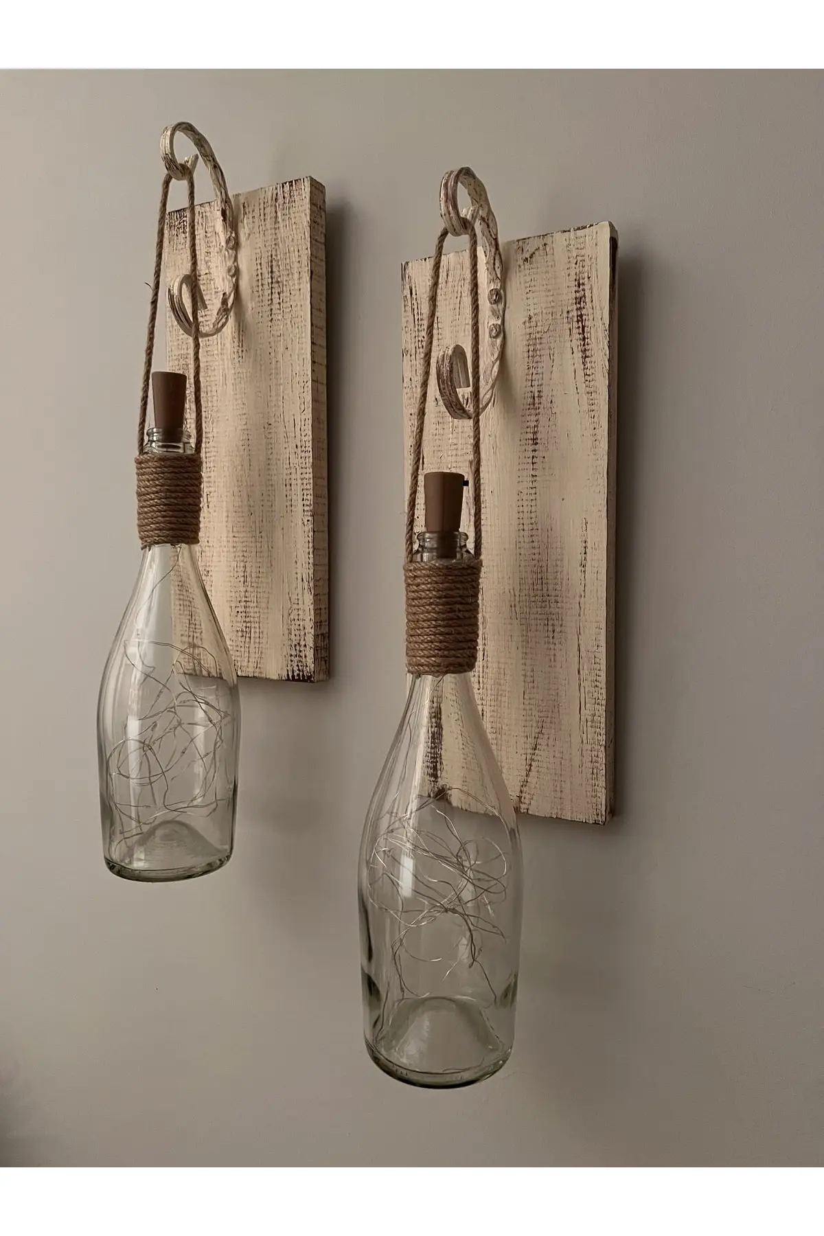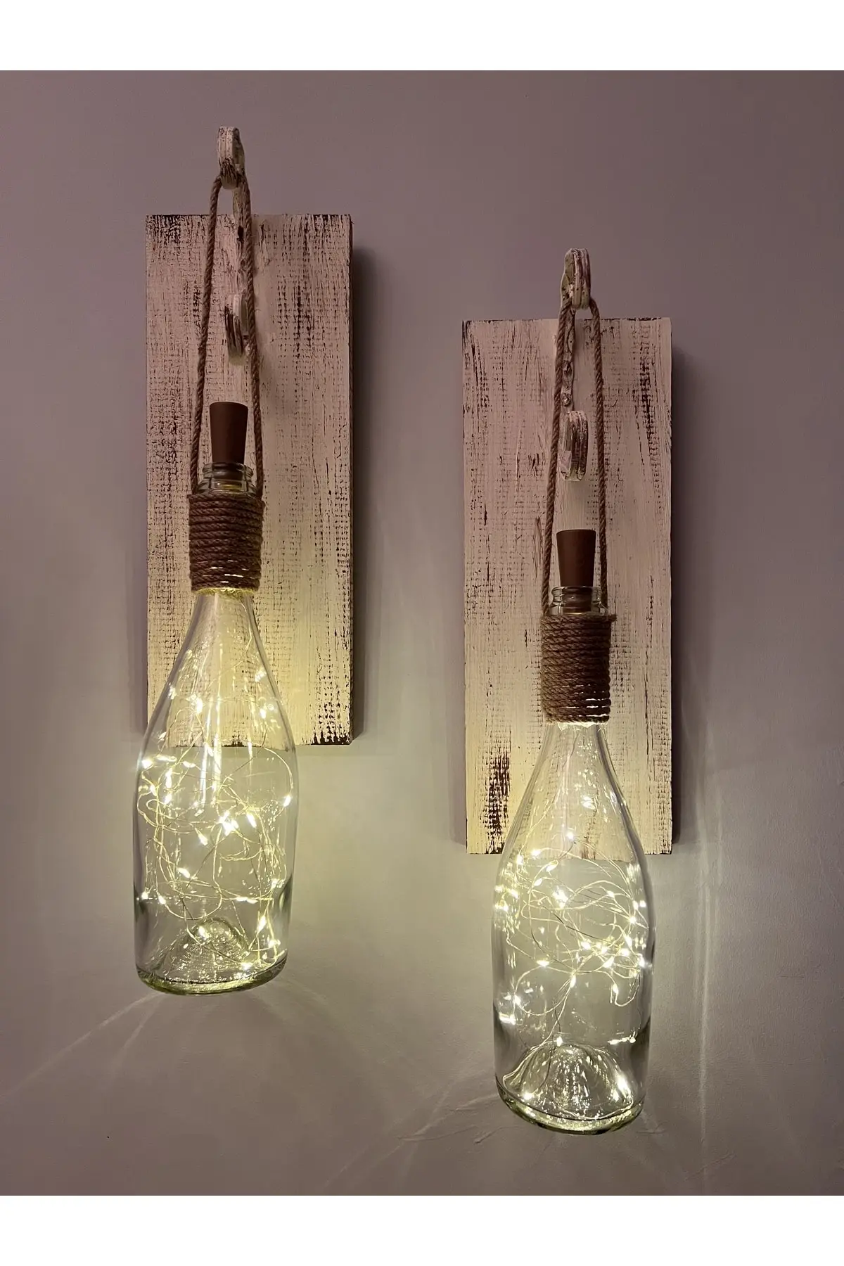 Tıpa Peri Led Işıklı Krem Kahve Cam Şampanya Şişesi Duvar Aplik 2’li Set