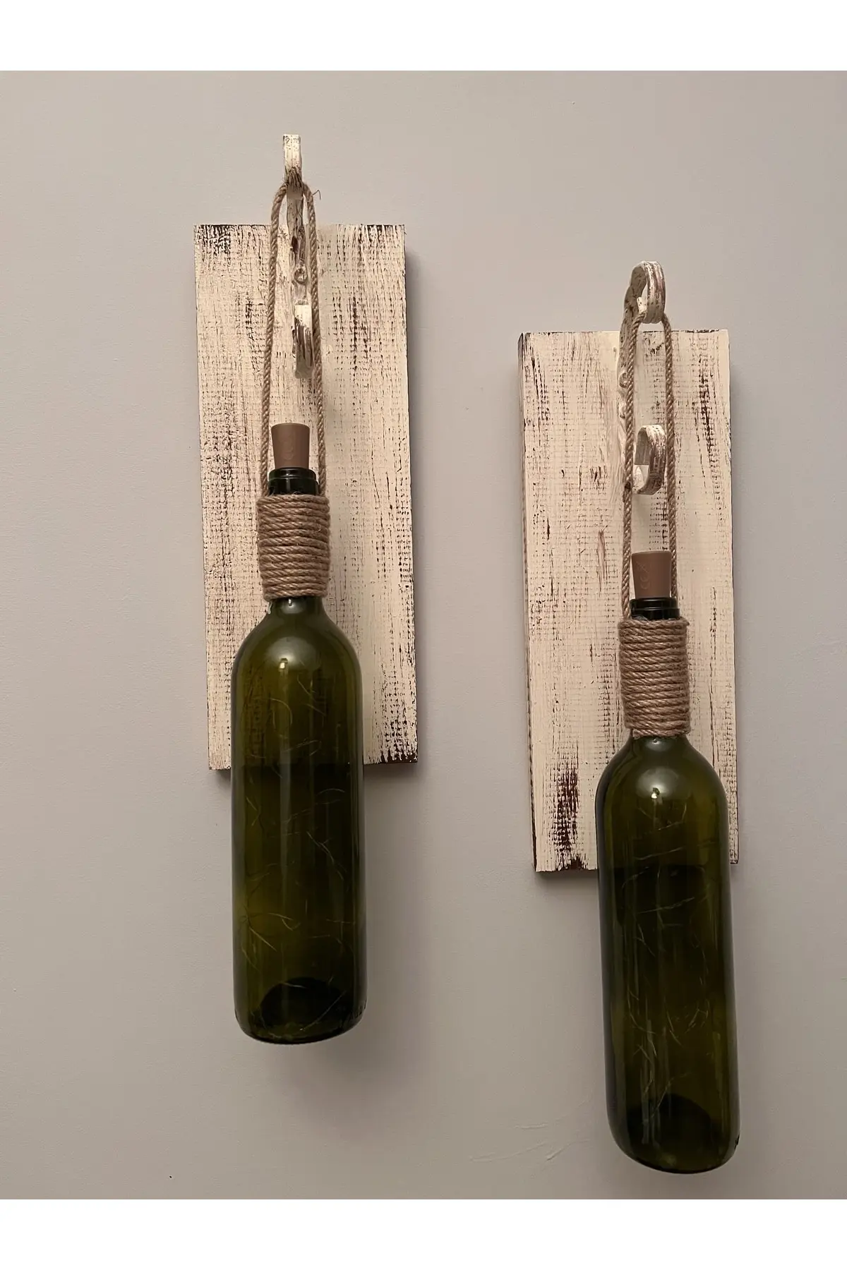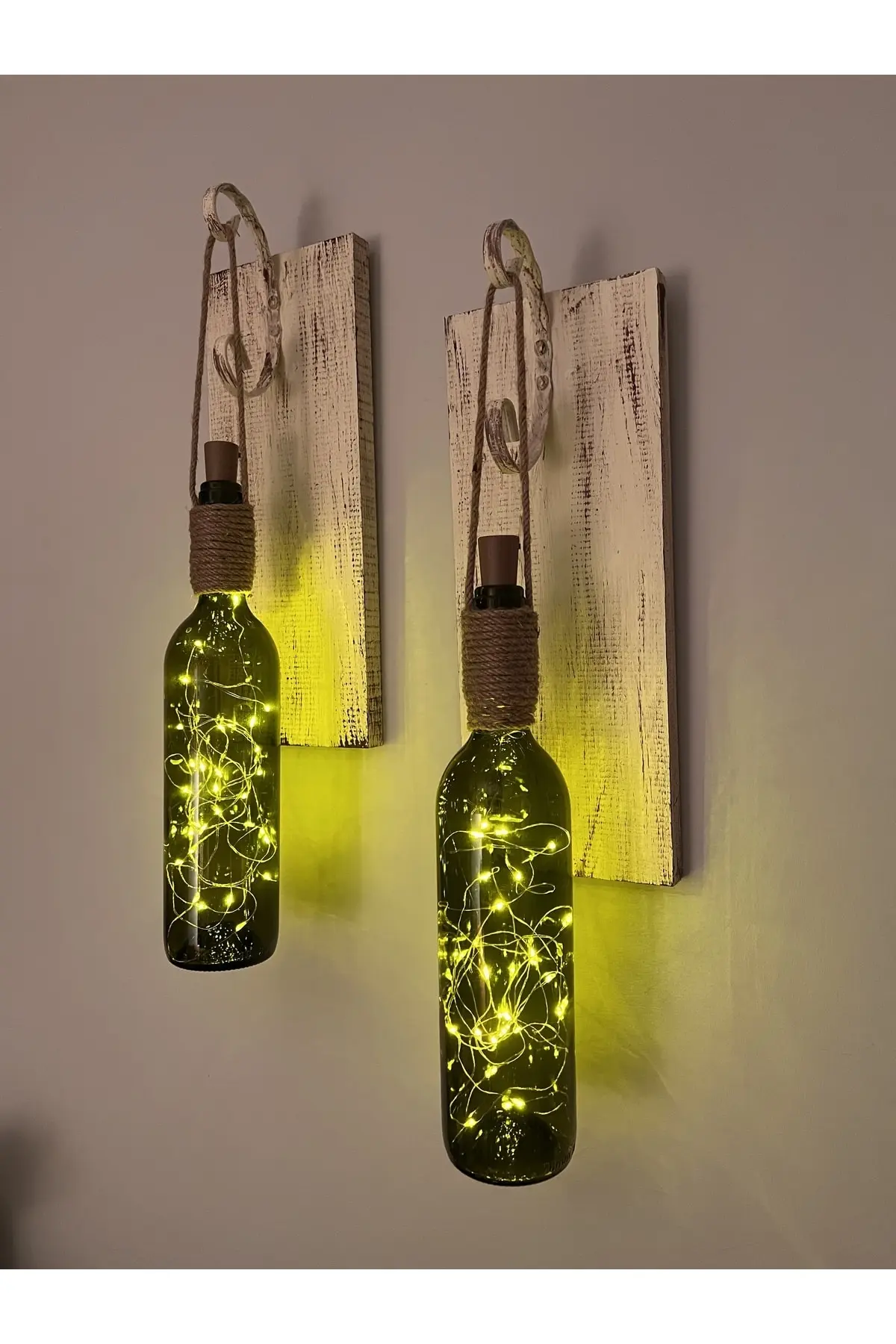 Tıpa Peri Led Işıklı Krem Kahve Retro Yeşil Şarap Şişesi Duvar Aplik 2’li Set