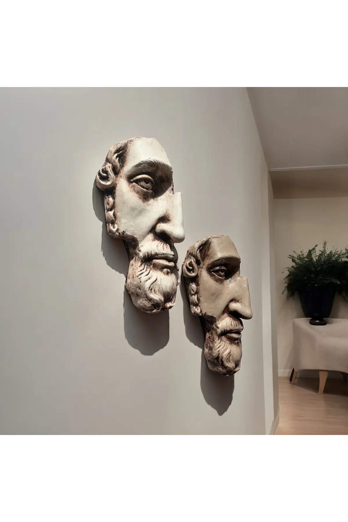 Yarım Yüz Antik Zeus Heykeli Modern Sanat Yunan Mitolojisi Duvar Dekoru 2’li Set Ev Ofis Dekor