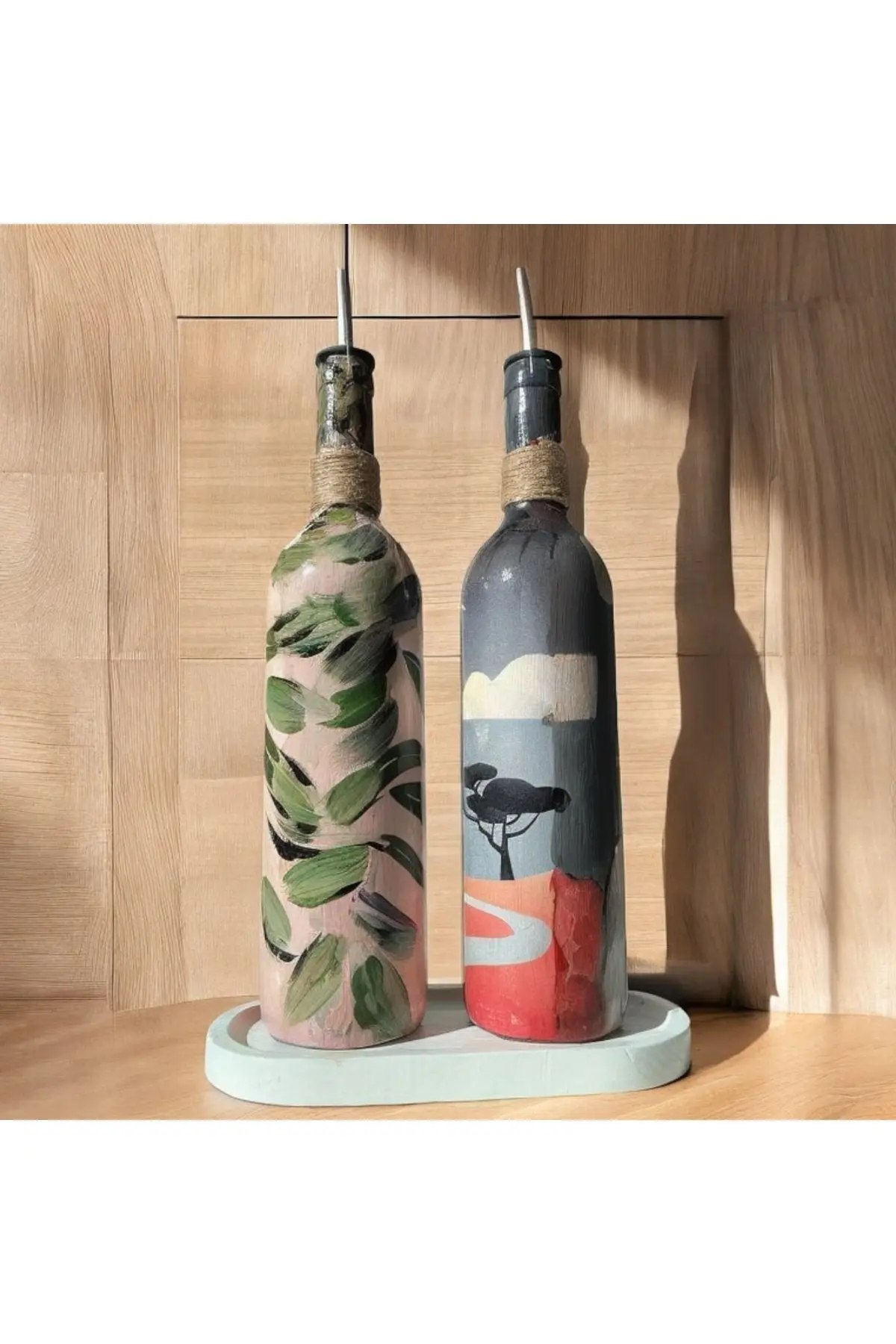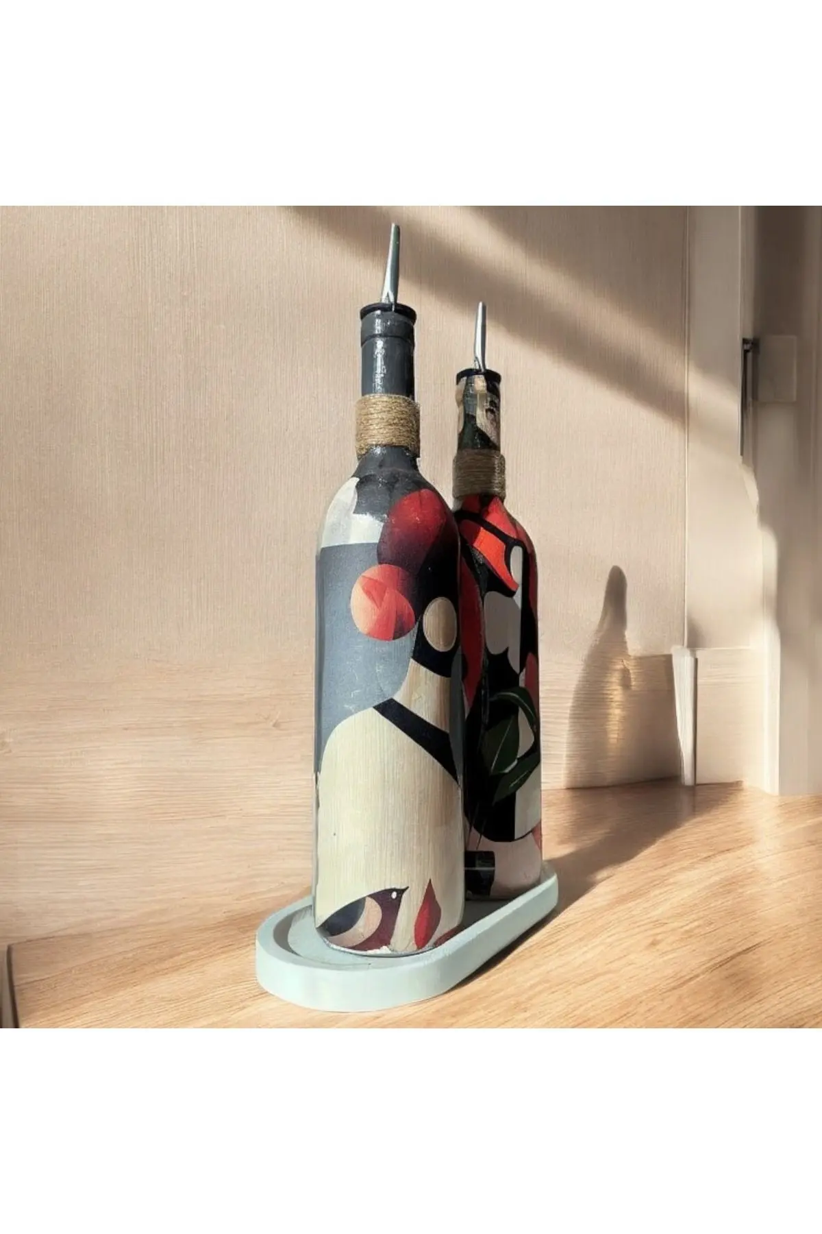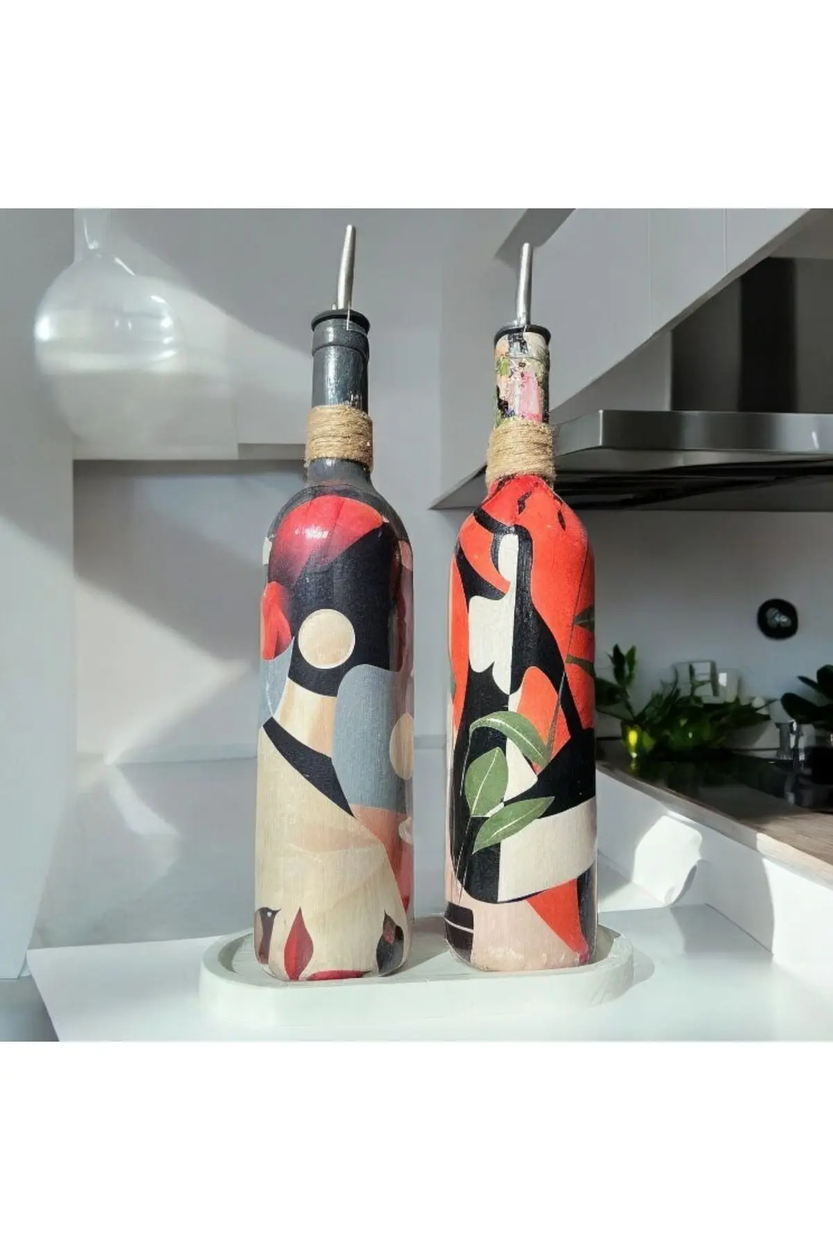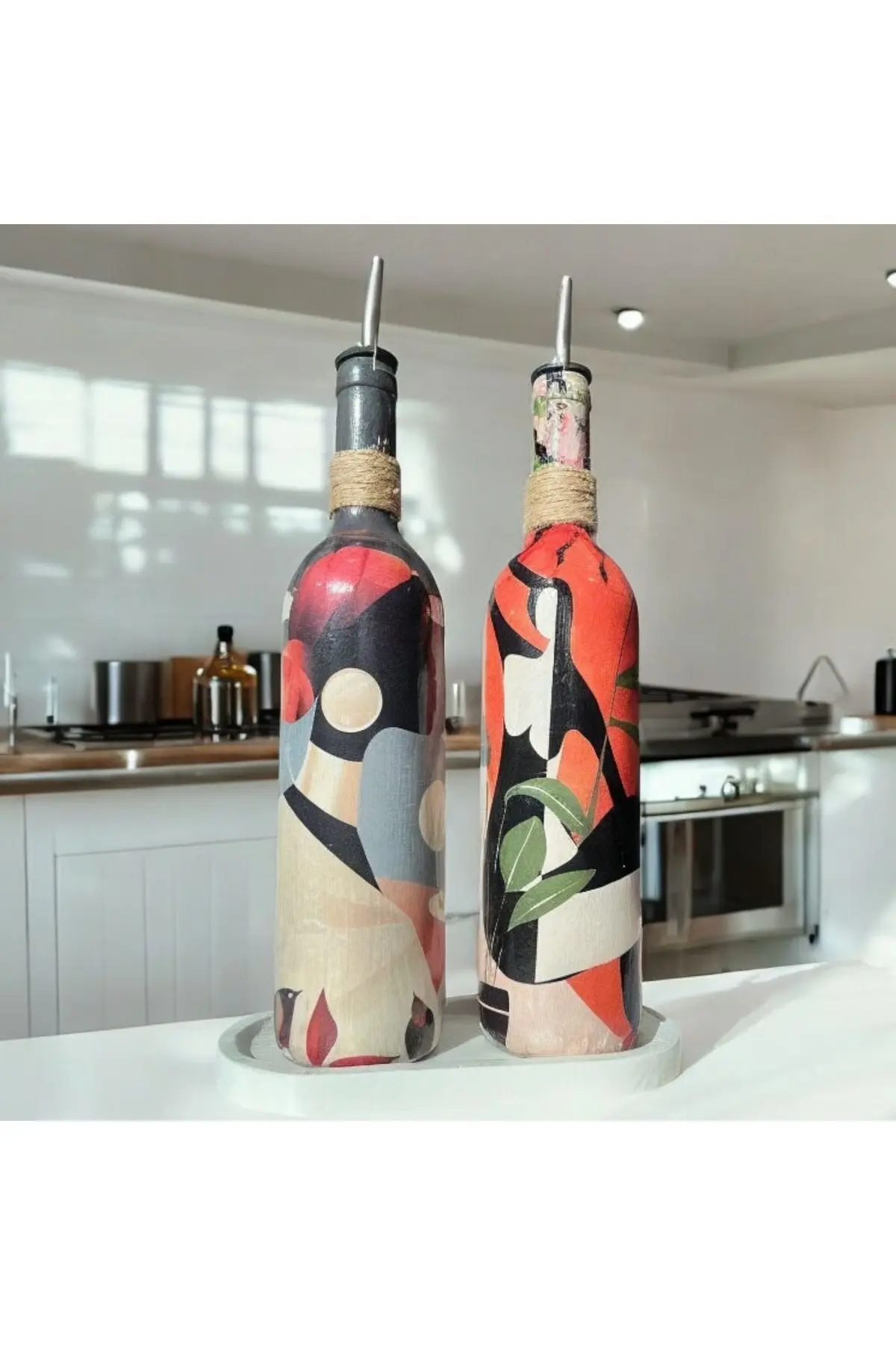 Yerli Kadınlardan Esinlenilmiş Yağ Şişesi Seti, Baharatlık ve Sirkelik: Sanat ve İşlevselliğin Mükemmel Uyumu Bu benzersiz yağ şişesi seti, sanat ve işlevsellik arasında muhteşem bir denge sunarak mutfağınızda sanatı canlandırır.; Tüm yerli dünya kadınlarından esinlenen bu tasarım, mutfak gereçlerinizi sanat eserlerine dönüştürerek yağ şişeleri ve baharatlıklar gibi günlük kullanımları keyifli bir deneyime dönüştürür.; Tasarım ve Desen: Dünyanın dört bir yanındaki yerli kadınların canlı renk paletleri, bu yağ şişesi, baharatlık seti ve sirkelik için temel ilham kaynağı olarak hizmet ediyor.; Yerli Dünya Kadınlarının güzelliği, doğa imgeleri ve semboller her parçaya belirgin bir görsel estetik katıyor.; Canlı renkler, hareketli desenler ve karakteristik detaylar, mutfağınızı anında bir sanat galerisini anımsatan bir ambiyansla dolduruyor.; İşlevsellik: Bu set yalnızca görsel zenginlik sunmakla kalmıyor, aynı zamanda mutfakta işlevsellik açısından da mükemmel bir performans sergiliyor.; Yağ akıtıcısı, yemek pişirirken veya salata hazırlarken yağların kolayca dozlanmasını sağlar.; Sirke dağıtıcısı, zeytinyağı veya sirke gibi sıvıları ölçmenizi ve kullanmanızı sağlayarak yemeklerinizi hassas bir lezzet ve aroma ile zenginleştirir.; Yağ şişesi, sosluk ve sirke dağıtıcısı, çeşitli sosları sunmak ve yemek masanıza zarif bir dokunuş katmak için mükemmeldir.; Ürün Özellikleri: 2 parçalı bir set olarak sunulur.; Her şişenin kapasitesi 750 ml’dir.; Dayanıklı ve sağlam cam malzemeden yapılmıştır.; Sızdırmaz krom yağ damlatıcı kapaklar yağların tazeliğini korur.; Dökme tasarımı kolay dağıtım sağlar.; Şık bir sunum seçeneği sunan sunum standı ile birlikte gelir.; Mutfakta ve yemek masasında kullanıma uygundur.; Kendiniz için veya sevdiklerinize yeni ev hediyesi, düğün hediyesi olarak düşünebileceğiniz modern bir seçenek.; Kullanım ve Bakım Talimatları: Her el yapımı üründe olduğu gibi bu ürünü de elde yıkamanız tavsiye edilir.; Bulaşık makinesinde yıkanması, el boyamasının zarar görmesine neden olabilir.; Sert temizlik malzemeleri kullanmaktan kaçının.; Yumuşak bir sünger ve hafif bir deterjan ile temizlemeniz yeterli olacaktır.